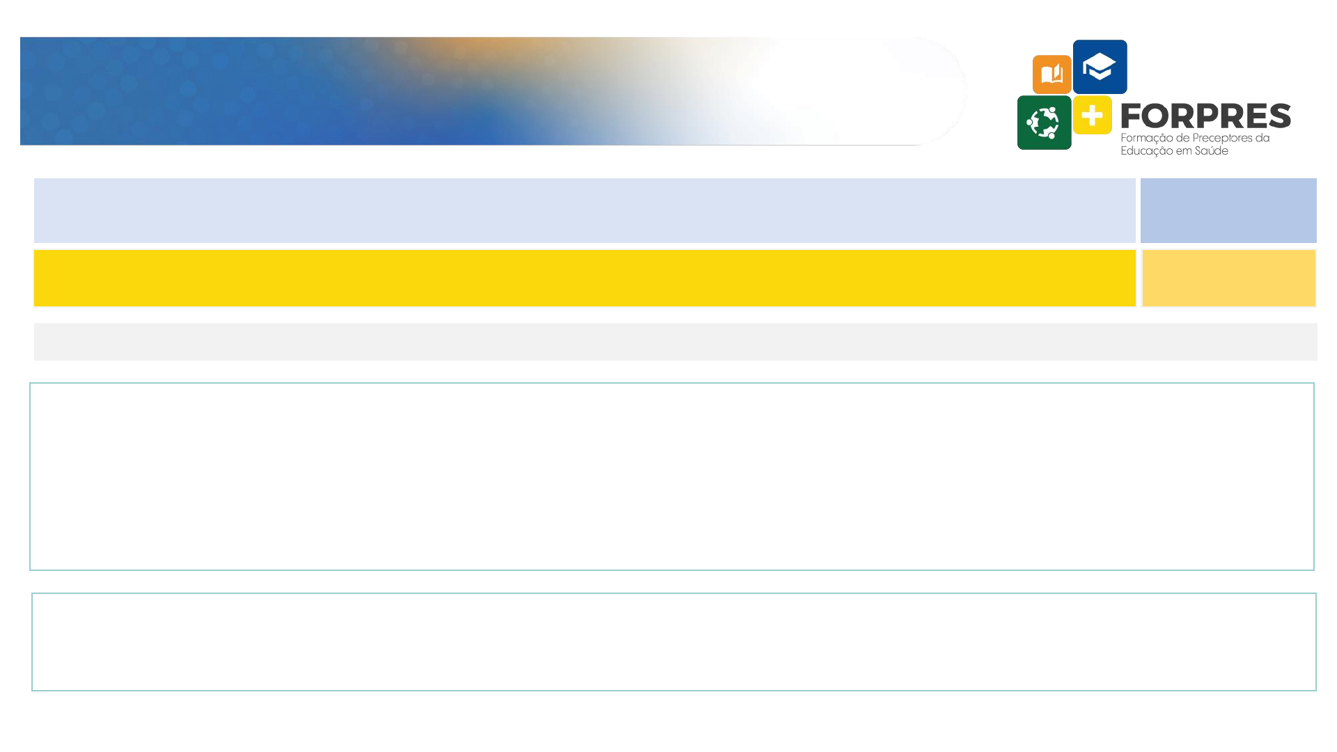\\\ Módulo 01 Planejamento Curso de Formação de Preceptores da Educação em Saúde CH: 180 h MÓDULO 1 - O Eu preceptor no contexto da educação em saúde CH: 45 h Objetivos educacionais: • Subsidiar teoricamente o exercício da preceptoria em saúde; • Discutir sobre o papel e as atribuições do preceptor na prática da preceptoria em saúde; • Promover conhecimentos sobre práticas pedagógicas que fortaleçam a condução do preceptor no processo de ensino- aprendizagem; • Conhecer as normas e legislações vigentes referente ao perfil do Preceptor e a prática em preceptoria. \\\ Unidade 1 - A identidade do preceptor no processo formativo da educação em saúde CH: 15h Conteúdos educacionais: O exercício da preceptoria em saúde. O papel e as atribuições do preceptor na prática da preceptoria em saúde. Práticas pedagógicas no processo de ensino- aprendizagem. Normas e legislações referentes ao perfil do Preceptor. \\\ Módulo 01 Planejamento Objetivos educacionais: • Refletir sobre o papel do preceptor na interface com o estudante, com o docente e com os profissionais da assistência. • Compreender os aspectos éticos que influenciam o processo de ensino aprendizagem na preceptoria. \\\ Unidade 2 - Desafios éticos para o exercício da preceptoria CH: 08h Conteúdos educacionais: A interface do papel do preceptor com o estudante, docente e profissionais da assistência. Aspectos éticos no processo de ensino-aprendizagem na preceptoria. Unidade 3 - O preceptor e a relação com os principais atores do processo de ensino- aprendizagem CH: 07h \\\ Objetivos educacionais: • Fornecer subsídios teóricos para potencializar o desenvolvimento de uma relação empática com atores envolvidos no processo de ensino e aprendizagem; • Conhecer estratégias que facilitam a integração do preceptor com o docente, discente e coordenadores do curso; • Abordar a importância da atuação estratégica e alinhada do preceptor com os demais atores para potencializar os resultados. Módulo 01 Planejamento \\\Conteúdos educacionais: A empatia na relação com os atores envolvidos no processo de ensino e aprendizagem. Integração do preceptor com o docente, discente e coordenadores do curso. Atuação estratégica do preceptor no contexto de saúde. Unidade 4 - EPAs (Atividades Profissionais Confiabilizadoras - Entrustable Professional Activities) CH: 15h \\\ Objetivos educacionais: • Promover uma visão geral sobre a implantação das EPAs; • Operacionalizar a aplicação das EPAs no contexto da preceptoria; • Ensinar a realizar o monitoramento e avaliação das EPAs. \\\ Conteúdos educacionais: Implantação e operacionalização das EPAs no contexto da preceptoria. Monitoramento e supervisão do desenvolvimento da EPA. \\\ Recursos educacionais: livro interativo multimídia, recursos multimídia, material em pdf e questionário avaliativo. Estratégia de avaliação do módulo: serão realizadas atividades formativas distribuídas ao longo dos recursos educacionais e que não geram notas, mas auxiliam na verificação da sua aprendizagem. E atividade avaliativa somativa (questionário) ao fim do módulo.