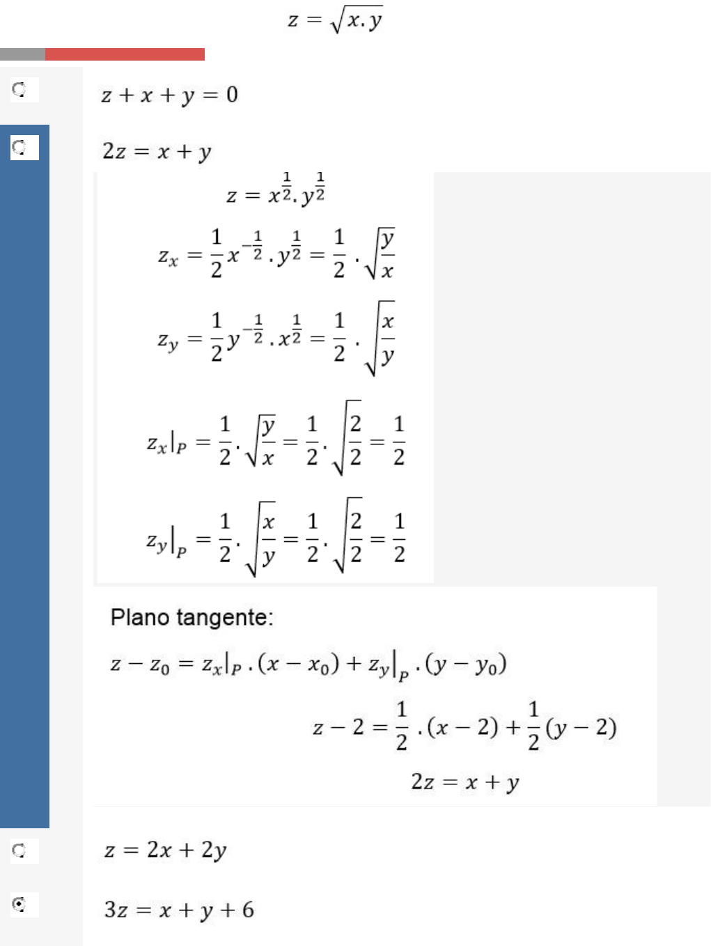 Questão 1/10 - Cálculo Diferencial e Integral a Várias Variáveis Calcular o plano tangente à superfície no ponto P( 2; 2; 2 ) Nota: 0.0Você não pontuou essa questão A . B . . C . D . Você assinalou essa alternativa (D) Questão 2/10 - Cálculo Diferencial e Integral a Várias Variáveis Que resultado é obtido para: Nota: 10.0 A 13/2 B 14/3 Você assinalou essa alternativa (B) Você acertou! . C 14/5 D 5/2 Questão 3/10 - Cálculo Diferencial e Integral a Várias Variáveis Qual o resultado obtido no cálculo da integral Nota: 10.0 A 1/3 B 1/6 Você assinalou essa alternativa (B) Você acertou! . C 1/5 D 1/2 Questão 4/10 - Cálculo Diferencial e Integral a Várias Variáveis Calcule a integral : Nota: 10.0 A Pi / 3 B Pi / 2 C 2 Pi D Pi Você assinalou essa alternativa (D) Você acertou! . Questão 5/10 - Cálculo Diferencial e Integral a Várias Variáveis . Fórmula: Nota: 0.0Você não pontuou essa questão A 3y + 5 Você assinalou essa alternativa (A) B 3y + 3 C 5y + 6 D 4y + 2 Questão 6/10 - Cálculo Diferencial e Integral a Várias Variáveis . Nota: 10.0 A 21,11 B 33,33 C 15,55 D 13,33 Você assinalou essa alternativa (D) Você acertou! Questão 7/10 - Cálculo Diferencial e Integral a Várias Variáveis Calculando a integral a seguir, obtém-se: Nota: 10.0 A 3/10 Você assinalou essa alternativa (A) Você acertou! . B 3/5 C 7/20 D -7/20 Questão 8/10 - Cálculo Diferencial e Integral a Várias Variáveis Calculando obtém-se: Nota: 10.0 A 427/60 B 1854/75 C 2157/60 D 65/4 Você assinalou essa alternativa (D) Você acertou! Questão 9/10 - Cálculo Diferencial e Integral a Várias Variáveis Qual valor obtém-se para a integral : Nota: 0.0Você não pontuou essa questão A 125 B 98 C 89 D 102 Você assinalou essa alternativa (D) Questão 10/10 - Cálculo Diferencial e Integral a Várias Variáveis . Fórmula: Nota: 10.0 A Você assinalou essa alternativa (A) Você acertou! B C D