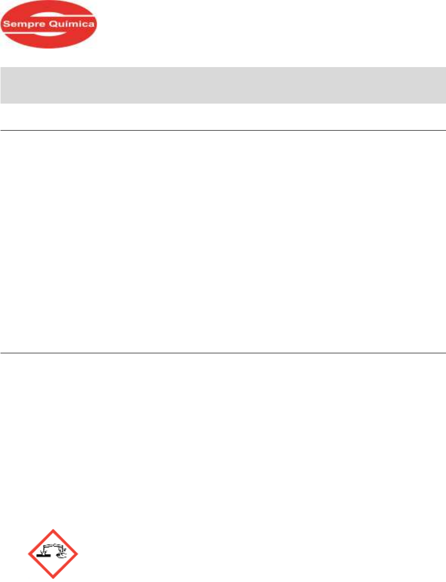 FISPQ - F ICHA DE INFORMAÇÃO DE SEGURANÇA DE PRODUTO QUÍMICO PRODUTO: MEGACOLOR Total de páginas: 07 Data atualização: 27/02/2020 Em conformidade com a NBR 14725-4:2014 No. FISPQ: 00619 Anula e Substitui: Todas as versões anteriores 1 1. IDENTIFICAÇÃO DA EMPRESA E DO PRODUTO PRODUTO: MEGACOLOR CÓDIGO INTERNO: 00164 Produto coagulante composto de polímeros orgânicos e compostos inorgânicos. Preparado especificamente para ser aplicado como agente floculante, clarificante e descolorante em Estações de Tratamento de Efluentes (ETE). Possui forma líquida e é isento de impurezas, garantindo um tratamento mais eficaz. Empresa: SEMPRE QUÍMICA Razão Social: Sempre Química Cantalice EIRELI CNPJ: 15.378.027/0001-90 Inscrição Estadual: 0483082-26 Endereço: Rua Caetés, 120– Peixinho – Olinda – Pernambuco – CEP 53.230-340. Telefone/Fax: (81) 3011-0303 Telefone Emergência: (81) 3011-0303 E-mail: contato@semprequimica.com.br 2. INDENTIFICAÇÃO DE PERIGOS CLASSIFICAÇÃO DE PERIGO DO PRODUTO: Corrosivo para os metais – Categoria 1 Corrosão/irritação à pele – Categoria 2 Lesões oculares graves/irritação ocular – Categoria 1 Sistema de classificação adotado: Norma ABNT-NBR 14725-2:2019. Sistema Globalmente Harmonizado para a Classificação e Rotulagem de Produtos Químicos, ONU. ELEMENTOS APROPRIADOS DE ROTULAGEM: Pictograma: Palavra de advertência: Perigo Frases de perigo: Pode ser corrosivo para os metais Provoca irritação à pele Provoca lesões oculares graves FISPQ - F ICHA DE INFORMAÇÃO DE SEGURANÇA DE PRODUTO QUÍMICO PRODUTO: MEGACOLOR Total de páginas: 07 Data atualização: 27/02/2020 Em conformidade com a NBR 14725-4:2014 No. FISPQ: 00619 Anula e Substitui: Todas as versões anteriores 2 Frase de precaução: Prevenção: Conserve somente no recipiente original. Lave cuidadosamente após o manuseio. Use luvas de proteção/roupa de proteção/proteção ocular/proteção facial. Resposta à emergência: Absorva o produto derramado a fim de evitar danos materiais EM CASO DE CONTATO COM A PELE: Lave com água e sabão em abundância. Em caso de irritação cutânea: Consulte um médico. Retire toda a roupa contaminada e lave-a antes de usá-la novamente. EM CASO DE CONTATO COM OS OLHOS: Enxágue cuidadosamente com água durante vários minutos. No caso de uso de lentes de contato, remova-as, se for fácil. Continue enxaguando. Contate imediatamente um CENTRO DE INFORMAÇÃO TOXICOLÓGICA ou um médico. Armazenamento: Armazene num recipiente resistente à corrosão ou com um revestimento interno resistente. Disposição: Não exigido OUTROS PERIGOS NÃO RESULTANTES DE CLASSIFICAÇÃO: Produto não inflamável. OBSERVAÇÕES ADICIONAIS: Não disponível. 3 - COMPOSIÇÃO E INFORMAÇÕES SOBRE OS INGREDIENTES Composição: o produto é uma mistura de sais inorgânicos e polímeros orgânicos catiônicos em suspensão. As concentrações são informações confidenciais retidas. Registro no Chemical Abstract Service (n. º CAS): No. 1327-41-9 (aplicável). Nome químico comum ou nome genérico: Não aplicável. Sinônimo: Não há. Ingredientes ou impurezas que contribuam para o perigo: não há. 4. MEDIDAS DE PRIMEIROS-SOCORROS INALAÇÃO: Leve o individuo para um ambiente arejado. Forneça respiração artificial, se a pessoa não estiver respirando. Se houver dificuldade de respiração, forneça oxigênio. Procure ajuda médica imediatamente. FISPQ - F ICHA DE INFORMAÇÃO DE SEGURANÇA DE PRODUTO QUÍMICO PRODUTO: MEGACOLOR Total de páginas: 07 Data atualização: 27/02/2020 Em conformidade com a NBR 14725-4:2014 No. FISPQ: 00619 Anula e Substitui: Todas as versões anteriores 3 CONTATO COM A PELE: Lave a pele imediatamente com água em abundância por ao menos 20 minutos. Se em contato com roupas e sapatos remover os itens contaminados. Lave as roupas e limpe os sapatos antes de usar novamente. Procure ajuda médica imediatamente. CONTATO COM OS OLHOS: Lave os olhos imediatamente com água em abundância por ao menos 20 minutos, ocasionalmente deve ser levantado e abaixado às pálpebras. Procure ajuda médica imediatamente. INGESTÃO: Não induza ao vômito, forneça ao individuo grande quantidade de água. Não se fornece por via oral nada a uma pessoa inconsciente. Procure ajuda médica imediatamente. OBSERVAÇÕES PARA O MÉDICO: Se ingerido grandes quantidades uma lavagem gástrica pode ser necessária. Solicitar endoscopia digestiva para avaliar a extensão da lesão do trato gastrointestinal. Manter monitorização das funções hepática e renal, além de monitorização cardíaca nos casos graves. 5. MEDIDAS DE COMBATE A INCÊNDIO MEIOS DE EXTIÇÃO APROPRIADOS: Deve ser utilizado spray de água para o controle do fogo, refrescando os recipientes expostos. Mesmo método pode ser utilizado para reduzir gases irritantes. PERIGOS ESPECIFÍCOS: FOGO: Produto não é combustível. EXPLOSÃO: O produto não explosivo. MÉTODOS ESPECIAIS: Ocorrendo fogo, utilize roupas de proteção, assim como aparelho de respiração autônoma, com máscara facial completa. 6. MEDIDAS DE CONTROLE PARA DERRAMAMENTO OU VAZAMENTO PARA O PESSOAL QUE NÃO FAZ PARTE DOS SERVIÇOS DE EMERGÊNCIA: Isole preventivamente de fontes de ignição. Não fume. Não toque nos recipientes danificados ou no material sem o uso de vestimentas adequadas. Evite inalação, contato com os olhos e com a pele. Utilize equipamento de proteção individual conforme descrito na seção 8. PARA PESSOAL DE SERVIÇO DE EMERGÊNCIA: Utilizar EPI completo, óculos de segurança, luvas de segurança, vestuário protetor adequado e sapatos de segurança. Em caso de grandes vazamentos, onde a exposição é grande, recomenda-se o uso de máscara de proteção respiratória com filtro contra poeiras. FISPQ - F ICHA DE INFORMAÇÃO DE SEGURANÇA DE PRODUTO QUÍMICO PRODUTO: MEGACOLOR Total de páginas: 07 Data atualização: 27/02/2020 Em conformidade com a NBR 14725-4:2014 No. FISPQ: 00