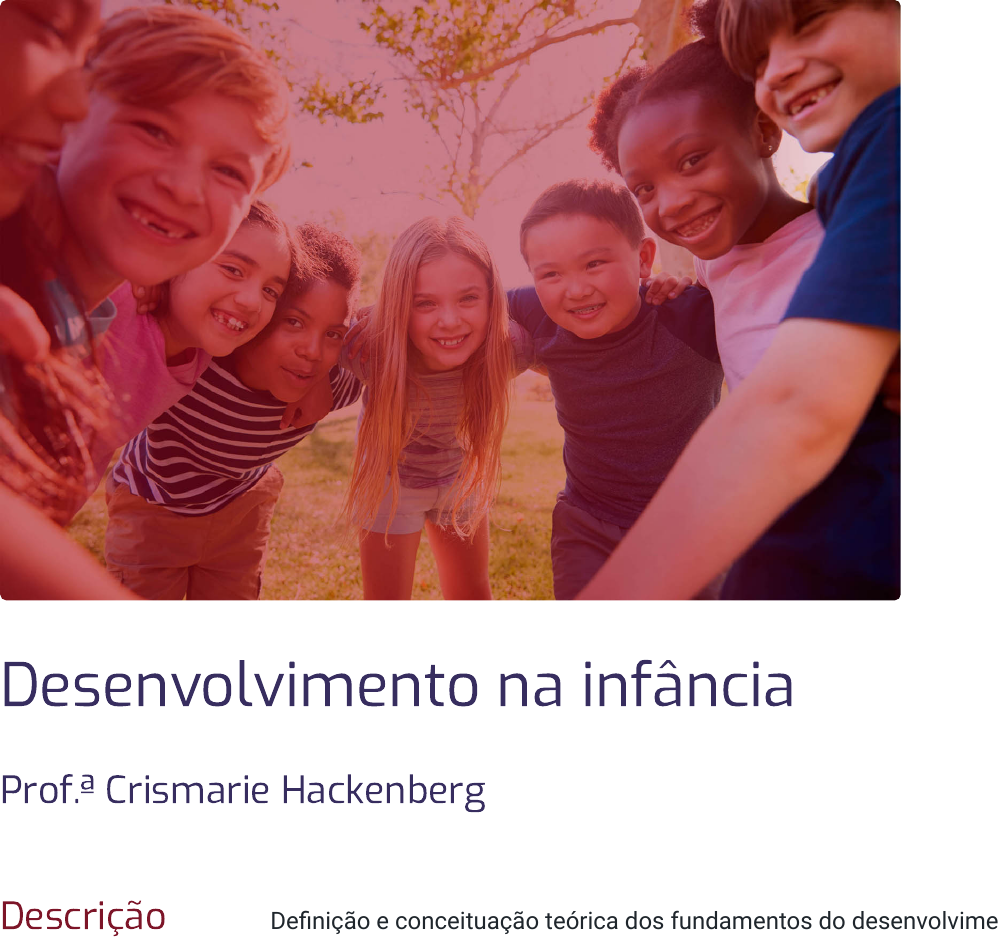Desenvolvimento na infância Prof.ª Crismarie Hackenberg Descrição Definição e conceituação teórica dos fundamentos do desenvolvimento infantil, e das transformações físicas, cognitivas, emocionais e psicossociais envolvidas, com segmentação nos três períodos da infância e suas faixas etárias respectivas. Propósito O conhecimento sobre as teorias de desenvolvimento humano envolvidas no estudo da fase da infância amplia a visão do psicólogo em sua prática profissional clínica e institucional, tornando mais eficaz sua prática e pesquisa com profundidade. Objetivos Módulo 1 Desenvolvimento físico Reconhecer os conceitos teóricos e os aspectos do crescimento e do desenvolvimento físico, bem como as Módulo 2 Desenvolvimento cognitivo Identificar os pensadores do desenvolvimento infantil e os fundamentos do desenvolvimento cognitivo na primeira, segunda e terceira infâncias. diferenças e similaridades da primeira, segunda e terceira infâncias. Módulo 3 Marcos de desenvolvimento Reconhecer os marcos de desenvolvimento da infância e as características dos marcos motores, sociais e emocionais. Introdução O campo do desenvolvimento humano é constituído por estudos científicos de avaliação sobre as mudanças nas pessoas, bem como a observação das características que permanecem relativamente estáveis durante toda a vida. Desde que os seres humanos existem, o interesse pelo desenvolvimento humano tem ocorrido. Contudo, o seu estudo científico formal é relativamente novo. Desde o início do século XIX, diversas tendências e especialidades acadêmicas, tanto da saúde como da educação, preparam o caminho para o estudo científico do desenvolvimento infantil. Platão, na Grécia Antiga, já mencionava os ciclos de 7 em 7 anos no desenvolvimento humano, mas foi no século XX que as mudanças puderam ser organizadas e estabelecidas em mudanças e marcos relacionados mais especificamente com o avanço da idade. Sobre a visão do ciclo da vida, Papalia, Olds e Feldman (2006) descrevem o ciclo vital em oito períodos: pré-natal; primeira infância; segunda infância; terceira infância; adolescência; jovem adulto; meia- idade; e terceira idade. De outra forma, muitos autores propuseram utilizar divisões um pouco diferentes, pensando as etapas do ciclo em forma de marcos etários distintos. O enfoque deste conteúdo será a abordagem da infância, especificamente da primeira, segunda e terceira infâncias, com a divisão etária proposta por Papalia, Olds e Feldman (2006). Essas fases serão explicadas e relacionadas dentro de três temas centrais: o desenvolvimento físico, o desenvolvimento cognitivo e a apresentação dos marcos de desenvolvimento na infância. Nosso olhar também abordará algumas considerações sobre o desenvolvimento dos repertórios emocional e social. 1 - Desenvolvimento físico Ao �nal deste módulo, você será capaz de reconhecer os conceitos teóricos e os aspectos do crescimento e do desenvolvimento físico, bem como as diferenças e similaridades da primeira, segunda e terceira infâncias. Conceito de infância O conceito da infância como um período especial de desenvolvimento, em que o indivíduo deverá ser protegido, cuidado e supervisionado é um evento bastante recente quando consideramos a história da ciência. Se pensarmos historicamente, até o século XVII, predominava um conceito de que a criança era um adulto em miniatura. Dessa forma, acreditava-se que tanto os sentimentos quanto o raciocínio, até mesmo as ações infantis, possuíam a mesma semelhança dos elementos básicos dos adultos. A ideia de uma criança ser um adulto em miniatura se refletiu na arte. Se olharmos as pinturas medievais, encontraremos crianças retratadas com as proporções corporais dos adultos (CARVALHO, 2015). Toda essa concepção influenciou profundamente o tratamento que a sociedade dispensou ao longo da civilização para crianças. Sabemos, por registros históricos, que as crianças recebiam cuidados especiais até os sete anos de idade. Depois dessa fase, um novo ciclo começava e elas ingressavam na comunidade dos adultos e participavam das mesmas atividades que eles. Existia uma diferença de classes sociais, e a vida das crianças também era impactada dependendo do nível social. Em classes menos privilegiadas, as crianças trabalhavam no campo, vendiam produtos nos mercados e irremediavelmente aprendiam um ofício. Elas não recebiam nenhum tratamento especial e, muito pelo contrário, eram alvo de todo tipo de atrocidade por parte dos adultos. Nos ambientes de famílias mais abastadas, também se fazia pouca distinção entre a infância e a idade adulta. A escolarização era mais comum nesse ambiente social, e as crianças começavam a estudar aos quatro ou cinco anos de idade. O ensino era quase sempre enciclopédico, e nessas tarefas de leituras acadêmicas eram desenvolvidas as faculdades mentais de atenção, memória e abstração. As classes escolares eram compostas por indivíduos de todas as idades, e ninguém se espantava ao encontrar meninos de sete anos ao lado de jovens de dezoito recitando juntos uma lição. Gradativamente, o conceito de infância foi mudando a partir do século XVII. A educação familiar passou a separar as crianças dos assuntos dos adultos, e a presença delas em festas coletivas e populares passou a ser considerada como maléfica à formação do caráter e da moral. O ensino passou a ser oferecido de forma graduada, ou seja, com a formação das classes com crianças da mesma idade. Também vamos encontrar o surgimento de alguns pensadores que defenderão a ideia de que a mente da criança era diferente da mente do adulto (CARVALHO, 2015). Contudo, temos que destacar que todas essas mudanças foram exclusivamente encontradas em classes de aristocratas e de burgueses. Até o século XIX, a classe baixa continuou mantendo a visão secular da infância, intel core i5 Realce intel