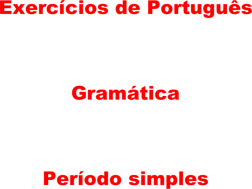 Exercícios de Português Gramática Período simples Exercícios com Gabarito de Português Sintaxe - Período Simples 1) (Cesgranrio-1995) Assinale a opção que traz corretas classificações do sujeito e da predicação verbal. a) "Houve uma considerável quantidade" - sujeito inexistente; verbo transitivo direto. b) "que jamais hão-de ver país como este" - sujeito indeterminado; verbo transitivo indireto. c) "mas reflete a pulsação da inenarrável história de cada um"- sujeito simples; verbo transitivo direto e indireto. d) "que se recebe em herança" - sujeito indeterminado; verbo transitivo indireto. e) "a quem tutela" - sujeito simples; verbo intransitivo. 2) (UFC-2002) No trecho: “Eu não creio, não posso mais acreditar na bondade ou na virtude de homem algum; todos são mais ou menos ruins, falsos, e indignos; há porém alguns que sem dúvida com o fim de ser mais nocivos aos outros, e para produzir maior dano, têm o merecimento de dizer a verdade nua e crua, (...)” (p.65): I . algum e alguns são pronomes indefinidos. II. alguns é sujeito do verbo haver. III. algum equivale a nenhum. Assinale a alternativa correta sobre as assertivas acima: a) apenas I é verdadeira. b) apenas II é verdadeira. c) apenas I e II são verdadeiras. d) apenas I e III são verdadeiras. e) I, II e III são verdadeiras. 3) (PUCCamp-1995) A questão da descriminalização das drogas se presta a freqüentes simplificações de caráter maniqueísta, que acabam por estreitar um problema extremamente complexo, permanecendo a discussão quase sempre em torno da droga que está mais em evidência. Vários aspectos relacionados ao problema (abuso das chamadas drogas lícitas, como medicamentos, inalação de solventes, etc.) ou não são discutidos, ou não merecem a devida atenção. A sociedade parece ser pouco sensível, por exemplo, aos problemas do alcoolismo, que representa a primeira causa de internação da população adulta masculina em hospitais psiquiátricos. Recente estudo epidemiológico realizado em São Paulo apontou que 8% a 10% da população adulta apresentavam problemas de abuso ou dependência de álcool. Por outro lado, a comunidade mostra-se extremamente sensível ao uso e abuso de drogas ilícitas, como maconha, cocaína, heroína, etc. Dois grupos mantém acalorada discussão. O primeiro acredita que somente penalizando traficantes e usuários pode-se controlar o problema, atitude essa centrada, evidentemente, em aspectos repressivos. Essa corrente atingiu o seu maior momento logo após o movimento militar de 1964. Seus representantes acreditam, por exemplo, que "no fim da linha" usuários fazem sempre um pequeno comércio, o que, no fundo, os igualaria aos traficantes, dificultando o papel da Justiça. Como solução, apontam, com freqüência, para os reconhecidamente muito dependentes, programas extensos a serem desenvolvidos em fazendas de recuperação, transformando o tratamento em um programa agrário. Na outra ponta, um grupo "neoliberal" busca uma solução nas regras do mercado. Seus integrantes acreditam que, liberando e taxando essas drogas através de impostos, poderiam neutralizar seu comercio, seu uso e seu abuso. As experiências dessa natureza em curso em outros países não apresentam resultados animadores. Como uma terceira opção, pode-se olhar a questão considerando diversos ângulos. O usuário eventual não necessita de tratamento, deve ser apenas alertado para os riscos. O dependente deve ser tratado, e, para isso, a descriminalização do usuário é fundamental, pois facilitaria muito seu pedido de ajuda. O traficante e o produtor devem ser penalizados. Quanto ao argumento de que usuários vendem parte do produto: é fruto de desconhecimento de como se dão as relações e as trocas entre eles. Duplamente penalizados, pela doença (dependência) e pela lei, os usuários aguardam melhores projetos, que cuidem não só dos aspectos legais, mas também dos aspectos de saúde que são inerentes ao problema. (Adaptado de Marcos P.T. Ferraz, Folha de São Paulo) Como solução, apontam, com freqüência, para os reconhecidamente muito dependentes, programas extensos. Sobre a frase anterior é INCORRETO afirmar-se que: a) o sujeito é inexistente. b) "com freqüência" é um adjunto adverbial. c) "os reconhecidamente muito dependentes" é o objeto indireto. d) "programas extensos" é o objeto direto. e) "extensos" é adjunto adnominal. 4) (UFMG-1998) Já não basta ficarem mexendo toda hora no valor e no nome do dinheiro? Nos juros, no crédito, nas alíquotas de importação, no câmbio, na Ufir e nas regras do imposto de renda? Já não basta mudarem as formas da Lua, as marés, a direção dos ventos e o mapa da Europa? E as regras das campanhas eleitorais, o ministério, o comprimento das saias, a largura das gravatas? Não basta os deputados mudarem de partido, homens virarem mulher, mulheres virarem homem e os economistas virarem lobisomen, quando saem do Banco Central e ingressam na banca privada? Já não basta os prefeitos, como imperadores romanos, tentarem mudar o nome de avenidas cruciais como a Vieira Souto, no Rio de Janeiro, ou se lançarem à aventura maluca de destruir largos pedaços da cidade para rasgar avenidas, como em São Paulo? Já não basta mudarem toda hora as teorias sobre o que engorda e o que emagrece? Não basta mudarem a capital federal, o número de estados, o número de municípios e até o nome do país, que já foi Estados Unidos do Brasil e depois virou República Federativa do Brasil? Não, não basta. Lá vêm eles de novo, querendo mudar as regras de escrever o idioma. "Minha pátria é a língua portuguesa", escreveu Fernando Pessoa pela pena de um de seus heterônimos, Bernardo Soares, autor do Livro do Desassossego. Desassossegados estamos. Querem mexer na pátria. Quando mexem no modo de escrever o idioma, põem a mão num espaço íntimo e sagrado como a terra de onde se vem, o clima a que se acostumou,