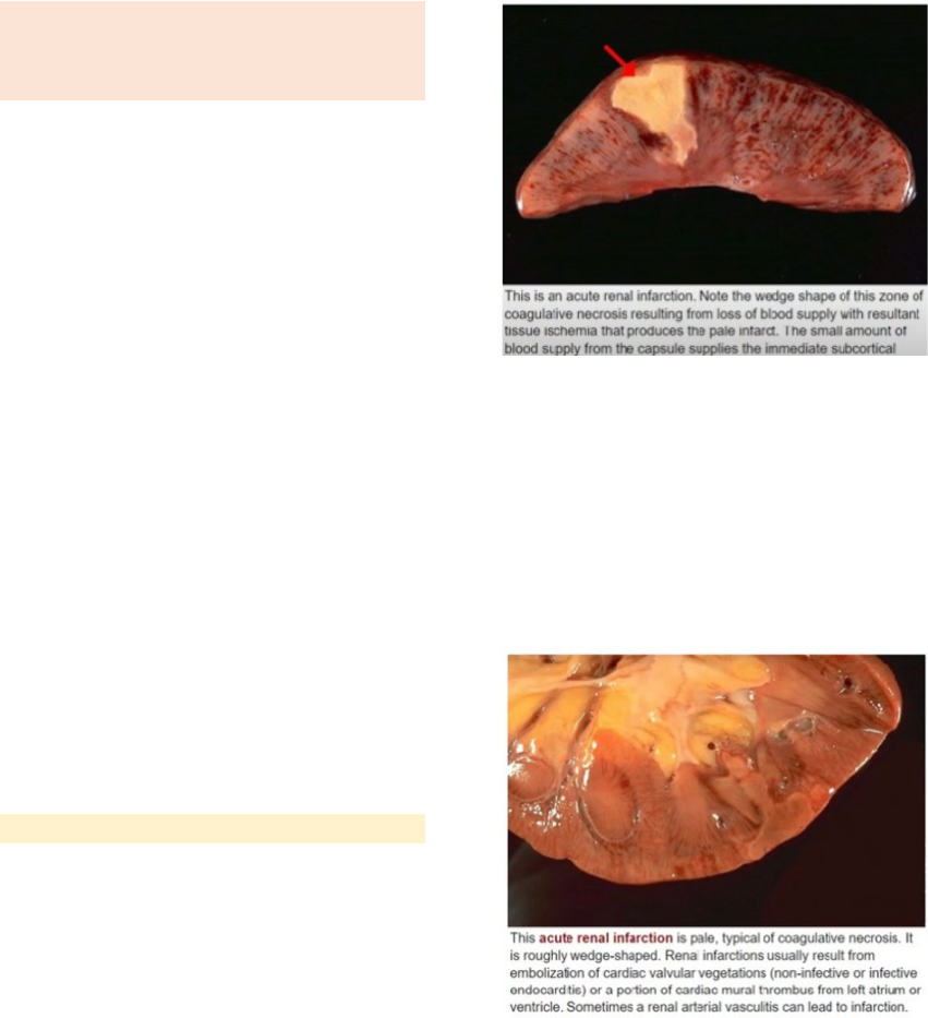 NEFROPATIAS CRÔNICAS E INFARTO RENAL Azotemia: elevação dos níveis sanguíneos de compostos nitrogenados especialemtne ureia e creatinina devido a redução da taxa glomerular. •pré- renal: baixa perusão, choque, hemorragia, insuficiência cardíaca, qualquer tipo de baixa perfusão. •Renal: defeitos intrínsecos ao rim, parênquima renal. •Pós-renal: obstrução ao fluxo urinário. UREMIA: Azotomia + sinais clínicos + anormalidades bioquímicas. É uma síndrome!! •Há presença secundária de gastroenterite urêmica, neuropatia periférica e pericardite urêmica. Lesão de outros órgãos devido a uremia. •Pacientes requerem diálise neste estágio. INFARTO RENAL geralmente devido a embolos de trombos murais atriais esquerdo ou infarto do miocárdio ventricular esquerdo. Os vasos altos estão susceptíveis a formar êmbolos e parar nos rins. •Também endocardite, aneurisma da aorta abdominal e êmbolos ateroscleróticos; •Os infartos são em cunha do tipo anêmico branco cercado por hiperemia intensa. Os vermelhos são circulação colaterais como os pulmões que no contexto de isquemia se tem a necrose de vasos e ficam com a coloração avermelhados. Infarto em cunha, em formato de V, chegando próxima a medula de maneira que fica esbranquiçado. \na porção inicial está o trombo. Onde ainda tem um resquício de circulação de artéria formam fronteiras de irrigação ficam com aspectos congestos e avermelhados. A capsula renal está um pouco preservada. Corte a fresco! Entre as pirâmides está uma coloração mais pálida do que o córtex adjacente e vai até o fim da capsula, sendo um infarto relativamente extenso resultante de um processo tromboembólico causando esse processo isquêmico. Essa tromboso isquêmica é do tipo coagulativa que é o resultado de uma isquemia. Primeiro sinal de necrose é o apagamento, sendo o centro relativamente normal, com coloração e forma. Do outro lado está mais apagado necrose coagulatvo que se associa a infiltração de polimorfos nucelares perto da vascularização. Tem uma celularidade aumentada que são as células inflamatórias adentrando o processo. Atinge córtex e medula. Infarto próximo a arteras mais calibrosas em direção ao córtex. GLOMERULONEFRITE CRONICA •É o estágio final de várias formas de doenças glomerulares •É caracterizada por insuficiência renal progressiva, uremia e morte. Pode cursas com síndromes nefroticas e nefríticas. •CLÍNICA: anemia, anorexia, proteinúria, hipertensão e azotemia. •MACROSCOPIA: rins diminuídos de tamanho com cicatrizes finas e simétricas. •MICROSCOPIA: Hialinização de glomérulos, fibrose intersticial, atrofia de túbulos e infiltrado linfocitário. Achados de enfropatia terminal!! Duas estruturas renais e mais um rim na ilíaca esquerda na bifurcação é um rim de transplante, que é maior, os dois ruins ão menores e cheios de regularidades, com perda de estruturas. Parede bem espessa, processo hipertensivo associado, células musculares lisas bem proliferas. Estruturas renais com hialina, resquícios de um glomérulos que não são funcionantes, material eosinofilico dentro, estruturas tubulares atrroficas, acumulo de material dentro, infiltrado inflamatório, podem fazer proliferação bacteriana. Evitam processos sépticos, os túbulos são finos tudo em estroma renal que vai proliferando que são a fibrose intersticial. Arteriola hiperplásica, glomérulos atróficos. Tireoidisação: lembra muito um corte de tireoide, lembram muito os foliclos tiroideanos essa fibrose renal. Processo inflamatório. NEFROPATIA DIABÉTICA •doença caracterizada por hiperglicemia formação de produtos finais da glicolisação responsáveis pelo espessamento da MBG e aumento da matriz mesangial. •Há também presença de alterações hemodinâmicas resultando em hipertrofia glomerular com aumento da aérea de filtração, contribuindo para proteinúria. Levam a produção de mais células mesangiais, processo inflamatório com mais células e vai piorando e se perpetuando. Achatamento de podocitos, espessamento da membrana, lesões. Alterações morfológicas: espessamento da membrana basal glomerular: é a mais precoce alteração, é vista em praticamente todos os diabéticos independentemente da proteinúria e é mais bem vista em ME. É uma membrana espessada, tipos de fagocitação dos podócitos, permitindo a perda de proteína na urina, sendo recomendado acompanhamento de exames na urina. Alterações morfológicas: •mesangioesclerose difusa: aumento difuso da matriz mesangial, material em pAS positivo associado em espessamento da MBG. Coloração valoriza a memebrana. |Em pacientes diabetes se tem a profileração da matriz e memebrana, quase n ve capilares pérvios, a capsula de bawman tbm é espessada e a arteríola tbm. Nos túbulos, a linha rosa fica bem definina mas aqui se ve espessada e mais grossa. As células tubulares ficam apoiadas na lamina basal, •GLOMERULOESCLEROSE NODULAR Lesão mais especifica do DM, consiste de nódulos PAs positivos. Se ve nódulos na periferia do glomérulo. Outras caracterisitca pe a hialinose arteriolar ao redor da arteríola. Esclerose focal do glomérulo iAS positivo, como estão na periferia se adere a cápsula de Bowman. Nódulo de Wilson bem rosado, ficam dentro dos capilares e são células mais achatadinhas, pouco capilares. Aglomerado de células mesageais. Espessamento da capsula de bowman, deveria ser uma linha bem discreta e linha, porém está espessada e reforçada. Outros achados: •Esclerose arteriolar hialinizante afeta ambas as arteríolas •Acúmulo de glicogênio nas células dos túbulos proximais em pacientes descontrolados – células de Armani-ebstein •pielonefrite •necrose papilar CLÍNICA: •aumento da TFG associado com microalbuminuria a 30 a 300 •microalbuminúria é importante preditorposteriormente a proteinéria •geralmente os pacientes possuem outras comorbidade