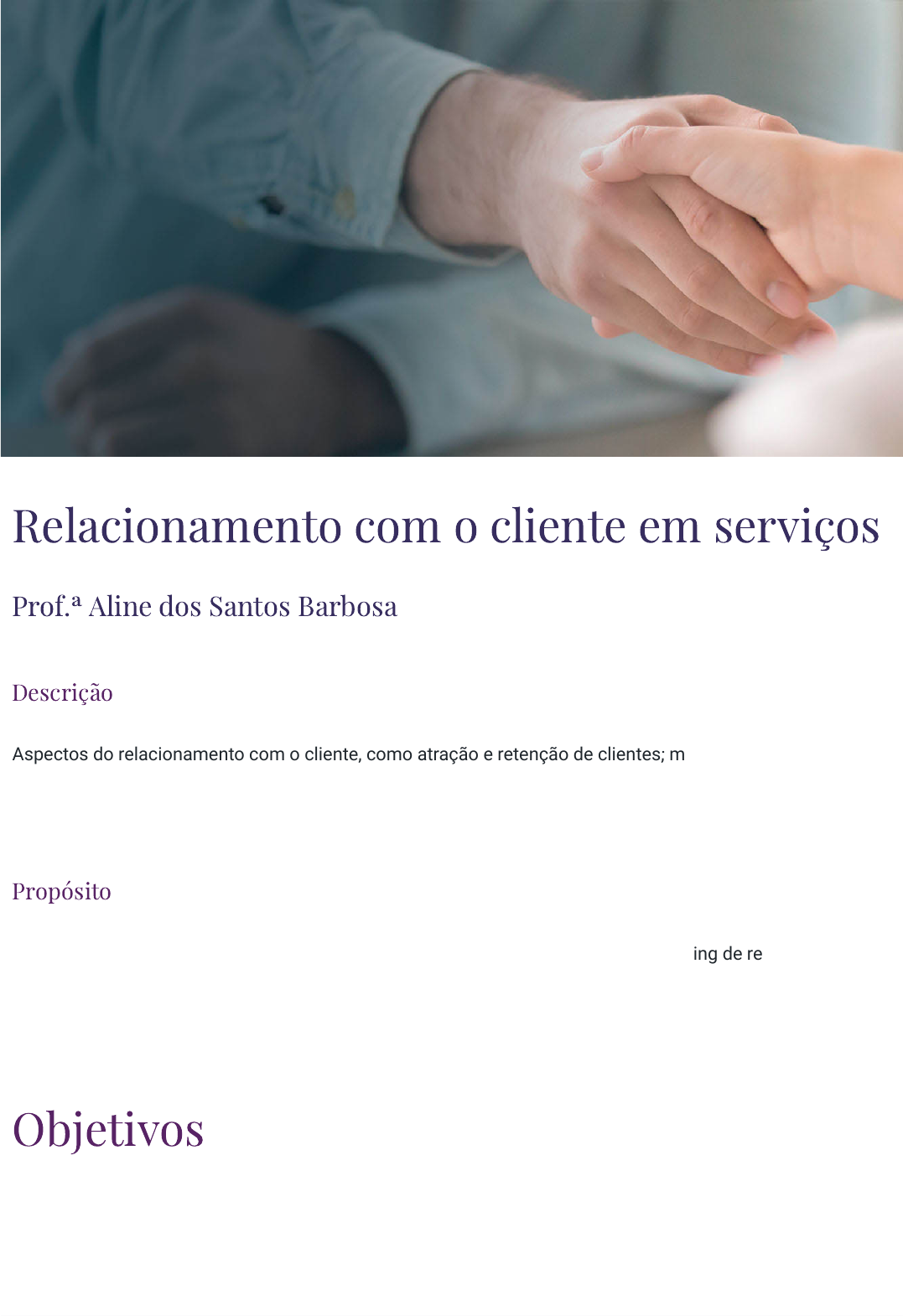 Relacionamento com o cliente em serviços Prof.ª Aline dos Santos Barbosa Descrição Aspectos do relacionamento com o cliente, como atração e retenção de clientes; marketing de relacionamento; roda da fidelidade; construção de uma base para a fidelidade; comportamento de reclamação do cliente; princípios de sistemas eficazes de recuperação de serviços. Propósito Compreender a importância da conquista e retenção de clientes por meio do marketing de relacionamento, bem como as estratégias de recuperação de serviços, para estar apto a aplicar esses conhecimentos nos mais diversos setores. Objetivos Módulo 1 Conquista de clientes em serviços Identificar o processo de conquista de clientes em serviços. Módulo 2 Relacionamento e �delidade dos clientes Reconhecer a importância de gerenciar os relacionamentos e desenvolver a fidelidade dos clientes. Módulo 3 Reclamações e recuperação Empregar a administração de reclamações e recuperação do serviço. Introdução Você já se perguntou por que existem clientes fiéis? Existem diversas razões para que um cliente desenvolva um relacionamento com uma empresa. No entanto, é importante saber que esses consumidores não são necessariamente fiéis. Ao contrário, as empresas precisam dar-lhes um motivo para consolidar sua compra e manter essa relação duradoura. Para isso, é importante que a empresa crie valor para tornar e manter seus clientes fiéis. Um bom relacionamento entre uma prestadora de serviço e seus consumidores pode gerar valor por meio de algumas ações como: inspirar maior confiança, oferecer benefícios sociais e proporcionar tratamento especial. Entretanto, nem sempre a empresa consegue atender às expectativas dos clientes. Além disso, por vezes, o serviço também não é executado da maneira correta ou ideal. Isso afeta a satisfação do consumidor e, consequentemente, a possibilidade de torná-lo um cliente fidelizado. Por isso, as organizações devem estar atentas aos seus processos e, principalmente, saber como agir em situações em que o consumidor precisa ser recompensado e recuperado. 1 - Conquista de clientes em serviços Ao �nal deste módulo, você deverá ser capaz de identi�car o processo de conquista de clientes em serviços. Atração de clientes Uma empresa que deseja expandir seus lucros e suas vendas deve investir tempo e recursos para conquistar novos clientes. Para geração de leads (informações de clientes potenciais) é importante divulgar a marca por meios de comunicação que alcançarão novos consumidores. Além disso, a empresa pode promover outras ações de diversas formas, por exemplo: Uma das estratégias mais importantes para atrair novos consumidores é compreender quais são os critérios que eles avaliam na hora de escolher por um produto ou serviço. Vamos abordar alguns desses critérios a seguir. Enviar e-mails para potenciais clientes. Incentivar a participação da equipe de vendas em feiras setoriais, em busca de novas possibilidades de negócio. Comprar cadastros de consumidores de empresas especializadas. Participar ativamente das redes sociais. Disponibilidade Esse assunto nos traz uma pergunta: Quão acessível é o serviço para os consumidores? Um determinado banco ficou conhecido pela expressão “30 horas”, em que soma as seis horas de funcionamento das agências, que geralmente ficam abertas das 10h às 16h, mais as 24 horas dos caixas eletrônicos, site, aplicativos e telefones da central de atendimento. Além dos bancos, muitas outras empresas prestadoras de serviço possuem serviço de atendimento telefônico 0800 (discagem gratuita) com horário estendido, chats pelos sites e canais de atendimento nas redes sociais, para facilitar o acesso a informações após o horário normal de funcionamento. Conveniência Um dos pontos importantes para a empresa prestadora de serviço é sua localização, uma vez que os consumidores precisam se deslocar até ela. Exemplo Postos de gasolina, restaurantes fast-food e lavanderias são tipos de serviços que devem optar por localidades como ruas movimentadas para terem maior número de clientes. Além disso, as lojas que possuem rede de franquias conseguem atingir um número maior de consumidores por estarem presentes em diversos pontos da cidade. Segundo a Associação Brasileira de Franchising (ABF), desde 2016, a rede de cosméticos O Boticário é considerada a maior rede de franquias do Brasil, com 3.724 lojas espalhadas pelo país. Isso certamente gera um diferencial competitivo em relação a outras redes de cosméticos que estão em menor número, pois quando um consumidor procura por algum item de beleza e encontra uma loja com facilidade, este será um critério de escolha para ele. Con�abilidade Quando pensamos em confiar em um serviço, sempre nos vem a pergunta: O cliente pode �car tranquilo de que serviço prestado é con�ável? Uma reclamação muito comum sobre a manutenção de automóveis é a incapacidade do prestador de serviço em solucionar o problema na primeira visita. A Agência Nacional de Aviação Civil (Anac), órgão federal que regulamenta a aviação comercial, fiscaliza o cumprimento de horários das empresas aéreas, para garantir que estas cumpram o que foi informado aos consumidores no ato da compra de suas passagens aéreas. Personalização Quando imaginamos uma personalização própria, nos perguntamos: A empresa trata seus consumidores como indivíduos únicos? Por exemplo, os hotéis perceberam que seus clientes ficavam felizes ao serem cumprimentados pelos seus nomes. O grau de customização que as organizações permitem, por menor que seja, pode ser percebido como um serviço mais personalizado. Preço Quando falamos em competição por preço no setor de serviços, encontramos problemas de intangibilidade. ntangibilidade Os consumidores possuem dificuldade de comparar os custos dos serviços de forma objetiva. Atividades rotineiras, t