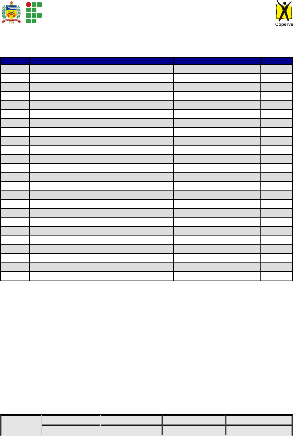 3 - Classificação Geral (Não Optantes pelo PAA) 211 - Escola Pública - Renda até 1,5 SM - PPI Deficientes 221 - Escola Pública - Renda até 1,5 SM - Outros Deficientes 231 - Escola Pública - Renda acima de 1,5 SM - PPI Deficientes 241 - Escola Pública - Renda acima de 1,5 SM - Outros Deficientes 212 - Escola Pública - Renda até 1,5 SM - PPI 222 - Escola Pública - Renda até 1,5 SM - Outros 232 - Escola Pública - Renda acima de 1,5 SM - PPI 242 - Escola Pública - Renda acima de 1,5 SM - Outros Universidade Federal de Santa Catarina Comissão Permanente do Vestibular Vestibular UNIFICADO UFSC/IFSC – 2023 - REOPÇÃO AGRONOMIA - BEL - INTEGRAL - CURITIBANOS (UFSC) Primeiro Semestre Inscrição Nome do Candidato Categoria de Classificação Classificação 6006205 ALESSANDRA DOS SANTOS CARNIEL 3 12 6023550 ALFREDO ENRIQUE FRANZOI LEMOS 3 11 6012183 ANA LAURA RECH PARIZOTTO 3 8 6010440 ARTHUR COSER 3 18 6007511 BRUNO WILLIAM BITTENCOURT 3 17 6014372 CAMILI VITORIA DA COSTA MARTINAZZO 3 21 6008100 CARLA CRISTINA WAWRZYNIAK 3 9 6035639 ELIS MARIA SCHEMBERGER SCHAF 3 3 6023193 GABRIEL DOROTEL DA SILVA FERREIRA 3 1 6002978 GUILHERME VARGAS 3 2 6005144 GUSTAVO HENRIQUE ULLIRSCH 3 22 6014836 ISADORA VICTORIA SCHWEITZER CARVALHO 3 5 6011055 JOAO GUILHERME DEMENECK STOCKMANN 3 23 6021751 JULIA ELOIZA THIERSCH KISSNER 3 7 6030556 KELEN REGINA DE ALMEIDA 3 19 6009972 LIVIA HINCKEL MACIEL 3 16 6025781 MANUELA VELOSO DA CRUZ 3 20 6005225 MARCO ANTONIO ZANETTE VIEIRA 3 10 6029337 MAYNA BANDEIRA KOCH 3 13 6036155 PAULA OLIVIA MORESCO 3 14 6031986 RAFAEL EGUCHI CRISTOFOLI 3 6 6030424 ROSIANE DE BARROS SALDANHA 3 4 6034209 STEFANI DUPONT 3 15 6008216 TAINA OSTROVSKI 3 24 3 - Classificação Geral (Não Optantes pelo PAA) 211 - Escola Pública - Renda até 1,5 SM - PPI Deficientes 221 - Escola Pública - Renda até 1,5 SM - Outros Deficientes 231 - Escola Pública - Renda acima de 1,5 SM - PPI Deficientes 241 - Escola Pública - Renda acima de 1,5 SM - Outros Deficientes 212 - Escola Pública - Renda até 1,5 SM - PPI 222 - Escola Pública - Renda até 1,5 SM - Outros 232 - Escola Pública - Renda acima de 1,5 SM - PPI 242 - Escola Pública - Renda acima de 1,5 SM - Outros AGRONOMIA - BEL - INTEGRAL - CURITIBANOS (UFSC) Segundo Semestre Inscrição Nome do Candidato Categoria de Classificação Classificação 6031200 ANA JULIA BACH 3 43 6014690 ARTHUR LOVATEL COELHO 3 37 6026702 DIEGO NUNES DA ROSA 3 31 6001475 GABRIEL BASTOS SOARES THEISEN 3 36 6004164 GABRIEL ORSI 3 40 6018173 HELEN ALVES PEREIRA 3 28 6019919 ISABELI MARIA REOLON 3 34 6030700 JULIA AGUIAR DE ALMEIDA 3 42 6004946 JULIANA CAMARGO SIMAO 3 44 6009786 LAURA GUIMARAES DO NASCIMENTO 3 41 6009425 LORHANA NUNES BRAGA 3 25 6009743 LUIS GUILHERME DE OLIVEIRA GARCIA 3 45 6022545 MARIA EDUARDA BEAL CUNHA 3 38 6009913 MARIA JULIA CAMPOS DA ROSA 3 32 6002366 MEL ANNE LEITE 3 26 6004210 MELISSA KONKEL 3 27 6024769 MORGANA CHIAMULERA 3 35 6031315 MURILO BRINGEL GUERRA 3 39 6001548 NATALIA MORAES MUNIZ 3 30 6001661 SUANE VARELA 3 33 6019595 SUELEN GOETTEN SANTOS 3 29