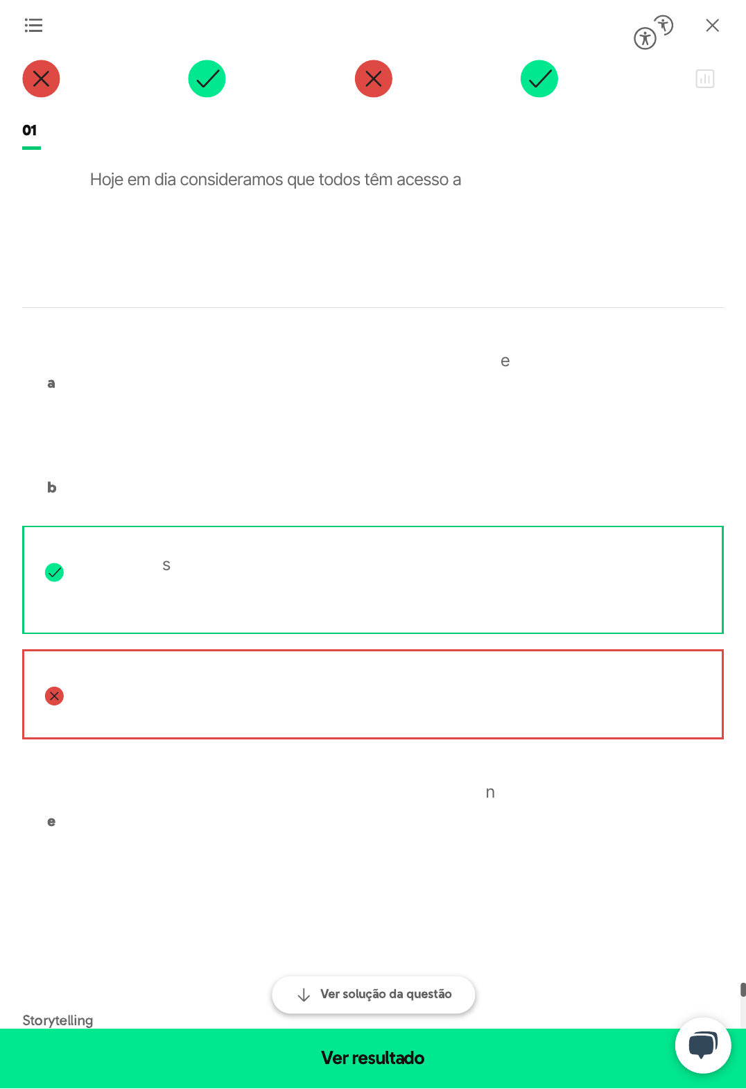 Storytelling Criando um Projeto de Storytelling 01 Hoje em dia consideramos que todos têm acesso a ferramentas tecnológicas e, portanto, costumamos usar a internet e equipamentos móveis, como celulares, como as mídias preferenciais para entrega dessas narrativas. Isso é uma maneira correta de agir? a Sim, pois diminui custos e aumenta a capilaridade de distribuição b Não, pois pode gerar brechas de segurança Não, pois nem sempre o contexto do público está relacionado a essas novas tecnologias Sim, pois é uma forma de qualificação digital e Sim, pois quem não tem acesso à internet deve encontrar uma maneira de acessar os conteúdos Ver solução da questão Ver resultado Storytelling Criando um Projeto de Storytelling Suas anotações 02 Quando identificamos que as narrativas do público a respeito do tema estão dissonantes com o objetivo do projeto, como devemos agir? a Desistir de utilizar storytelling e focar apenas em informações diretas Encontrar pontos de contato entre as narrativas pessoais e institucionais para criar histórias que permitam ao público transacionar de um ponto a outro c Usar histórias mais genéricas e evitar os pontos de conflito d Usar narrativas utilizadas por outras instituições que já tiveram sucesso em seus projetos e Estão corretas as alternativas A e C Ver solução da questão Ver resultado Storytelling Criando um Projeto de Storytelling Suas anotações 03 Os objetivos de um projeto parecem muito subjetivos e incertos. Como gerar boas métricas para aferir o sucesso do projeto nesse caso? Rever os objetivos para torná-los mais concretos b Se basear apenas na reação e popularidade das narrativas apresentadas c Focar em objetivos de mídia social como quantidade de seguidores e curtidas Focar apenas em métricas de retenção de informação e Focar na opinião dos donos da empresa Ver solução da questão Ver resultado Storytelling Criando um Projeto de Storytelling 04 Considerando o passo a passo para a criação de um projeto de Storytelling, podemos dizer que todos eles são fundamentais para seu sucesso. Apesar disso, alguns dos itens são iniciais e imprescindíveis para as demais fases do projeto, são eles: a Definir as métricas de avaliação e veiculação do projeto b Avaliar as estratégias de marketing para divulgação c Considerar as estruturas narrativas que serão utilizadas Definir o objetivo do projeto e conhecer o público ao qual se destina e Definir com qual periodicidade a mensagem será veiculada Ver solução da questão Ver resultado Storytelling Criando um Projeto de Storytelling Suas anotações Oque é umprojeto de Storytelling Nota 5, vamos estudar! Você acertou 2 questões. Aproveitamento Questão 01 Questão 02 Questão 03 Questão 04 Ir para próxima aula