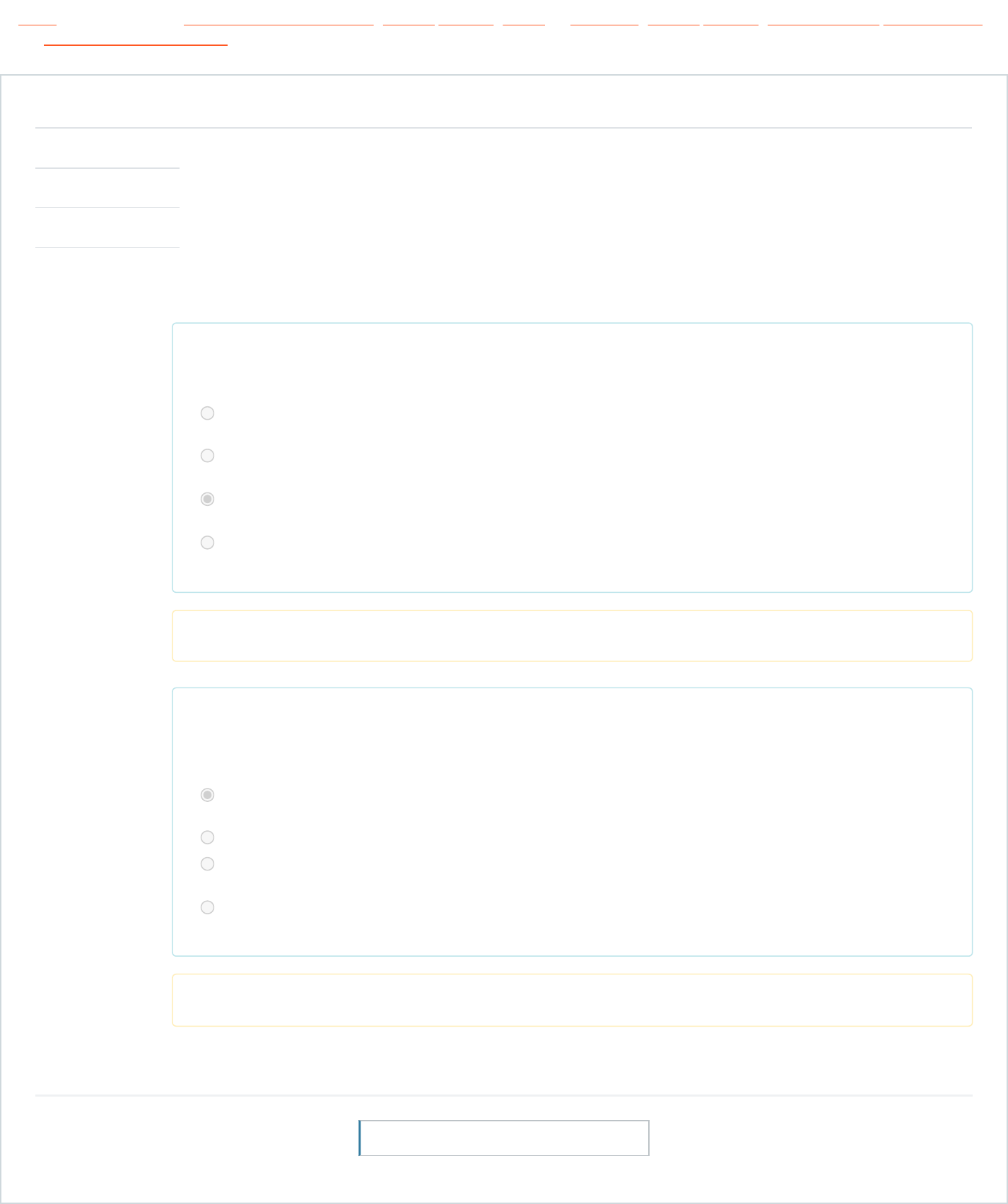 24/05/2023, 16:07 Revisando os conhecimentos: Revisão da tentativa https://mooc38.escolavirtual.gov.br/mod/quiz/review.php?attempt=10319620&cmid=205368 1/2 Painel / Meus cursos / Contratos administrativos - Pagamento pelo fato gerador / Bloco 2: Pagamento pelo fato gerador x conta-depósito vinculada / Revisando os conhecimentos Questão 1 Completo Não avaliada Questão 2 Completo Não avaliada Iniciado em quinta, 18 mai 2023, 16:42 Estado Finalizada Concluída em quarta, 24 mai 2023, 16:07 Tempo empregado 5 dias 23 horas No PFG, quais são os custos liberados em um mês “normal” ou seja, sem ocorrências eventuais? Escolha uma opção: a. Remuneração, férias, encargos previdenciários, Benefícios Mensais e Diários; Intrajornada, Insumos, Custos Indiretos, Tributos e Lucro (CITL); b. Remuneração, encargos previdenciários e FGTS, Benefícios Diários; Intrajornada, Insumos, Custo de substituição, Custos Indiretos, Tributos e Lucro (CITL) c. Remuneração, encargos previdenciários e FGTS, Benefícios Mensais e Diários; Intrajornada, Insumos, Custos Indiretos, Tributos e Lucro (CITL) d. Remuneração, encargos previdenciários e FGTS, Benefícios Mensais e Diários; Intrajornada, Ausências Legais, Custos Indiretos, Tributos e Lucro (CITL) Sua resposta está correta. No PFG, como acontece a liberação do saldo, ao final do contrato, referente ás verbas não utilizadas pela não ocorrência de determinados eventos? Escolha uma opção: a. Acontece através do acompanhamento da fiscalização da medição desses eventos no pagamento do mês da ocorrência; b. Precisa obedecer aos trâmites de solicitação junto à instituição financeira onde se encontram; c. A empresa executa o pagamento, junta os comprovantes, apresenta à fiscalização que uma vez realizada a conferência integra tais custos na medição daquele mês. d. Não há saldo a ser liberado! No PFG, não existe o direito adquirido sobre as verbas que não tiverem sido objeto de eventos concretos. Sua resposta está incorreta. ◄ Comparativo entre a Conta Vinculada e o Pagamento pelo Fato Gerador Seguir para... Vantagens e desvantagens do pagamento por fato gerador ► https://mooc38.escolavirtual.gov.br/my/ https://mooc38.escolavirtual.gov.br/course/view.php?id=10862 https://mooc38.escolavirtual.gov.br/course/view.php?id=10862#section-2 https://mooc38.escolavirtual.gov.br/mod/quiz/view.php?id=205368 https://mooc38.escolavirtual.gov.br/mod/url/view.php?id=205367&forceview=1 https://mooc38.escolavirtual.gov.br/mod/url/view.php?id=205370&forceview=1 24/05/2023, 16:07 Revisando os conhecimentos: Revisão da tentativa https://mooc38.escolavirtual.gov.br/mod/quiz/review.php?attempt=10319620&cmid=205368 2/2