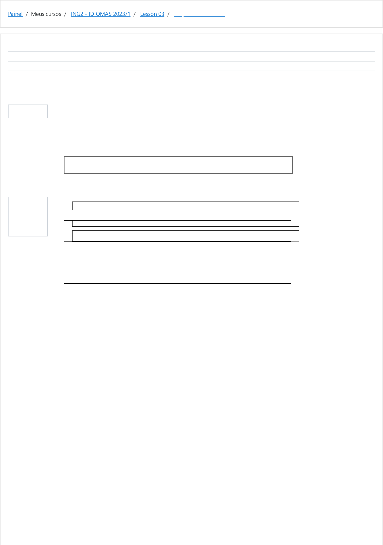Painel / Meus cursos / ING2 - IDIOMAS 2023/1 / Lesson 03 / Sequence in the Past Informação Questão 1 Correto Atingiu 3,33 de 3,33 Iniciado em quinta, 6 abr 2023, 21:57 Estado Finalizada Concluída em quinta, 6 abr 2023, 21:58 Tempo empregado 37 segundos Avaliar 10,00 de um máximo de 10,00(100%) Considering what you studied in this lesson, order the sentences to build up a paragraph. Use the sequence words to help you. Não consegue fazer o exercício no navegador do celular? Baixe o aplicativo do Moodle. 1 - 2 - 3 - Sua resposta está correta. A resposta correta é: 1 - [Last year Carlton did not have any idea his father was alive and living in Canada.] 2 - [However, last month, he received a phone call from Sarah telling him his father was dead.] 3 - [Then, last week, he flew to Vancouver to attend his father's funeral.] Then, last week, he flew to Vancouver to attend his father's funeral. However, last month, he received a phone call from Sarah telling him his father was dead. Last year Carlton did not have any idea his father was alive and living in Canada. https://moodle.ifsul.edu.br/novohamburgo/my/ https://moodle.ifsul.edu.br/novohamburgo/course/view.php?id=337 https://moodle.ifsul.edu.br/novohamburgo/course/view.php?id=337#section-5 https://moodle.ifsul.edu.br/novohamburgo/mod/quiz/view.php?id=53553 Questão 2 Correto Atingiu 3,33 de 3,33 Questão 3 Correto Atingiu 3,33 de 3,33 1 - 2 - 3 - Sua resposta está correta. A resposta correta é: 1 - [Two hours ago Jason called Sarah, but she didn't answer the phone because she was working.] 2 - [Later in the morning he saw Bruno and Carlton.] 3 - [They were having breakfast at the diner. After seeing them, he decided to call Sarah immediately.] 1 - 2 - 3 - Sua resposta está correta. A resposta correta é: 1 - [First Steve and Oxley met at Jason's house, and then they waited for Sarah] 2 - [She was working until 6 PM, but earlier that day she told them she would meet them later.] 3 - [Thirty minutes later when she got there, they went to the movies.] ◄ Inserting Sequence Words Seguir para... Talking About Losing Documents ► They were having breakfast at the diner. After seeing them, he decided to call Sarah immediately. Later in the morning he saw Bruno and Carlton. Two hours ago Jason called Sarah, but she didn't answer the phone because she was working. Thirty minutes later when she got there, they went to the movies. She was working until 6 PM, but earlier that day she told them she would meet them later. First Steve and Oxley met at Jason's house, and then they waited for Sarah https://moodle.ifsul.edu.br/novohamburgo/mod/quiz/view.php?id=53552&forceview=1 https://moodle.ifsul.edu.br/novohamburgo/mod/quiz/view.php?id=53554&forceview=1
