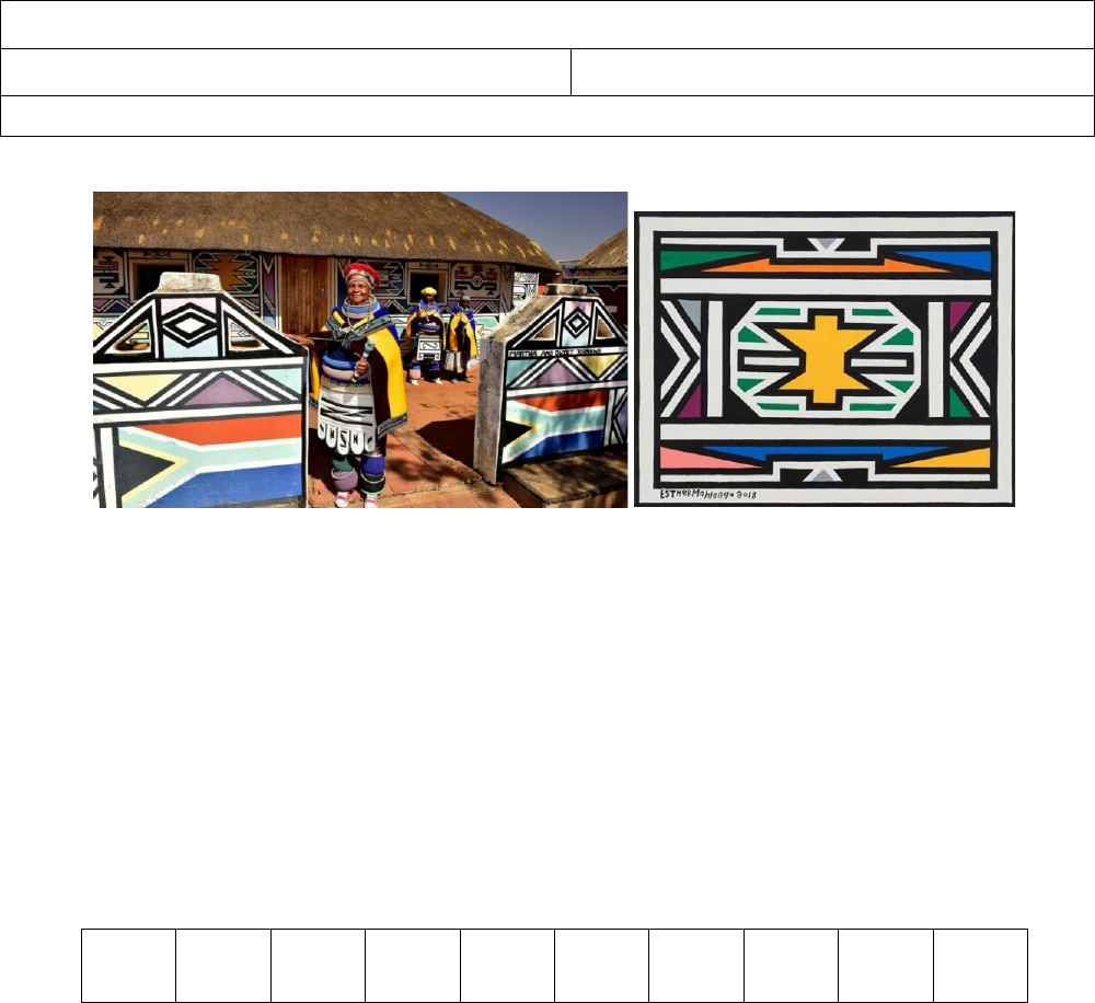 ARTE Professora 8º ano Aluno(a): Olá pessoal, vamos aprofundar um pouco mais nossos estudos sobre arte? Fig. 1 - Esther Mahlangu, Vila Ndebele, África do Sul Fig. 2 - Padrão - Esther Mahlangu “O povo de Ndebele é um grupo étnico que vive no Norte do Zimbábue. Esse povo é conhecido pela expressão artística, sobretudo pela pintura das casas que eram e continuam sendo pintadas somente pelas mulheres. Durante o Apartheid essas pinturas eram usadas como um sinal pelas pessoas do vilarejo. A cores roxa, por exemplo, era utilizada como um aviso de perigo, e a cor verde, simbolizava o fim de um período de fome ou de guerra, segundo contam nativas da região.” Atualmente, a arte do povo Ndebele conquistou galerias e exposições de arte pelo mundo, sobretudo com as pinturas da artista Esther Mahlangu. A. Com o lápis de cor ou giz de cera, monte a paleta de cores da artista Esther Mahlangu (lembre-se que a paleta de cores se trata de todas as cores utilizadas por um artista e/ou em uma obra). B. As cores na pintura Ndebele funcionaram como código para o povo daquelas comunidades durante o apartheid, indicando perigo ou o fim de um período difícil. Pensando na nossa cultura, que cores utilizamos na nossa cultura são ainda utilizadas para simbolizar ou evocar alguma mensagem, sentimento? Cite as cores (e seus respectivos significados) que você se lembrar. _____________________________________________________________________________________ _____________________________________________________________________________________ _____________________________________________________________