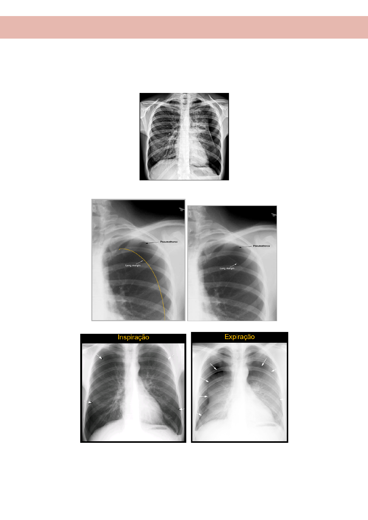 Medicina por Imagem | Dr. Matheus Guelssi Trauma de tórax SINAL DO MENISCO LINHA B E M SABER DIFERENCIAR DERRAME PLEURAL E PNEUMOTÓRAX; HIDROPNEUMOTÓRAX ● PNEUMOTÓRAX Problema no hemitórax esquerdo É importante pedir em inspiração e expiração para conseguir distinguir as margens Gabriela de Oliveira | T3 | 8º período 1 Medicina por Imagem | Dr. Matheus Guelssi Posso aumentar a área de exposição ao raio da máquina, para conseguir ver os limites melhores do pneumotórax TC Ponto pulmonar Gabriela de Oliveira | T3 | 8º período 2 Medicina por Imagem | Dr. Matheus Guelssi ● Sobre USG POCUS - point of care ultrasound Se eu não saber se está tudo certo ou não no painel do USG, coloco todas as bolinhas no meio, nenhuma nas pontas não mexer tanto no ganho depth é como se fosse um zoom Nomodo M eu posso ver aquela imagem em código de barras Transdutores quanto menor o foco, maior a profundidade quanto maior o foco menos a profundidade no convexo eu tenho o limite máximo do foco preset: pode entrar em contato com o representando para ele arrumar o preset do jeito q eu quero Líquido na ecografia: ANECOICO Gabriela de Oliveira | T3 | 8º período 3 Medicina por Imagem | Dr. Matheus Guelssi • Pesquisa do pneumotórax Posso ir em qualquer lugar do tórax, não preciso me limitar tanto Quando as 2 pleuras entram em contato uma com a outra, além do deslizamento, temos caudas dos cometas Quando não saber identificar, ir até uma costela e ver as pleuras que estarão embaixo dela - pneumotórax USG MODO B - pneumotórax Gabriela de Oliveira | T3 | 8º período 4 Medicina por Imagem | Dr. Matheus Guelssi USG MODO M (modo M sempre avalia movimento) - pneumotórax - parte semmovimento e parte commovimento Lembrar areia da praia: movimento Drenagem de tórax RX para ver se está bem posicionado Pneumotórax hipertensivo → choque obstrutivo Gabriela de Oliveira | T3 | 8º período 5 Medicina por Imagem | Dr. Matheus Guelssi Pneumotórax RX AP no leito - sinal do sulco profundo Fratura de costela RX em oblíquo ● DERRAME PLEURAL Apagamento do seio costo frênico, diafragma e costela Gabriela de Oliveira | T3 | 8º período 6 Medicina por Imagem | Dr. Matheus Guelssi quando o paciente só tem derrame pleural, tenho o sinal do menisco, que é essa parábola do lado; sangue fica no seio costofrênico,mas contorna o pulmão qualquer líquido pode fazer o sinal do menisco TC Paciente em pé o líquido fica no seio costofrênico; . Gabriela de Oliveira | T3 | 8º período 7 Medicina por Imagem | Dr. Matheus Guelssi A linha mais hiperecóica é o diafragma, e temos o espelhamento o que está pra cima na imagem é superficial Atelectasia fica mais radiolúcida (mais branca do que o derrame pleural) Derrame pleural com maior desvio de linha média- traquéia ● HIDROPNEUMOTÓRAX Derrame pleural + pneumotórax junto Não tenho o sinal do menisco, a linha fica retilínea; há desvio de linha média na segunda foto Gabriela de Oliveira | T3 | 8º período 8 Medicina por Imagem | Dr. Matheus Guelssi ● CONTUSÃO PULMONAR Na imagem A temos uma contusão intrapulmonar, que faz criar um espaço no pulmão, simulando como se fosse um pneumotórax; o RX não é suficiente para dizer o diagnóstico ● LESÃO DE DIAFRAGMA Estômago deslocado para o interior do hemitórax esquerdo ● CORPO ESTRANHO - Hiperinsuflação unilateral Paciente chega com desconforto respiratório; no RX aparece uma hiperinsuflação unilateral pede RX em ins e exp; Gabriela de Oliveira | T3 | 8º período 9 Medicina por Imagem | Dr. Matheus Guelssi ● DERRAME PERICÁRDICO Aumento da área cardíaca, com aspecto em taça invertida Gabriela de Oliveira | T3 | 8º período 10 Medicina por Imagem | Dr. Matheus Guelssi Hemopericárdio Retificação da borda cardíaca esquerda Se entrar só superior o esterno vai atrapalhar Gabriela de Oliveira | T3 | 8º período 11