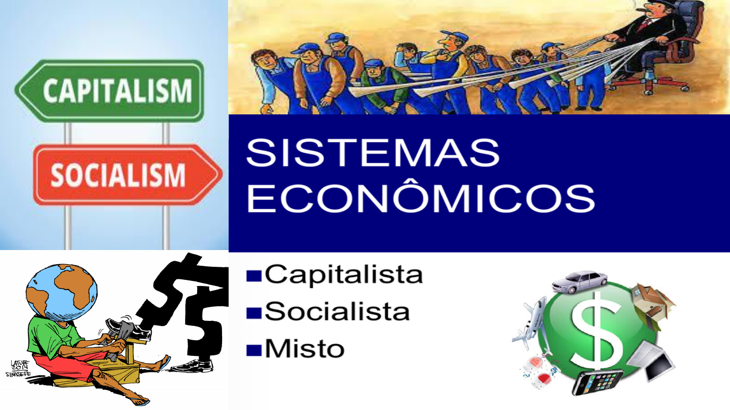 CONCEITO - Um sistema econômico pode ser definido como sendo a forma na qual uma sociedade está organizada em termos políticos, econômicos e sociais para desenvolver as atividades econômicas de produção, troca e consumo de bens e serviços. Os elementos básicos de um sistema econômico são: • Estoques de recursos produtivos ou fatores de produção: aqui estão os recursos humanos (trabalho e capacidade empresarial), o capital, a terra, as reservas naturais e a tecnologia. • Complexo de unidade de produção (Meio de produção – processo empregado na produção de determinada mercadoria, como máquinas, ferramentas, instalações, energia e também mão de obra do trabalhador): constituído pelas empresas. • Conjunto de instituições políticas, jurídicas, econômicas e sociais: que são a base da organização da sociedade. Os sistemas econômicos podem ser classificados em: Sistema capitalista ou economia de mercado, que é regido pelas forças de mercado, predominando a livre iniciativa e a propriedade privada dos fatores de produção. Sistema socialista ou economia centralizada, ou ainda economia planificada: nesse sistema, as questões econômicas fundamentais são resolvidas por um órgão central de planejamento, predominando a propriedade pública dos fatores de produção, chamados, nessas economias, de meios de produção, englobando os bens de capital, terra, prédios, bancos, matérias-primas. Todavia, na atualidade, praticamente todos os países possuem algum tipo de economia de mercado. Assim, podemos dizer que a organização econômica é realizada a partir de algum sistema intermediário entre essas duas formas, combinando a atuação do mercado com a intervenção do governo. O qual denominam Sistema misto. Aprenda a Diferença entre CAPITALISMO E SOCIALISMO - Capitalismo: liberdade econômica (livre concorrência) com pouca intervenção do governo na economia. - Socialismo: falta de liberdade econômica com grande intervenção do governo na economia. (KEYNEISIANISMO) - Capitalismo: salários dos trabalhadores definidos pelo mercado. - Socialismo: salários controlados e definidos pelo governo. - Capitalismo: preços dos produtos são definidos pela lei da oferta e procura. - Socialismo: preços controlados pelo governo. - Capitalismo: investimentos nos setores da economia feitos pelo Estado e também pela iniciativa privada. - Socialismo: investimentos feitos apenas pelo Estado. - Capitalismo: existência de desigualdades sociais, principalmente nos países em desenvolvimento. - Socialismo: baixa desigualdade social. - Capitalismo: existência de classes sociais, definidas, principalmente, pela condição econômica das pessoas. - Socialismo: inexistência de classes sociais. - Capitalismo: meios de produção (fábricas, fazendas) e bancos nas mãos de particulares (propriedade privada). - Socialismo: fábricas, fazendas, bancos controlados pelo governo. - Capitalismo: valorização e existência do lucro nos negócios, que ficam para o(s) proprietário(s). - Socialismo: a renda derivada da produção é socializada entre os trabalhadores. - Capitalismo: existência de pobreza e miséria em grande parte dos países. - Socialismo: o governo garante o necessário (educação, saúde, alimentação) para a sobrevivência das famílias. Baixíssimo índice de pobreza. - Capitalismo: sistemas de educação e saúde público e privado. - Socialismo: sistema de educação e saúde público. URSS (União das Repúblicas Socialistas Soviéticas) – Formado em 1922 pela revolução liderada por Vladmir Lênin, a URSS é até hoje a principal experiência socialista da história. Entre as décadas de 1940 e 1970 viveu o auge do seu poderio econômico e militar. Convivendo intimamente com o totalitarismo, teve como lideranças figuras extremamente autoritárias, como Josef Stálin. Tornou-se um exemplo de socialismo real, combatendo as desigualdades em seu país e desenvolvendo muito a economia e a tecnologia. No entanto, o autoritarismo, a violência, os desrespeitos aos direitos humanos e a corrupção revelaram uma face sombria dessa experiência. Fim da Guerra Fria... •A falta de democracia, o atraso econômico/tecnológico e a crise nas repúblicas soviéticas acabaram por acelerar a crise do socialismo no final da década de 1980. •Em 1989 o Muro de Berlim é derrubado e em 1990 as duas Alemanha são reunificadas. •No começo da década de 1990, o então presidente da União Soviética Gorbachev começou a acelerar o fim do socialismo naquele país e nos aliados. •Com reformas econômicas, acordos com os EUA e mudanças políticas, o sistema foi se enfraquecendo. •Era o fim de um período de embates políticos, ideológicos e militares. •O capitalismo vitorioso, aos poucos, iria sendo implantado nos países socialistas. •A URSS se desintegra em 1991 e surge a CEI (Comunidade dos Estados independentes) no lugar.