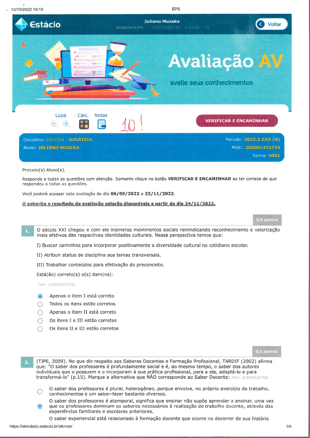qui.,10deabr. N Prova AV Didática 1 Marcar para revisão A didática é um campo de estudos que reúne formas e métodos para pensar o ato educativo. O ...