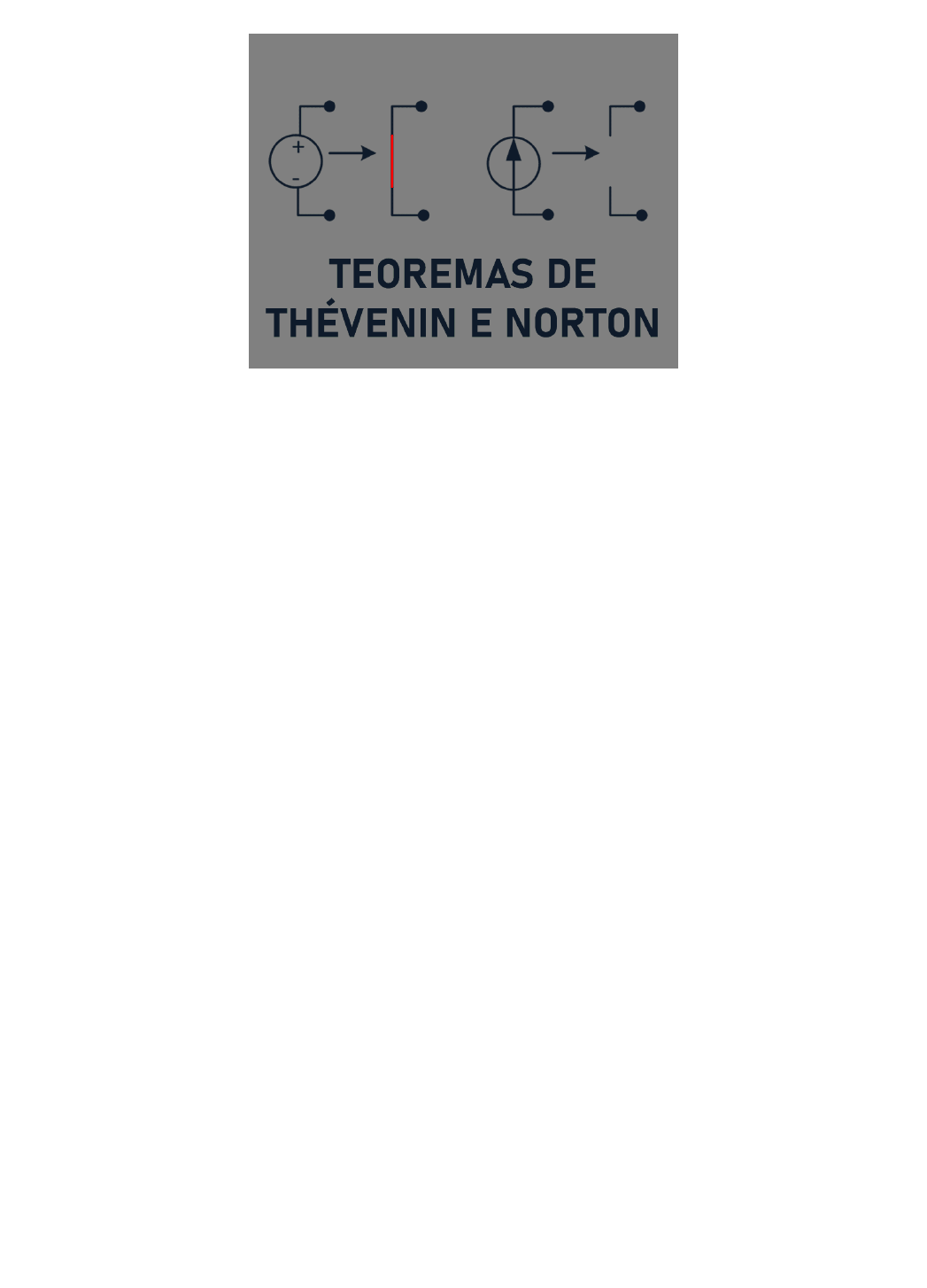 DESCRIÇÃO Introdução ao estudo da eletricidade aplicada para análise de circuitos elétricos em corrente contínua (CC), com base nos teoremas de Thévenin e de Norton. PROPÓSITO Compreender os conceitos fundamentais dos teoremas de Thévenin e Norton e aplica-los à solução de problemas com circuitos elétricos em corrente contínua. PREPARAÇÃO Antes de iniciar o conteúdo, tenha em mãos papel, caneta para anotações e, se possível, uma calculadora científica para facilitar seus cálculos na solução das equações de circuitos elétricos. OBJETIVOS MÓDULO 1 Analisar circuitos elétricos por meio do teorema de Thévenin 03/06/2023 04:21 Página 1 de 53 MÓDULO 2 Analisar circuitos elétricos por meio do teorema de Norton INTRODUÇÃO TEOREMAS DE THÉVENIN E NORTON AVISO: orientações sobre unidades de medida. AVISO Em nosso material, unidades de medida e números são escritos juntos (ex.: 25km) por questões de tecnologia e didáticas. No entanto, o Inmetro estabelece que deve existir um espaço entre o número e a unidade (ex.: 25 km). Logo, os relatórios técnicos e demais materiais escritos por você devem seguir o padrão internacional de separação dos números e das unidades. 03/06/2023 04:21 Página 2 de 53 MÓDULO 1 ! Analisar circuitos elétricos por meio do teorema de Thévenin. TEOREMA DE THÉVENIN TEOREMA DE THÉVENIN O teorema de Thévenin é uma ferramenta muito usada na análise de circuitos, pois sua aplicação permite a redução de circuitos complexos para formas mais simples, facilitando seu estudo. Existem diversas formas de analisar um circuito, como, por exemplo, aplicando as Leis de Kirchhoff, contudo, a complexidade de certas análises requer simplificações que podem ser alcançadas com o teorema de Thévenin. Neste conteúdo, serão apresentadas técnicas referentes ao teorema aplicadas a circuitos de corrente contínua (CC). LINEARIDADE 03/06/2023 04:21 Página 3 de 53 PARA QUE O TEOREMA EM ABORDAGEM POSSA SER APLICADO, É NECESSÁRIO QUE O CIRCUITO OU O SISTEMA SEJA LINEAR. A LINEARIDADE DESCREVE UMA RELAÇÃO DE CAUSA E EFEITO. TOMANDO O RESISTOR COMO EXEMPLO DE ELEMENTO LINEAR, É POSSÍVEL OBSERVAR NELE ESTA CARACTERÍSTICA. Considerando a primeira Lei de Ohm, assume-se que a tensão “v” se refere à saída do sistema, e a entrada é dada pela corrente “i”. Se a corrente varia, a tensão, por sua vez, sofre uma variação proporcional a esta, como pode ser observado na Equação 1: V = IR (1) � Atenção! Para visualização completa da equação utilize a rolagem horizontal A propriedade acima apresentada é chamada de homogeneidade. A combinação dela com a propriedade da aditividade descreve, por sua vez, a linearidade, necessária para a aplicação do teorema de Thévenin. Para descrever a aditividade, consideram-se as Equações 2 e 3: V1 = I1R (2) � Atenção! Para visualização completa da equação utilize a rolagem horizontal V2 = I2R (3) � Atenção! Para visualização completa da equação utilize a rolagem horizontal A validação desta propriedade (aditiva) requer que a resposta obtida da soma das entradas seja igual à soma das entradas, quando estas são aplicadas separadamente. Dessa forma, considerando as Equações 2 e 3, a propriedade pode ser modelada matematicamente como na Equação 4: 03/06/2023 04:21 Página 4 de 53 V = I1 + I2 R = I1R + I2R = V1 + V2 (4) � Atenção! Para visualização completa da equação utilize a rolagem horizontal No que se refere à linearidade do circuito, é importante destacar os seguintes aspectos: Para que o circuito seja linear, as propriedades aditiva e homogênea devem ser atendidas. Potência (representada por P) é não linear, o que pode ser observado nas Equações 5 e 6: P = RI2 (5) � Atenção! Para visualização completa da equação utilize a rolagem horizontal P = V2 R (6) � Atenção! Para visualização completa da equação utilize a rolagem horizontal Por observação, é possível notar que as expressões acima são quadráticas e não lineares. Assim, o teorema de Thévenin não se aplica para o cálculo da potência. EXEMPLO DE LINEARIDADE: Para ilustrar o conceito de linearidade, considere como exemplo o circuito apresentado pela Imagem 1. No circuito da imagem, como pode ser observado, contém uma fonte independente que o excita, Vs. A função desse circuito é carregar uma carga, modelada pela resistência R. Vê-se que há uma corrente i que circula esse circuito. Adotaremos, para fins de estudo, que o valor da fonte é de 10V e que esta resulta em uma corrente de 2A. Ao aplicar o princípio da linearidade, é possível concluir que uma ( ) 03/06/2023 04:21 Página 5 de 53 redução da fonte para 1V faz com que a corrente se reduza para 0,2A. Imagem: Alexander; Sadiku, 2013, p. 114. ! Imagem 1 - Circuito linear. DEFINIÇÃO DO TEOREMA DE THÉVENIN Muitos circuitos possuem elementos variáveis e elementos fixos. Dentre os elementos variáveis, podemos citar as cargas, como ocorre em residências, onde os aparelhos que estão conectados variam em diferentes momentos do dia. Para que o circuito não seja avaliado em cada alteração do elemento variável, o mesmo passa a ser representado de forma simplificada pelo circuito equivalente de Thévenin. O teorema diz que um circuito linear pode ser substituído por outro, representado por um resistor e uma fonte de tensão, como mostra as imagens a seguir. Imagem: Alexander; Sadiku, 2013, p. 123 ! Imagem 2 - Sistema linear. Imagem: Alexander; Sadiku, 2013, p. 123 03/06/2023 04:21 Página 6 de 53 ! Imagem 3 - Equivalente de Thévenin. O TEOREMA DE THÉVENIN AFIRMA QUE UM CIRCUITO LINEAR DE DOIS TERMINAIS PODE SER SUBSTITUÍDO POR UM CIRCUITO EQUIVALENTE FORMADO POR UMA FONTE DE TENSÃO VTH, EM SÉRIE COM UM RESISTOR RTH, ONDE VTH É A TENSÃO DE CIRCUITO ABERTO NOS TERMINAIS E RTH, A RESISTÊNCIA DE ENTRADA OU EQUIVALENTE NOS TERMINAIS QUANDO AS FONTES INDEPENDENTES FOREM DESATIVADAS. ALEXAND