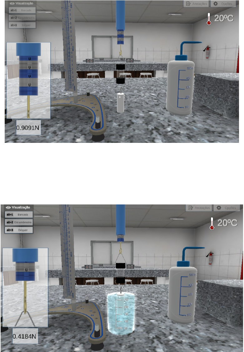 Experimento: Hidrostática Peso cilindro Peso após inserir no béquer Valor do peso após preencher com água ate o fim Temos, a equação do peso aparente: