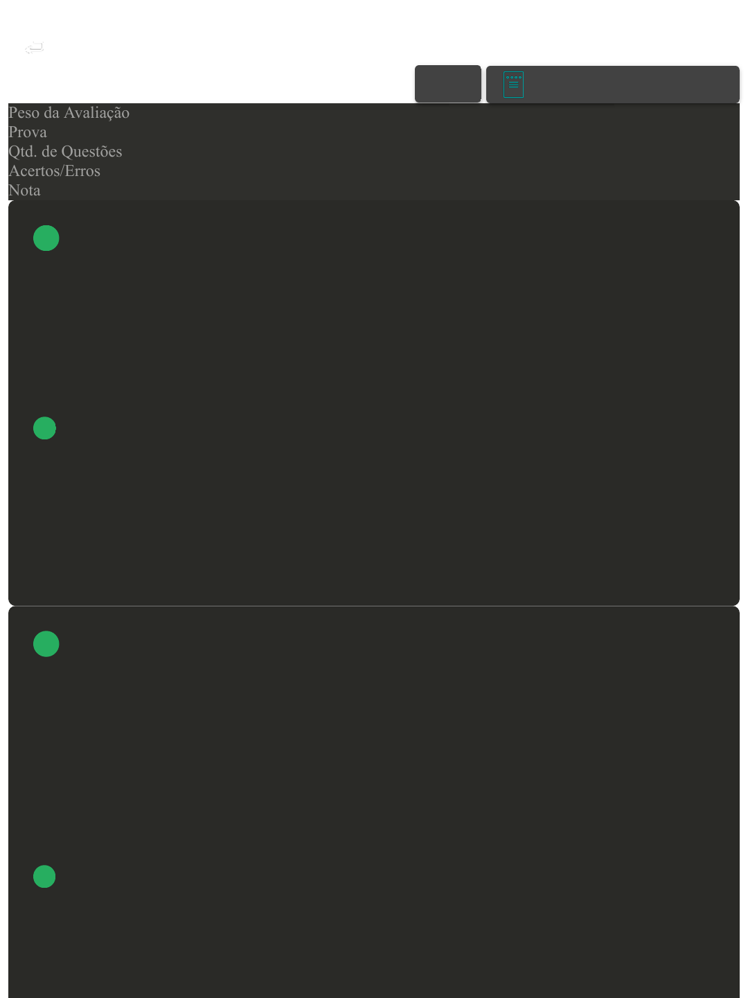 Prova Impressa GABARITO | Avaliação I - Individual (Cod.:824517) Peso da Avaliação 1,50 Prova 61814772 Qtd. de Questões 10 Acertos/Erros 10/0 Nota 10,00 A equação da velocidade de uma onda é conhecida como Equação Fundamental da Ondulatória, válida para ondas mecânicas e eletromagnéticas. Sobre os parâmetros da equação da ondulatória, classifique V para as sentenças verdadeiras e F para as falsas: ( ) A velocidade de propagação de uma onda é constante. ( ) O comprimento de onda e a frequência são inversamente proporcionais. ( ) A velocidade de propagação depende da massa por unidade de comprimento. Assinale a alternativa que apresenta a sequência CORRETA: A V - V - F. B V - F - V. C V - F - F. D F - V - V. Uma corda com um lado fixada em uma parede é agitada para cima e para baixo, gerando uma onda estacionária. Com base nessa situação, analise as asserções a seguir e a relação proposta entre elas: I- Há pontos na corda que não irão se mover. PORQUE II- Ocorre interferência destrutiva com a onda refletida. Assinale a alternativa CORRETA: A As duas asserções são proposições verdadeiras, e a segunda é uma justificativa correta da primeira. B As duas asserções são proposições verdadeiras, mas a segunda não é uma justificativa correta da primeira. C A primeira asserção é uma proposição verdadeira, e a segunda, uma proposição falsa. VOLTAR A+ Alterar modo de visualização 1 2 Avaliação I - Individual https://ava2.uniasselvi.com.br/subject/grades-and-tests/answer-book/e... 1 of 5 04/06/2023, 14:08 D A primeira asserção é uma proposição falsa, e a segunda, uma proposição verdadeira. Para descrever uma onda, e o movimento de qualquer elemento dela, precisamos de uma função que forneça a forma da onda. Essa função pode ser seno ou cosseno, pois ambas fornecem a mesma forma para a onda. Sobre as propriedades da onda, associe os itens, utilizando o código a seguir: I- Amplitude. II- Comprimento de onda. III- Número de onda. IV- Período. ( ) É o tempo que um comprimento de onda leva para realizar uma oscilação completa. ( ) É o módulo do deslocamento máximo dos elementos a partir da posição de equilíbrio. ( ) É definido como a razão entre 2pi e o comprimento de onda. ( ) É a distância entre as repetições da forma da onda. Assinale a alternativa que apresenta a sequência CORRETA: A III - I - IV - II. B II - IV - III - I. C I - III - II - IV. D IV - I - III - II. A imagem em anexo apresenta um homem gerando ondas em um lago a partir de dois pontos. Com base na figura, classifique V para as sentenças verdadeiras e F para as falsas: ( ) Nas ondas mostradas na figura, pode-se observar o fenômeno de ressonância. ( ) O homem está batendo na água na mesma frequência nos dois pontos, do contrário, a interferência não ocorreria. ( ) As linhas de água lisa são os pontos onde ocorreu interferência, e as partes com onda visível entre essas são os pontos onde não ocorreu interferência. ( ) A distância entre duas cristas dessas ondas é o período da onda. Assinale a alternativa que apresenta a sequência CORRETA: FONTE DA IMAGEM: https://www.sickchirpse.com/heres-change-universe-just-looking/. Acesso 3 4 Avaliação I - Individual https://ava2.uniasselvi.com.br/subject/grades-and-tests/answer-book/e... 2 of 5 04/06/2023, 14:08 em: 3 mar. 2020. A F - V - V - F. B F - F - F - F. C V - F - F - F. D F - V - F - V. A ressonância é um fenômeno de vibração que é importante na engenharia, pois pode causar a quebra de estruturas caso não seja prevista em projeto. Quanto à ressonância, avalie as asserções a seguir e a relação proposta entre elas: I- Pode ocorrer em qualquer forma de vibração. PORQUE II- Todo corpo possui uma frequência natural de vibração. Assinale a alternativa CORRETA: A As duas asserções são proposições verdadeiras, mas a segunda não é uma justificativa correta da primeira. B A primeira asserção é uma proposição verdadeira, e a segunda, uma proposição falsa. C As duas asserções são proposições verdadeiras, e a segunda é uma justificativa correta da primeira. D A primeira asserção é uma proposição falsa, e a segunda, uma proposição verdadeira. Ao descrevermos um movimento na Física, utilizamos equações para encontrar informações sobre o movimento do fenômeno estudado. Seja uma onda, oscilando com uma frequência angular de 110 rad/s e um comprimento de onda de 1,80 m, o número de onda e a velocidade da onda são, respectivamente: A k=2,7 rad/s e v=35,5 m/s. B 5 6 Avaliação I - Individual https://ava2.uniasselvi.com.br/subject/grades-and-tests/answer-book/e... 3 of 5 04/06/2023, 14:08 k=3,5 rad/s e v=31,5 m/s. C k=4,2 rad/s e v=39,5 m/s. D k=30 rad/s e v=3,5 m/s. Classificamos as ondas de acordo com as características físicas, formas de propagação de energia, direção ou meios de propagação. Levando em consideração o meio de propagação, associe os itens, utilizando o código a seguir: I- Ondas mecânicas. II- Ondas eletromagnéticas. III- Ondas de matéria. ( ) A principal característica é que precisam de um meio para se propagar, como o ar, a água e a terra. ( ) Descritas na física quântica, geralmente são observadas em métodos empíricos no mundo das partículas. ( ) As ondas são produzidas quando cargas elétricas se movimentam e não precisam de um meio material para existir. Assinale a alternativa que apresenta a sequência CORRETA: A III - II - I. B I - III - II. C I - II - III. D II - III - I. Ao tocarmos uma corda esticada, é possível observar uma perturbação se propagando ao longo da corda. De maneira análoga, uma onda se propaga no interior de um tambor musical. Esses movimentos são classificados de acordo com a forma ou natureza das ondas. Sobre as ondas transversais, assinale a alternativa CORRETA: A As ondas transversais se propagam com a velocidade da luz. B A direção da perturbação é paralela à dire