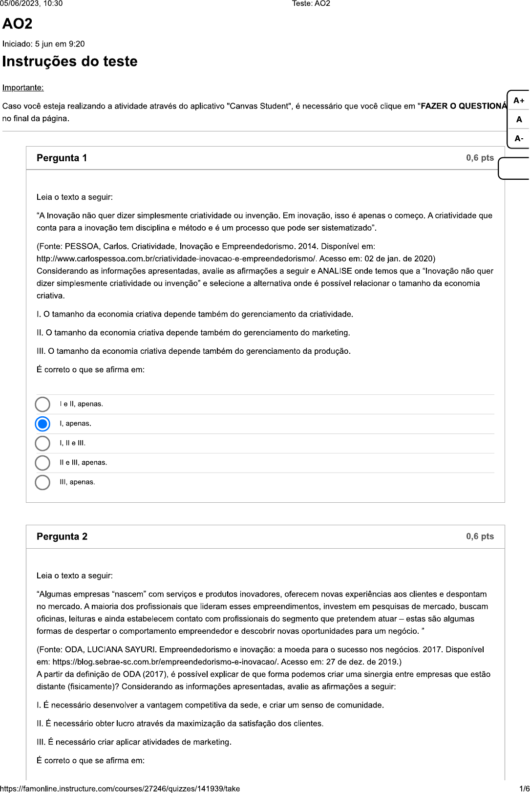AO2 INOVAÇÃO E ECONOMIA CRIATIVA NOTA 6 0 FAM
