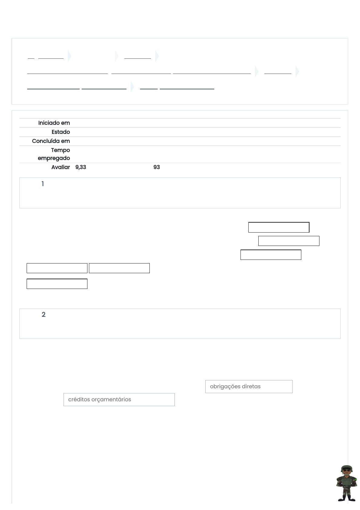 Página inicial Meus cursos IEFEx - SEF 2023 - IEFEx - SEF - ESFC - Estágio Setorial de Fiscalização de Contrato - 1º Semestre ESFC 2023 MÓDULO I - LEGISLAÇÃO E CONCEITOS Avaliação Somativa - Mód I Iniciado em quinta, 1 jun 2023, 14:13 Estado Finalizada Concluída em quinta, 1 jun 2023, 15:06 Tempo empregado 52 minutos 57 segundos Avaliar 9,33 de um máximo de 10,00(93%) Questão 1 Correto Atingiu 1,00 de 1,00 Questão 2 Correto Atingiu 1,00 de 1,00 O órgão normatizador de contratos dentro do Poder Executivo Federal é a/o SEGES/PDG/MinEcon. No Comando do Exército, o órgão normatizador de Licitações e Contratos é a/o SEF O órgão com o encargo de dar pareceres jurídicos sobre o assunto é a/o AGU/CJU CCIEx CGU TCU Selecione a resposta correta conforme opções. Conforme a Constituição Federal de 1988: São vedados ... a realização de despesas ou a assunção de que excedam os ou adicionais. Os créditos especiais e extraordinários terão vigência no exercício financeiro em que forem autorizados, salvo se o ato de autorização for promulgado nos últimos quatro meses daquele exercício, caso em que, reabertos nos limites de seus saldos, serão incorporados ao orçamento do exercício financeiro subsequente. obrigações diretas créditos orçamentários https://ebaula.eb.mil.br/ https://ebaula.eb.mil.br/course/index.php?categoryid=146 https://ebaula.eb.mil.br/course/index.php?categoryid=1660 https://ebaula.eb.mil.br/course/view.php?id=7998 https://ebaula.eb.mil.br/course/view.php?id=7998#section-2 https://ebaula.eb.mil.br/mod/quiz/view.php?id=308696 Questão 3 Correto Atingiu 1,00 de 1,00 Questão 4 Correto Atingiu 1,00 de 1,00 Marque a opção que Não é uma cláusula necessária em todo contrato administrativo, de acordo com a Lei 14.133/2021. Escolha uma opção: a. as garantias oferecidas para assegurar sua plena execução, quando exigidas, inclusive as que forem oferecidas pelo contratado no caso de antecipação de valores a título de pagamento b. o prazo de garantia mínima do objeto, observados os prazos máximos estabelecidos neste decreto e nas normas técnicas.aplicáveis, e as condições de manutenção e assistência técnica, quando for o caso c. o regime de execução ou a forma de fornecimento d. a matriz de risco, quando for o caso e. os prazos de início das etapas de execução, conclusão, entrega, observação e recebimento definitivo, quando for o caso Órgão normatizador de contratos dentro do Poder Executivo Federal é ... a. CGU b. CGCFEx / CCIEx c. TCU d. SEGES/PDG/MinEcon e. Ministério da Defesa Questão 5 Correto Atingiu 1,00 de 1,00 Questão 6 Correto Atingiu 1,00 de 1,00 Questão 7 Correto Atingiu 1,00 de 1,00 Marque a opção CORRETA, acerca da divulgação no Portal Nacional de Contratações Públicas (PNCP) é condição indispensável para a eficácia do contrato e de seus aditamentos e deverá ocorrer nos seguintes prazos, contados da data de sua assinatura: Escolha uma opção: a. 20 (vinte) dias, no caso de licitação b. 10 (dez) dias, no caso de contratação direta c. No caso de Obras, em até 25 (vinte e cinco) dias após a assinatura do contrato d. 20 (vinte) dias úteis, no caso de licitação e. No caso de Obras, em até 45 (quarenta e cinco) dias úteis após a assinatura do contrato Conforme a Lei 14.133/2021, na execução indireta de obras e serviços de engenharia, são admitidos os seguintes regimes, EXCETO. Escolha uma opção: a. Empreitada por preço global b. Empreitada integral c. Contratação integral d. Contratação semi-integrada e. Contratação integrada Marque a opção que Não é uma cláusula necessária em todo contrato administrativo, de acordo com a Lei 14.133/2021. a. o regime de execução ou a forma de fornecimento; b. o prazo de garantia mínima do objeto, observados os prazos máximos estabelecidos neste decreto e nas normas técnicas aplicáveis, e as condições de manutenção e assistência técnica, quando for o caso; c. as garantias oferecidas para assegurar sua plena execução, quando exigidas, inclusive as que forem oferecidas pelo contratado no caso de antecipação de valores a título de pagamento; d. os prazos de início das etapas de execução, conclusão, entrega, observação e recebimento definitivo, quando for o caso; e. a matriz de risco, quando for o caso; Questão 8 Correto Atingiu 1,00 de 1,00 Questão 9 Correto Atingiu 1,00 de 1,00 Marque a(s) alternativas corretas. Qual(is) situações o instrumento de contrato (Termo de Contrato), segundo a Lei 8.666 e IN 5/2017-SEGES é obrigatório? Escolha uma ou mais: a. O valor da contratação por licitação, dispensa ou inexigibilidade superar o previsto para a modalidade convite. b. Sempre que o edital contiver um modelo de Termo de Contrato c. É obrigatório o "termo de contrato" independentemente de seu valor, nos casos de contratação diferente compra com entrega imediata e integral dos bens adquiridos. d. Nos casos de compra com entrega imediata e integral dos bens adquiridos, dos quais resultem obrigações futuras, inclusive assistência técnica. e. Concorrência, Tomada de Preços, Convite, Pregão e RDC. Nos contratos administrativos existem as tais cláusulas exorbitantes, que estabelecem poderes diferenciados para a Administração em relação ao contratado, destacam-se, EXCETO: Escolha uma opção: a. Alteração unilateral b. Fiscalização c. Anulação d. Renovação contratual e. Rescisão unilateral Questão 10 Parcialmente correto Atingiu 0,33 de 1,00 Pessoa jurídica integrante da Administração Pública responsável pela contratação Contratante Documento necessário para a contratação de bens e serviços Projeto Peça técnica com todos os subsídios necessários à elaboração do projeto básico Termo de referência Anteprojeto Projeto básico Contratado Atividade anterior ◄ Caça Palavras Seguir para... Próxima atividade Vídeo - MÓDULO II ► https://ebaula.eb.mil.br/mod/game/vi