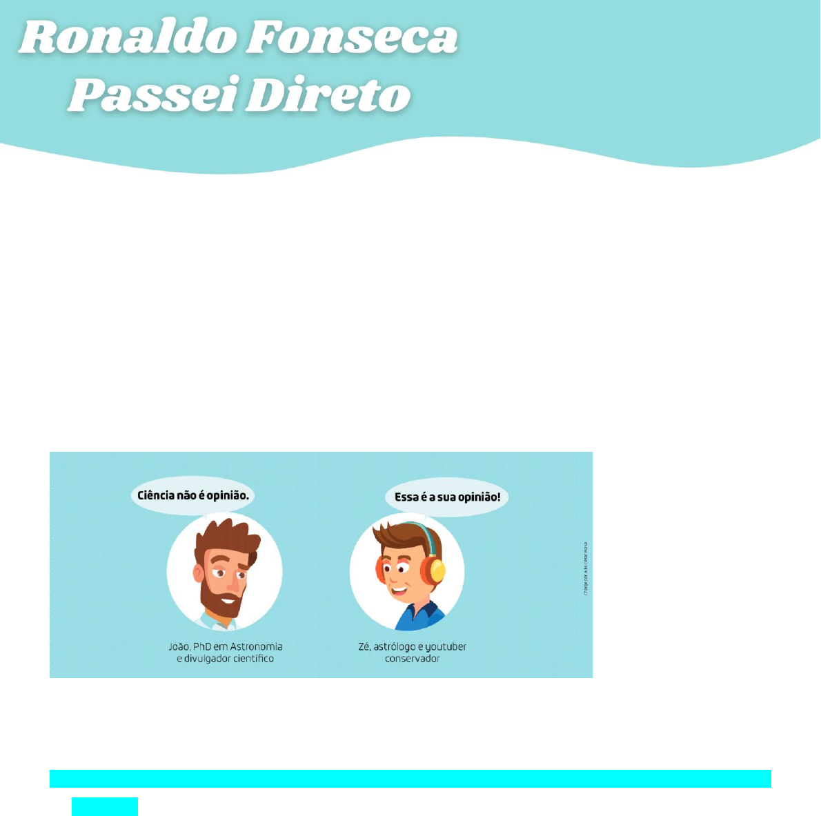 AVALIAÇÃO PRESENCIAL METODOLOGIA DO TRABALHO ACADÊMICO UNIP 2023 Questões de múltipla escolha Questão 1: Analise a charge a seguir: Fonte:https://miro.medium.com/max/5680/1*VVGMeUcELM6KXlNtaFPwWg.png;acesso em: 03 dez. 2019. A respeito da charge, podemos afirmar que: A) Ela mostra os conflitos existentes entre o contexto do senso comum e o contexto do conhecimento científico. B) Ela busca defender a ideia de que não há opiniões, mas somente as certezas produzidas pela ciência. C) Ela insinua que devem ser levadas em conta apenas as opiniões dos cientistas. D) Ela mostra que pessoas que fazem uso constante da internet não acreditam na ciência. E) Ela comprova que a internet não divulga conhecimento científico. Questão 2: No texto abaixo, a ABNT (Associação Brasileira de Normas Técnicas) explica como funcionam os processos de elaboração de normas técnicas. O processo de elaboração de um Documento Técnico ABNT é iniciado a partir de uma demanda, que pode ser apresentada por qualquer pessoa, empresa, entidade ou organismo regulamentador, que estejam envolvidos com o assunto a ser normalizado. A pertinência da demanda é analisada pela ABNT e, sendo viável, o assunto é levado ao Comitê Técnico correspondente para inserção em seu Programa de Normalização Setorial (PNS). Caso não exista Comitê Técnico relacionado ao assunto, a ABNT propõe a criação de um novo Comitê Técnico, que pode ser um Comitê Brasileiro ( ABNT/CB ), um Organismo de Normalização Setorial (ABNT/ONS) ou uma Comissão de Estudo Especial ( ABNT/ CEE ). O assunto é discutido amplamente pelas Comissões de Estudo, com a participação aberta a qualquer interessado, independentemente de ser ou não associado à ABNT, até atingir consenso, gerando então um Projeto de Norma Disponível em:http://www.abnt.org.br/normalizacao/elaboracao-e-participacao/como- se-elaboram. Acesso em: 3 ago. 2020. Quando do contexto do trabalho acadêmico, e com base no texto acima, podemos afirmar que: I. As regras da ABNT para a elaboração de trabalhos acadêmicos existem em função de demandas existentes na comunidade em relação às formas de realização e publicação de textos acadêmicos. II. As regras da ABNT para a realização e publicação de textos acadêmicos são fruto de debates e consultas à comunidade acadêmica de forma geral, e são definidas a partir do consenso entre os interessados. III. As regras para a inclusão de normas a respeito do trabalho acadêmico são simples, bastando que, para sua vigência, seja realizado um requerimento formal a qualquer instituição ou organismo de normalização. Está correto apenas o que se afirma em: A) I. B) II. C) III. D) I e II. E) I e III. Questão 3: Leia o trecho a seguir. As universidades têm procurado coibir a prática do plágio por meio de uma adequada formação discente e docente e com a oferta de softwares que identificam coincidências de texto publicados na internet (LEME; SILVA, 2010). O trecho acima corresponde a: A) Uma citação direta, com dois autores inseridos. B) Uma citação direta, com dois autores não inseridos. C) Uma citação indireta, com dois autores inseridos. D) Uma citação indireta, com dois autores não inseridos. E) Uma paráfrase, sem autores inseridos. Questão 4: Leia o texto a seguir: São cada vez mais comuns a desconfiança e o desprezo pelo pensamento científico. A proliferação de teorias conspiratórias e o negacionismo em relação a temas como a eficiência das vacinas, a origem do vírus HIV, a forma da Terra, a evolução das espécies ou o aquecimento global são exemplos de como, em alguns grupos, as crenças e convicções pessoais passam a ter mais importância que as evidências apresentadas pelos cientistas. O recente movimento global "anticiência" tenta colocar a ciência em xeque. A ciência também é vítima das fake news, informações falsas divulgadas como se fossem notícias verdadeiras. Informações falsas sempre existiram. Mas com a internet, elas passaram a ser compartilhem uma velocidade, ritmo e escala nunca antes visto. Plataformas como Facebook, Twitter e WhatsApp favorecem a replicação de boatos e mentiras. Disponível em:https://educacao.uol.com.br/noticias/2019/12/06/teorias- conspiratorias-e-pos-verdade-como-a-ciencia-esta- sendo-atacada.htm. Acesso em: 3 ago. 2020. Segundo o texto: I. As plataformas digitais têm sido responsáveis pela desmistificação da ciência e da comunidade científica, movimento que enriquece o debate com novas evidências e com a defesa de novos protagonistas no desenvolvimento de teorias. II. A pressão de determinados grupos sociais tem agido no sentido de desacreditar a ciência, ignorando evidências e resultados aceitos de forma consensual pela comunidade científica. III. As plataformas digitais têm sido utilizadas pelos grupos que pretendem desacreditar a ciência, funcionando como veículo para a disseminação de boatos e mentiras. Está correto apenas o que se afirma em: A) III. B) II. C) I. D) I e II. E) II e III. Questão 5: (ENEM 2012, com modificações) TEXTO I Experimentei algumas vezes que os sentidos eram enganosos, e é de prudência nunca se fiar inteiramente em quem já nos enganou uma vez. DESCARTES, R. Meditações Metafísicas. São Paulo: Abril Cultural, 1979. TEXTO II Sempre que alimentarmos alguma suspeita de que uma ideia esteja sendo empregada sem nenhum significado, precisaremos apenas indagar: de que impressão deriva esta suposta ideia? E se for impossível atribuir-lhe qualquer impressão sensorial, isso servirá para confirmar nossa suspeita. HUME, D. Uma investigação sobre o entendimento. São Paulo: Unesp, 2004 (adaptado). Nos textos, ambos os autores se posicionam sobre a natureza do conhecimento humano. A comparação dos excertos permite assumir que Descartes e Hume: A) Defendem os sentidos como critério originário para considerar um conhecimento legítimo. B) Entendem que é desnecess