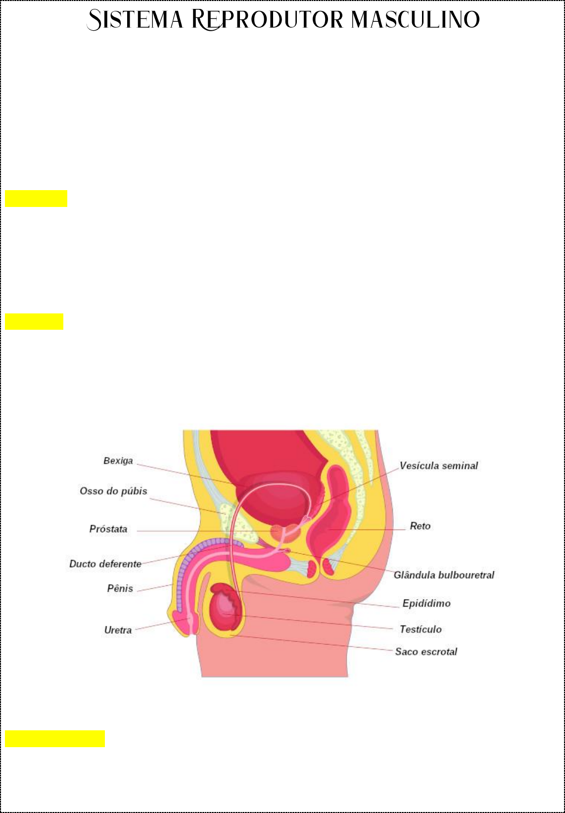 "O sistema reprodutor masculino garante a produção dos espermatozoides e a transferência desses gametas para o corpo da fêmea. Ele é formado por órgãos externos e internos. O pênis e o saco escrotal são os chamados órgãos reprodutivos externos do homem, enquanto os testículos, os epidídimos, os ductos deferentes, os ductos ejaculatórios, a uretra, as vesículas seminais, a próstata e as glândulas bulbouretrais são órgãos reprodutivos internos. Testículos: são as gônadas masculinas e estão localizados dentro do saco escrotal, também conhecido como escroto. Eles são formados por vários tubos enrolados chamados de túbulos seminíferos, nos quais os espermatozoides serão produzidos. Além de produzir os gametas, é nos testículos que ocorre a produção da testosterona, hormônio relacionado, entre outras funções, com a diferenciação sexual e a espermatogênese. Epidídimo: após saírem dos túbulos seminíferos, os espermatozoides seguem para o epidídimo, formado por tubos espiralados. Nesse local os espermatozoides adquirem maturidade e tornam- se móveis." "Ducto deferente: no momento da ejaculação, os espermatozoides seguem do epidídimo para o ducto deferente. Esse ducto encontra o ducto da vesícula seminal e passa a ser chamado de ducto ejaculatório, o qual se abre na uretra. Uretra: é o ducto que se abre para o meio externo. Ela percorre todo o pênis e serve de local de passagem para o sêmen e para a urina, sendo, portanto, um canal comum ao sistema urinário e reprodutor. Vesículas seminais: no corpo masculino observa-se a presença de duas vesículas seminais, as quais formam secreções que compõem cerca de 60% do volume do sêmen. Essa secreção apresenta várias substâncias, incluindo frutose, que serve de fonte de energia para o espermatozoide. Próstata: secreta um fluido que também compõe o sêmen. Essa secreção contém enzimas anticoaguladoras e nutrientes para o espermatozoide. Glândulas bulbouretrais: no corpo masculino observa-se a presença de duas glândulas bulbouretrais. Elas são responsáveis por secretar um muco claro que neutraliza a uretra, retirando resíduos de urina que possam ali estar presentes. Pênis: é o órgão responsável pela cópula. Ele é formado por tecido erétil que se enche de sangue no momento da excitação sexual. Além do tecido erétil, no pênis é possível observar a passagem da uretra, pela qual o sêmen passará durante a ejaculação." O aparelho reprodutor masculino ou sistema genital masculino é o sistema responsável pela produção dos gametas masculinos, tal como a maturação e introdução destes no aparelho reprodutor feminino. Como processos fisiológicos relacionadas a essas funções, há a produção de hormônios e do sêmen. Os testículos produzem milhões de espermatozoides, que depois vão para o epidídimo para amadurecer. Em seguida, eles se deslocam através de um tubo comprido denominado canal deferente, para depois passarem pela uretra e saírem pelo pênis. O sistema reprodutor, também chamado de genital, garante a reprodução. Nesse sistema, encontramos estruturas que produzem os gametas, especializadas em garantir a cópula e, no caso do sistema reprodutor feminino, o órgão em que é gerado o bebê. O escroto é simplesmente um saco cutâneo que contém os testículos e as partes inferiores do cordão espermático. Ele é importante pois permite que os testículos se posicionem externamente ao corpo. Como e onde o sêmen é produzido? A gravidez acontece a partir da fecundação, o encontro entre o óvulo e o espermatozoide. No caso dos homens, para chegar até eles, os espermatozoides fazem esse trajeto submersos em um líquido, o sêmen. Também chamado de esperma, a sua qualidade e volume são parâmetros fundamentais para analisarmos a fertilidade masculina. Ele é formado por diversas substâncias, cada uma produzida por um órgão diferente. Desse modo, a presença de uma alteração no sêmen pode indicar algum problema no sistema reprodutor masculino. O sêmen é feito no sistema reprodutor masculino, sendo cada parte dele produzido por um órgão diferente. Os espermatozoides são fabricados nos testículos e, para facilitar o seu transporte, imersos no líquido seminal. As vesículas seminais, a próstata e as glândulas bulbouretrais são as responsáveis por secretar os fluidos que o compõe. A seguir, vamos detalhar todo o processo de produção do sêmen e dos espermatozoides, a partir de cada órgão. Testículos A produção dos gametas masculinos ocorre nos testículos e é chamada de espermatogênese. Os espermatozoides são as células reprodutivas dos homens, responsáveis por fecundar o óvulo e transmitir o material genético de origem paterna para o embrião. Os gametas masculinos são formados por 2 partes: a cabeça e a cauda. O material genético fica armazenado na cabeça, enquanto a cauda auxilia na locomoção do espermatozoide até o óvulo. A produção dos espermatozoides começa na puberdade e continua por toda a vida do homem. Os testículos são formados por vários túbulos seminíferos, local onde os gametas são produzidos. Em seguida, eles são encaminhados para os epidídimos. Apesar de ser apenas uma fração do sêmen normal, um mililitro de esperma possui entre 15 e 500 milhões de espermatozoides. Epidídimos Os epidídimos são compostos por 2 tubos estreitos que conectam os testículos aos canais deferentes. Os espermatozoides produzidos nos testículos seguem para os epidídimos para serem armazenados e finalizarem o seu processo de amadurecimento. Durante esse período, eles ganham mobilidade para terem mais chances de fecundar o óvulo. Todo o processo da espermatogênese dura cerca de 64 dias nos testículos e mais 12 dias nos epidídimos para concluir o amadurecimento dos gametas. Eles ficam nos epidídimos até o homem ser estimulado sexualmente e, com os líquidos seminais, formam o sêmen, que é elim