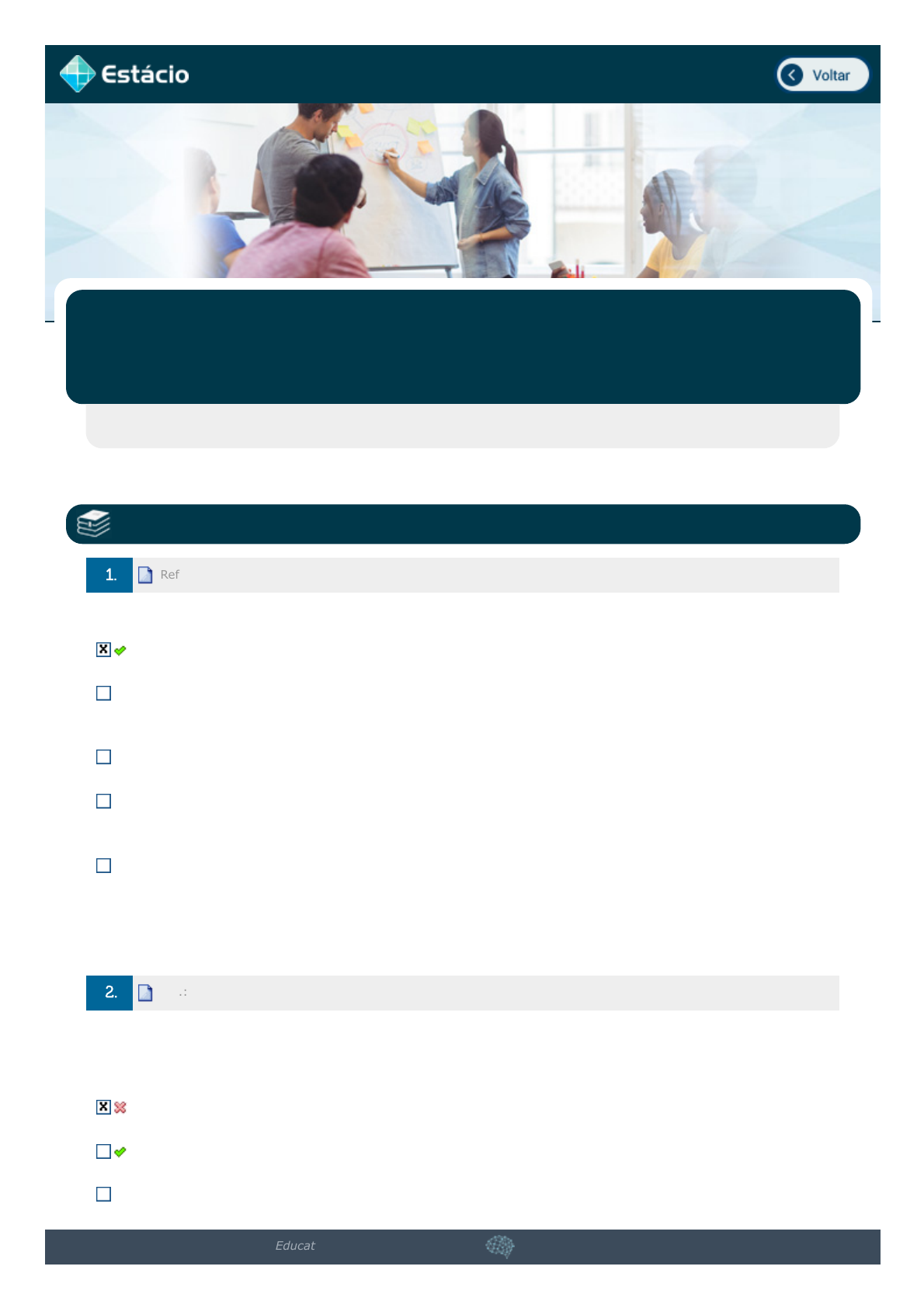 22/11/2022 05:18 EPS https://simulado.estacio.br/alunos/ 1/4 VANESSA SOARES COELHO 202002727314 Disciplina: GERENCIAMENTO DE PROJETOS AV Aluno: VANESSA SOARES COELHO 202002727314 Professor: GABRIEL RECH BAU Turma: 9001 DGT0031_AV_202002727314 (AG) 22/11/2022 22:35:40 (F) Avaliação: 8,0 Av. Parcial.: 2,0 Nota SIA: 10,0 pts ENSINEME: ANÁLISE DE RISCOS E QUALIDADE 1. Ref.: 3990497 Pontos: 1,00 / 1,00 Quando falamos do processo de Lições Aprendidas, é correto dizer que: As Lições Aprendidas devem ser registradas ao longo do desenvolvimento do Projeto. Quando falamos em Lição Aprendida, devemos tratar unicamente dos Problemas ocorridos seguindo-se uma reflexão sobre como faremos diferente para que não volte a ocorrer em novos Projetos. As Lições devem ser registradas a partir da assinatura do Contrato, pois é deste momento em diante que os problemas começam a ocorrer. O Processo de Lições Aprendidas deve ter a participação exclusiva do pessoal que trabalha na área da qualidade da empresa, pois são eles que têm contato com as não conformidades. Por se tratar de algo que precisa reunir tudo o que foi aprendido ao longo do Projeto, é importante que as Lições sejam coletadas apenas quando houver certeza de que houve a conclusão do Projeto. 2. Ref.: 3990492 Pontos: 0,00 / 1,00 Na área da Qualidade, há conceitos importantes tais como Não Conformidade, Ação Preventiva e Ação Corretiva, então com base no que foi apresentado, é correto dizer que: As ações preventivas tratam de problemas reais, que podem trazer prejuízo ao projeto, por isto é importante identificar as suas causas raízes. A Não Conformidade é exatamente o não atendimento a um requisito estabelecido por especificação, norma, regulamento ou outro que regule a atividade. Uma Não Conformidade deve ser sempre tratada por meio de uma Ação Corretiva pois assim será eliminado o Risco de que venha a se materializar. Ações Corretivas e Preventivas só devem ser aplicadas caso haja a reprovação deEducational Performace Solution EPS ® - Alunos javascript:voltar(); javascript:alert('C%C3%B3digo da quest%C3%A3o: 3990497.'); javascript:alert('C%C3%B3digo da quest%C3%A3o: 3990492.'); javascript:alert('Educational Performace Solution\n\nEPS: M%C3%B3dulo do Aluno\n\nAxiom Consultoria em Tecnologia da Informa%C3%A7%C3%A3o Ltda.') 22/11/2022 05:18 EPS https://simulado.estacio.br/alunos/ 2/4 um item pelo Cliente. Do contrário, não há necessidade, pois erros fazem parte da rotina de execução. As Não conformidades, em geral, são apontadas indevidamente com base em uma interpretação equivocada por parte do Cliente. ENSINEME: GERENCIAMENTO DE CUSTOS E EQUIPE EM PROJETOS 3. Ref.: 3991066 Pontos: 1,00 / 1,00 Qual das opções abaixo não deve ser incluída no orçamento do projeto? Custos diretos. Custos fixos. Custos afundados. Custos de mão-de-obra. Custos variáveis. 4. Ref.: 3991059 Pontos: 1,00 / 1,00 O que são informações restritas? São informações acessadas apenas por alguns fornecedores da organização. São informações que são divulgadas nas mídias (TV e Internet). São informações que não precisam ser protegidas. São informações que somente podem ser acessadas dentro da organização. São informações que são destinadas a um grupo específico dentro da organização. ENSINEME: ORGANIZANDO O PROJETO NO TEMPO 5. Ref.: 3990913 Pontos: 1,00 / 1,00 Seu projeto tem uma atividade que consiste em colocar os móveis em um novo escritório. Esta atividade depende da pintura das paredes e desse modo a colocação dos móveis é uma atividade sucessora à pintura das paredes, no diagrama de rede do projeto. Ocorre, porém, que os móveis somente poderão ser colocados depois que a tinta das paredes esteja completamente seca, o que ocorrerá três dias após o término da atividade de pintura das paredes. Que modificação no relacionamento lógico está ocorrendo neste caso? Antecipação ou avanço, visando adiantar a atividade predecessora Gold plating Folga Flutuação Atraso, visando retardar a atividade sucessora 6. Ref.: 3990909 Pontos: 1,00 / 1,00 Educational Performace Solution EPS ® - Alunos javascript:alert('C%C3%B3digo da quest%C3%A3o: 3991066.'); javascript:alert('C%C3%B3digo da quest%C3%A3o: 3991059.'); javascript:alert('C%C3%B3digo da quest%C3%A3o: 3990913.'); javascript:alert('C%C3%B3digo da quest%C3%A3o: 3990909.'); javascript:alert('Educational Performace Solution\n\nEPS: M%C3%B3dulo do Aluno\n\nAxiom Consultoria em Tecnologia da Informa%C3%A7%C3%A3o Ltda.') 22/11/2022 05:18 EPS https://simulado.estacio.br/alunos/ 3/4 Assinale a alternativa que indica apenas atividades imprescindíveis para a definição do escopo em um projeto. Sequenciar as atividades e estimar os custos. Levantar requisitos e criar uma EAP. Desenvolver um cronograma e planejar a qualidade. Planejar os recursos humanos e planejar a duração das atividades. Estabelecer as formas de comunicação e estabelecer as atividades. ENSINEME: PROJETO ÁGIL 7. Ref.: 3990983 Pontos: 0,00 / 1,00 Selecione a sentença que não representa um valor do manifesto ágil. Siga seu plano à risca e defina um processo que não acate mudanças Em detrimento de muita documentação entregue software funcionando. Priorize a relação com seu cliente ao invés de recorrer constantemente ao contrato. O processo não é mais importante que as pessoas e suas relações. Indivíduos e interações mais que processos e ferramentas 8. Ref.: 3990977 Pontos: 1,00 / 1,00 Ao adicionarmos um membro em um time de desenvolvimento de 7 pessoas teremos quantos canais de comunicação. 28 15 56 16 30 ENSINEME: PROJETO E A ORGANIZAÇÃO 9. Ref.: 3990652 Pontos: 1,00 / 1,00 O PMI também disponibiliza o Código de Ética e Conduta Profissional, que incluir padrões de comportamentos desejáveis e/ou obrigatórios, que norteiam o gerente de projetos. Dentre os valores mais importantes que foram definidos, temos: Responsabilidade, moral, 
