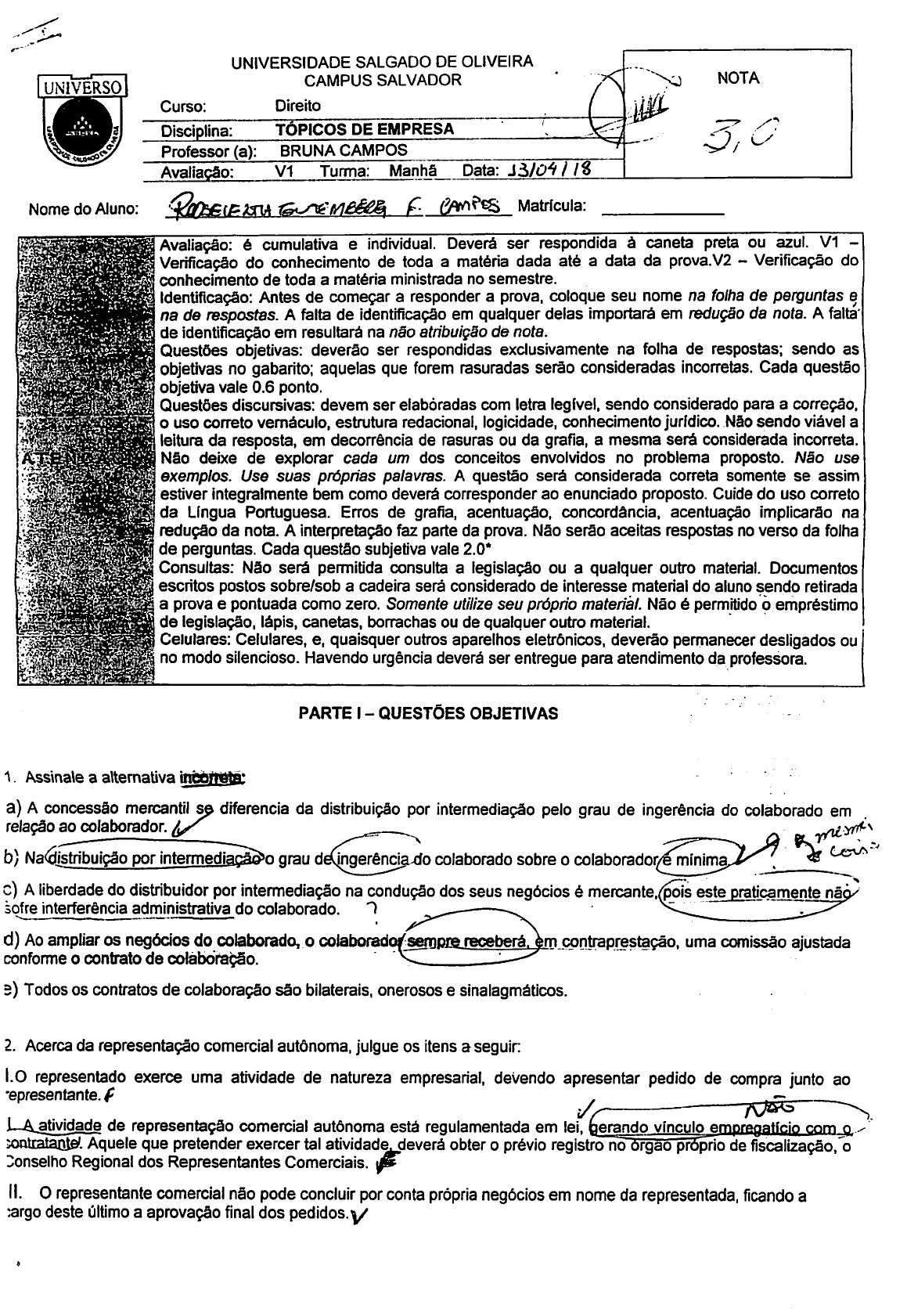 c.id<-ir,i scrí considerado de Intcreste material do aluno sendo reíi'ada a prova c pontuada como acro. Somente utilize seu