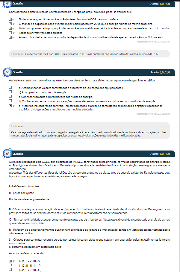 Todas as energias não renováveis são forte emissoras de CO2 para a atmosfera. Etanol e bagaço de cana tiveram maior participação em 2016 que a energia nuclear na matriz brasileira. Há uma supremacia da proporção das renováveis na matriz energética brasileira comparativamente ao resto do mundo. Todas as afirmativas estão erradas. A matriz brasileira demonstra uma forte dependência dos combustíveis fósseis apesar da redução nos últimos anos. a) Apenas a afirmativa 1 está correta. b) Apenas a afirmativa 2 está correta. c) Apenas a afirmativa 5 está correta. d) As afirmativas 1, 2 e 5 estão corretas. e) Nenhuma das afirmativas está correta.