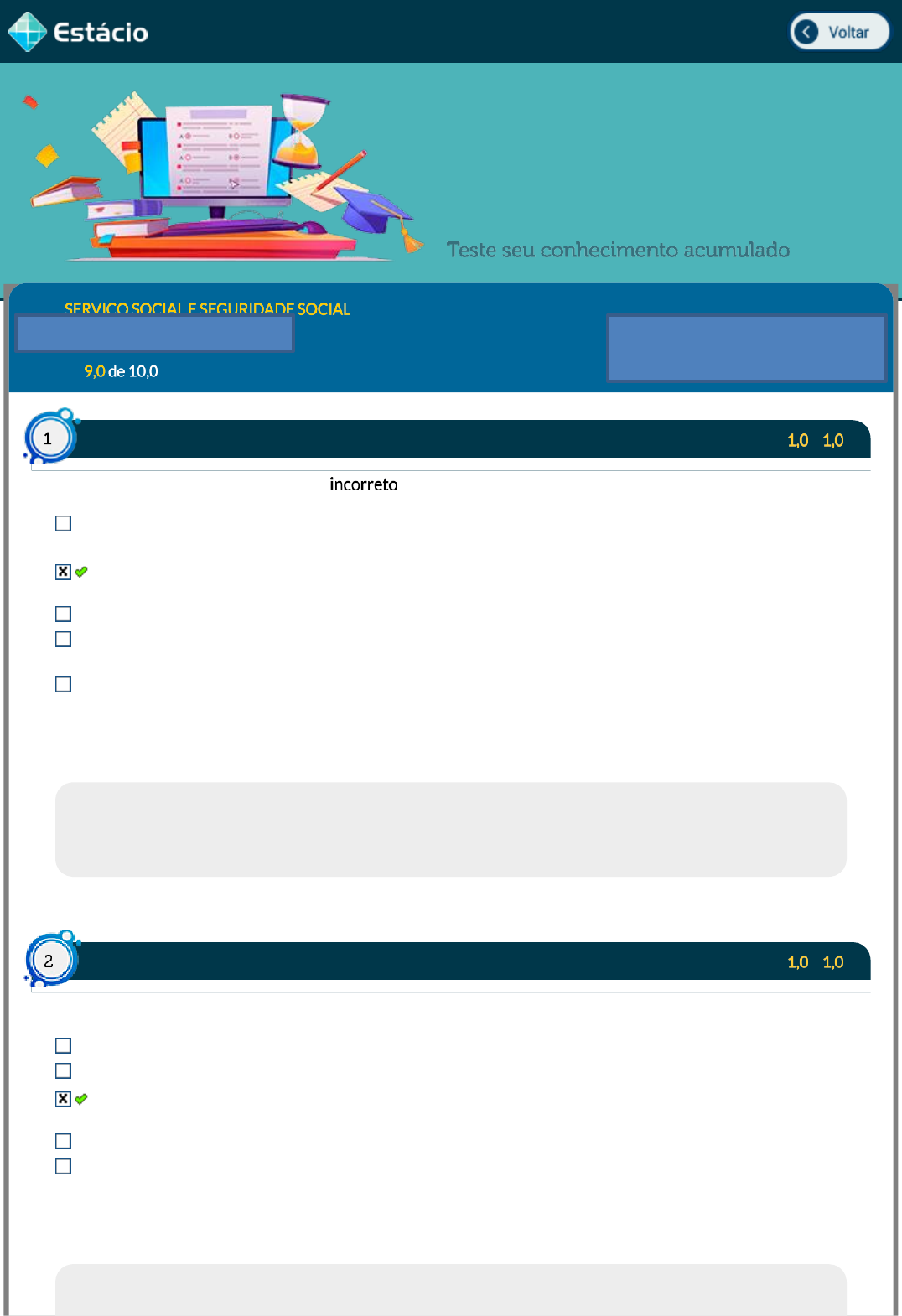 Teste seu conhecimento acumulado Disc.: SERVIÇO SOCIAL E SEGURIDADE SOCIAL Aluno(a): TELVANA MENDES PINTO 202108673341 Acertos: 9,0 de 10,0 07/06/2023 1 a Questão Acerto: 1,0 / 1,0 Com relação ao contrato de trabalho é incorreto dizer que: o contrato por prazo determinado pode ter no máximo 1 renovação dentro de seu prazo máximo de validade. silente o contrato quanto ao prazo de duração, será considerado como por prazo determinado e limitado a 2 anos. silente o contrato quanto ao prazo de duração, será considerado como por prazo indeterminado. o contrato por prazo determinado em regra estabelece como prazo limite 2 anos, salvo outras hipóteses que apresentem prazo mais reduzido, como o contrato de experiência ou o contrato temporário. com base no princípio da continuidade da relação de emprego, os contratos de trabalho têm como regra a duração por tempo indeterminado, salvo quando há prova ou cláusula contratual em contrário. Respondido em 07/06/2023 18:45:49 Explicação: A resposta correta é: silente o contrato quanto ao prazo de duração, será considerado como por prazo determinado e limitado a 2 anos. 2 a Questão Acerto: 1,0 / 1,0 Com relação ao contrato de trabalho temporário previsto na Lei nº 6.019/74: Tem como prazo máximo 2 anos, podendo ser renovado somente uma vez dentro desse mesmo prazo. É contrato para se trabalhar em temporada de safra. É contrato que envolve uma empresa tomadora, uma empresa prestadora de mão de obra e o empregado, vinculado diretamente a esta última. É sinônimo de contrato por prazo determinado. O trabalhador tem a sua CTPS assinada pela empresa tomadora (contratante) e não pela empresa prestadora de mão de obra temporária (contratada). Respondido em 07/06/2023 18:47:54 Explicação: Meus Simulados A resposta correta é: É contrato que envolve uma empresa tomadora, uma empresa prestadora de mão de obra e o empregado, vinculado diretamente a esta última. 3 a Questão Acerto: 1,0 / 1,0 Assinale a alternativa que apresenta uma possibilidade correta no caso de o trabalhador sofrer redução da sua capacidade de trabalho em razão de acidente de trabalho. poderá receber a pensão pela redução da capacidade laborativa, outro benefício de natureza previdenciária, mas jamais receber em conjunto indenização por danos morais. terá de escolher entre receber pensão pela redução da capacidade laborativa, indenização por danos morais ou benefício previdenciário. terá indenização apenas pela redução da capacidade laborativa, kcando excluídas as indenizações por dano estético e dano psicológico quando esses ocorrerem. poderá receber indenização por danos morais, pensão em razão do prejuízo material caso a redução seja permanente e ainda acumular com benefícios previdenciários. poderá receber pensão pela redução de sua capacidade laborativa, indenização por danos morais, mas somente se não receber outro benefício de qualquer natureza. Respondido em 07/06/2023 18:48:34 Explicação: A resposta correta é: poderá receber indenização por danos morais, pensão em razão do prejuízo material caso a redução seja permanente e ainda acumular com benefícios previdenciários. 4 a Questão Acerto: 1,0 / 1,0 Assinale a alternativa incorreta: O entendimento dominante é o de que o adicional de insalubridade não pode ser recebido conjuntamente com o adicional de periculosidade, ainda que o trabalhador esteja exposto a riscos que ensejem o pagamento de ambos. A multa de 40% dos depósitos do FGTS é devida quando ocorre despedida do empregado por justa causa. O valor a ser recolhido pelo empregador para a conta vinculada do empregado é de 8% das parcelas remuneratórias. O terço de férias deve ser pago até 2 dias antes do gozo das férias. Férias devem ser gozadas em até 12 meses após a aquisição de seu direito, que se dá após 12 meses de trabalho. Respondido em 07/06/2023 18:50:03 Explicação: A resposta correta é: A multa de 40% dos depósitos do FGTS é devida quando ocorre despedida do empregado por justa causa. 5 a Questão Acerto: 1,0 / 1,0 Com relação ao não pagamento das férias, o entendimento predominante na jurisprudência do TST é o de que: Gera ao trabalhador o direito de receber em dobro, excluído o terço constitucional. Não é devido se o empregado renunciar ao mesmo para acumular e gozar no período concessivo seguinte. Não gera ao trabalhador o direito de receber em dobro, mas garante o terço constitucional. Gera ao trabalhador o direito de receber em dobro, inclusive o terço constitucional. Não implica em sanção além do pagamento das férias, pois o empregado não foi impedido de gozá-las. Respondido em 07/06/2023 18:53:40 Explicação: A resposta correta é: Gera ao trabalhador o direito de receber em dobro, inclusive o terço constitucional. 6 a Questão Acerto: 1,0 / 1,0 Sobre o conceito de adicional de insalubridade e adicional de periculosidade, é incorreto akrmar: Adicional de insalubridade visa indenizar o trabalhador da exposição a agentes químicos, físicos e biológicos em níveis nocivos à saúde. Ainda que tais adicionais tenham por objetivo indenizar os empregados pelas condições de trabalho, possuem natureza salarial, se incorporando ao mesmo. Entendimento predominante é o de que não podem ser recebidos acumuladamente. Como têm por objetivo indenizar os trabalhadores, não possuem natureza salarial e não se incorporam ao salário para nenhuma knalidade. Adicional de periculosidade visa indenizar o trabalhador da exposição a agentes explosivos, inflamáveis ou à eletricidade. Respondido em 07/06/2023 18:55:24 Explicação: A resposta correta é: Como têm por objetivo indenizar os trabalhadores, não possuem natureza salarial e não se incorporam ao salário para nenhuma knalidade. 7 a Questão Acerto: 0,0 / 1,0 Não é segurado obrigatório do Regime Geral de Previdência Social: Trabalhador avulso. Dona de casa de 