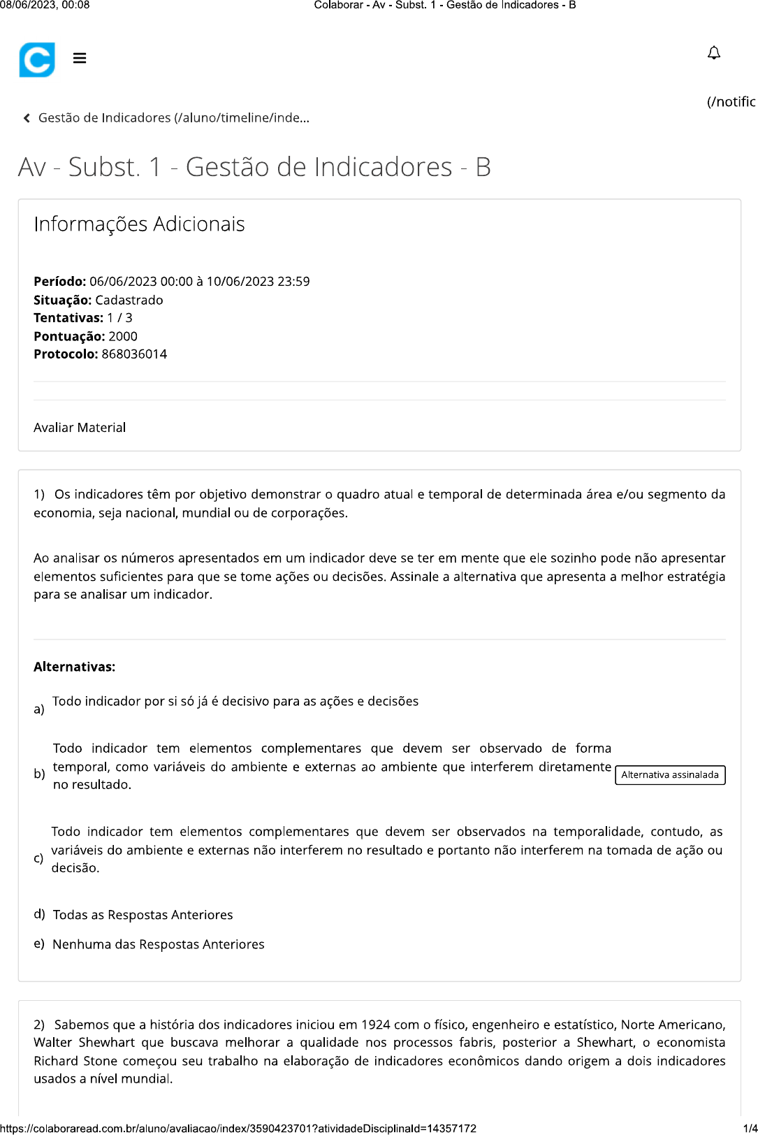 Área do Alu... Minhas aval... Área do Alu... AvaliA JP Virtual Prova Regimental A1 - 2025/2 (2° evento) + Curso: CST EM BANCO DE DADOS (61) Discipl...