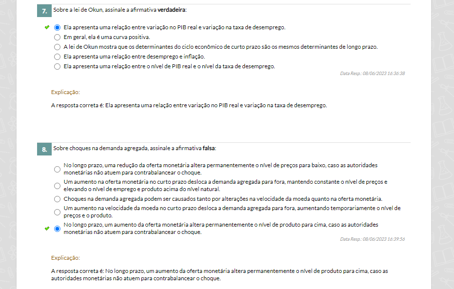 No longo prazo, uma redução da oferta monetária altera permanentemente nível de preços para caso as autoridades monetárias não atuem para contrabalancear choque. Um aumento na oferta monetária no curto prazo desloca a demanda agregada para mantendo constante o nível de preços e elevando nível de emprego e produto acima do nível natural. Choques na demanda agregada podem ser causados tanto por alterações na velocidade da moeda quanto na oferta. Um aumento na velocidade da moeda no curto prazo desloca a demanda agregada para aumentando temporariamente nível de preços e o produto. No longo prazo, um aumento da oferta monetária altera permanentemente nível de produto para caso as autoridades monetárias não atuem para contrabalancear o choque. a) A afirmativa I está falsa. b) A afirmativa II está falsa. c) A afirmativa III está falsa. d) A afirmativa IV está falsa. e) A afirmativa V está falsa.
