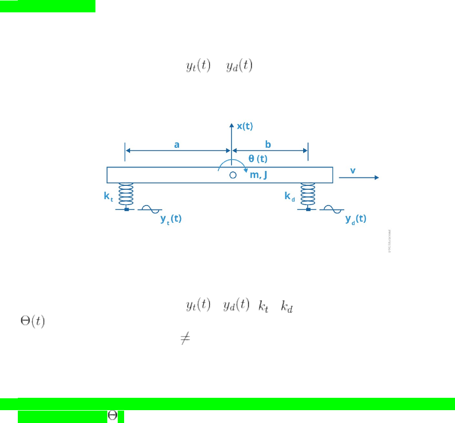 MECÂNICA VIBRATÓRIA – ATIVIDADE 4 JOÃO GABRIEL CERQUEIRA 1 - Alguns sistemas mecânicos dinâmicos, aplicados em várias indústrias, requerem duas coordenadas independentes para descrever seu movimento e são chamados de “sistemas de dois graus de liberdade”. Graus de liberdade podem ou não estar na mesma direção de coordenada. Analise as afirmativas a seguir a respeito das vibrações forçadas com dois graus de liberdade. I. As vibrações livres são aquelas que, diferentemente das vibrações forçadas, possuem momentos ou forças aplicadas para que se iniciem e continuem dentro de um sistema mecânico. II. As forças aplicadas em sistemas mecânicos podem alterar as características das vibrações. Elas podem ter dois ou mais graus de liberdade, de forma a corresponder a parâmetros que possibilitam suas determinações. III. As vibrações forçadas, no que desrespeito às fontes de vibração aplicadas, independentemente da vibração que já ocorre no sistema, são dependentes somente do tempo (t) e não dependem do deslocamento x1, tampouco do deslocamento x2 em sistemas que tenham dois graus de liberdade. IV. Vibração em sistemas com um grau de liberdade é um modelo aplicado para absorvedores dinâmicos de vibração. Com isso, é possível projetar um sistema passivo para isolar parcial ou totalmente a vibração ocorrente no sistema. É correto o que se afirma em: · II e III, apenas. 2 - A imagem a seguir apresenta um carro modelado com dois graus de liberdade. Um grau de liberdade se refere aos movimentos de translação e o outro aos movimentos de rotação. O sistema de suspensão, contemplando molas, coxim, amortecedor e pneus, é representado através de molas equivalentes. As saliências da pista são representadas por e . As molas possuem os mesmos coeficientes de rigidez. Fonte: Adaptada de Rao (2008). #PraCegoVer: a imagem acima representa um veículo plano modelado com dois graus de liberdade. As saliências da pista são representadas por e . e representam os coeficientes de rigidez. representa o ângulo de rotação. V representa o vetor velocidade. a e b representam distâncias e são claramente diferentes a b. RAO, Singiresu S. Vibrações mecânicas. Tradução de Arlete Simille Marques. São Paulo: Pearson Prentice Hall, 2008. · O modelo linear desse carro leva a uma matriz de rigidez que acopla os graus de liberdade de x e . 3 - Uma empresa responsável por análises de vibrações em máquinas, equipamentos e estruturas desenvolveu determinado modelo para estudo do efeito das vibrações em uma turbina. Esse modelo tem seis graus de liberdade, o que constitui um sistema do tipo NGL. Três desses graus de liberdade são de translação e os outros três são de rotação; todos estão acoplados entre si. Considerando a situação descrita, assinale a alternativa que traz a quantidade correta de frequências naturais dessa turbina. · A turbina apresenta seis frequências naturais, sendo que cada uma está associada a um respectivo modo de vibração. 4 - A prevenção e o controle de exposição à vibração aos quais os trabalhadores poderão ser expostos são muito importantes, sendo inclusive tratados em uma Norma Regulamentadora. Porém o controle de vibração não é apenas uma preocupação com a saúde dos trabalhadores mas também uma preocupação com a saúde das máquinas e equipamentos. Sendo assim, as empresas precisam sempre investir em manutenções preditivas a fim de evitar que essas vibrações aumentem o risco de falhas em máquinas e equipamentos. Acerca da prevenção e dos cuidados com as máquinas em relação a parâmetros relacionados à vibração, analise as afirmativas a seguir. I. A severidade indica a gravidade que a vibração poderá ter, causando problemas no sistema. Assim, ela é verificada por meio da velocidade da vibração dada em mm/segundo. Essa velocidade de vibração também é denominada RMS. II. Essa severidade pode ser medida para máquinas que possuem mancais relativamente rígidos e que tenham rolamentos, máquinas que possuem diversas fontes de ruído, como as engrenagens e os compressores, e máquinas que tenham peças que se movimentam de forma alternativa. III. Os transdutores de força são sensores que verificam o deslocamento, a aceleração ou a velocidade. Já os transdutores de movimento são sensores que verificam a carga ou o impacto. IV. A instrumentação é utilizada para a análise e realização de manutenção preditiva, que é feita para prever falhas e erros em equipamentos. Está correto o que se afirma em: · I, II e IV, apenas. 5 - Sistemas NGL são aqueles que precisam de duas ou mais coordenadas para descrever seu movimento. Eles podem ser encontrados em diversas máquinas e equipamentos. Considere um determinado sistema mecânico em vibração modelado como sistema linear de dois graus de liberdade (2GL), um de rotação e outro de translação. Nesse referido sistema, considerando desprezíveis os efeitos dissipativos, suas duas frequências naturais: · são dependentes tanto das massas quanto das rigidezes envolvidas no sistema. 6 - Um engenheiro mecânico especialista em análise de vibração é incumbido de determinar as frequências naturais de um sistema mecânico com três graus de liberdade. O engenheiro, ao realizar a análise, chega à conclusão de que uma das frequências naturais tem valor igual a zero. Diante disso, o engenheiro pode concluir que o resultado dessa frequência natural igual a zero indica que · esse sistema mecânico possui movimento de um corpo do tipo rígido. 7 - Ao realizar um projeto de determinado equipamento mecânico, o engenheiro projetista sabe que tal equipamento estará sujeito a cargas cíclicas. Essas cargas podem levar as máquinas, estruturas ou equipamentos materiais à falha mecânica pelo mecanismo denominado fadiga. Assim, o projeto do engenheiro deve contemplar uma forma de se evitar a falha por fadiga. A preven