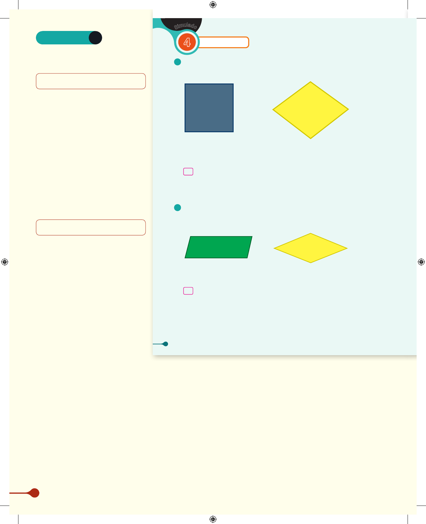 Simulado 1 152 Simulado 4 Questão 1 D4 − Identificar relação entre quadriláteros por meio de suas propriedades. (A) Incorreta. Todos os quadrados têm diago- nais da mesma medida, mas a generalização não vale para os losangos. (B) Correta. Em todo losango as diagonais se cruzam nos respectivos pontos médios e são perpendiculares. (C) Incorreta. Nos quadrados, os 4 ângulos me- dem 90w, porém, nos demais losangos, apenas os ângulos opostos são congruentes, e não to- dos entre si. (D) Incorreta. Os ângulos opostos do quadrado são suplementares, mas não é possível fazer a generalização para o losango, em que os ân- gulos opostos são congruentes, e não necessa- riamente suplementares. Questão 2 D4 − Identificar relação entre quadriláteros por meio de suas propriedades. (A) Correta. Em todo paralelogramo, 2 ângulos consecutivos são sempre suplementares. (B) Incorreta. Em todo paralelogramo, os lados opostos são congruentes. (C) Incorreta. Todo paralelogramo possui 2 dia- gonais que se intersectam em seus respectivos pontos médios. (D) Incorreta. Nem todo losango possui ângu- los opostos suplementares. 153 3 Observe a figura geométrica de um pentágono regular, decomposto em 3 triângulos, cujos ângulos internos formam os ângulos internos no pentágono. E D C BA Pode-se afirmar que cada ângulo de um pentágono regular mede ( A ) 60w. ( B ) 108w. ( C ) 116w. ( D ) 120w. 4 Observe os polígonos regulares e a expressão algébrica que determina o número de diagonais (d) de um polígono em função do seu número de lados (n): Pentágono. Hexágono. Heptágono. Octógono. ( ) d n n 2 3 5 2 Dos polígonos regulares apresentados, o que possui 20 diagonais é o ( A ) octógono. ( B ) heptágono. ( C ) hexágono. ( D ) pentágono. (152_159)_APROVA_9ANO_MAT_SIMULADO4_LA.indd 153 30/09/19 15:05 Lições 13 a 164 Simulado 152 1 Os dois quadriláteros a seguir são losangos, porém somente um deles é um quadrado. Uma propriedade do quadrado comum ao losango é que ( A ) as diagonais têm a mesma medida. ( B ) as diagonais se cruzam nos respectivos pontos médios e são perpen- diculares. ( C ) os ângulos internos são congruentes. ( D ) os ângulos opostos são suplementares. 2 Observe os quadriláteros convexos abaixo, denominados paralelogramos. O primeiro possui lados adjacentes com medidas diferentes, e o segundo, 4 lados com a mesma medida. Qual das opções a seguir apresenta uma propriedade do losango comum a todo paralelogramo? ( A ) A soma das medidas de 2 ângulos consecutivos é 180w. ( B ) Os lados opostos podem apresentar diferenças de medida. ( C ) As diagonais se cruzam fora dos respectivos pontos médios. ( D ) A soma das medidas dos ângulos opostos é 180w. (152_159)_APROVA_9ANO_MAT_SIMULADO4_LA.indd 152 30/09/19 15:05 (152_159)_APROVA_9ANO_MAT_SIMULADO4_GUIA.indd 152 30/09/19 15:08 153 Questão 3 D8 − Resolver problema utilizando proprie- dades dos polígonos (soma de seus ângulos internos, número de diagonais, cálculo da medida de cada ângulo interno nos polígonos regulares). (A) Incorreta. O aluno, ao indicar essa alterna- tiva, demonstra não compreender o comando de resposta e divide 180 por 3, pensando no triângulo equilátero em vez do pentágono. (B) Correta. Sendo a soma dos ângulos internos de cada triângulo igual a 180w, para os 3 triân- gulos temos 540w. O pentágono regular tem 5 ângulos congruentes; assim, cada ângulo mede 5 540 1085 w. (C) Incorreta. O aluno erra o produto de 180 por 3, obtendo 580, mas compreende que o pentágono regular tem 5 ângulos internos con- gruentes, pois faz corretamente 5 580 1165 w. (D) Incorreta. O aluno não realizou as opera- ções de modo correto. Provavelmente, errou em dividir 540 por 5 e obteve 180°, não fazen- do uma análise crítica do resultado. Questão 4 D8 – Resolver problema utilizando proprie- dades dos polígonos (soma de seus ângulos internos, número de diagonais, cálculo da medida de cada ângulo interno nos polígonos regulares). (A) Correta. Fazendo d 5 20, temos que 20 3 2 5 5 n2 2 3n, logo n2 2 3n 2 40 5 0. Resolvendo a equação, encontramos: x’5 8 e x’’ 5 25. Descar- tando o 25, fica apenas o 8, ou seja, o octógono é o polígono com 20 diagonais. (B) Incorreta. O aluno demonstra não com- preender o modelo matemático apresentado. Além disso, pode ter contado apenas 13 dia- gonais e somado com o número de lados do polígono. (C) Incorreta. O aluno demonstra não com- preender o modelo matemático e, provavel- mente, tenta um acerto ao acaso, uma vez que o hexágono tem 9 diagonais. (D) Incorreta. O aluno demonstra não compreen- der o modelo matemático e o que é uma dia- gonal. Considerando que o pentágono possui 5 diagonais, o aluno não conseguiria desenhar 20 diagonais na figura apresentada. 153 3 Observe a figura geométrica de um pentágono regular, decomposto em 3 triângulos, cujos ângulos internos formam os ângulos internos no pentágono. E D C BA Pode-se afirmar que cada ângulo de um pentágono regular mede ( A ) 60w. ( B ) 108w. ( C ) 116w. ( D ) 120w. 4 Observe os polígonos regulares e a expressão algébrica que determina o número de diagonais (d) de um polígono em função do seu número de lados (n): Pentágono. Hexágono. Heptágono. Octógono. ( ) d n n 2 3 5 2 Dos polígonos regulares apresentados, o que possui 20 diagonais é o ( A ) octógono. ( B ) heptágono. ( C ) hexágono. ( D ) pentágono. (152_159)_APROVA_9ANO_MAT_SIMULADO4_LA.indd 153 30/09/19 15:05 Lições 13 a 164 Simulado 152 1 Os dois quadriláteros a seguir são losangos, porém somente um deles é um quadrado. Uma propriedade do quadrado comum ao losango é que ( A ) as diagonais têm a mesma medida. ( B ) as diagonais se cruzam nos respectivos pontos médios e são perpen- diculares. ( C ) os ângulos internos são congruentes. ( D ) os ângulos opostos são suplementares. 2 Observe os quadriláteros convexos abaixo, denominados paralelogramos. O prime
