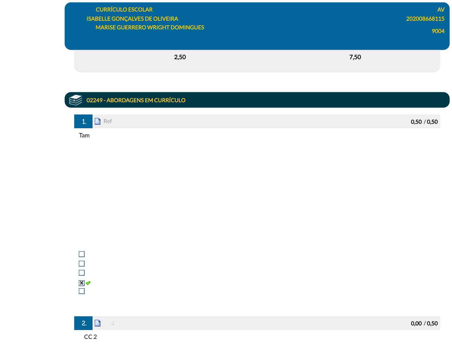 Aluno: ISABELLE GONÇALVES DE OLIVEIRA 202008668115