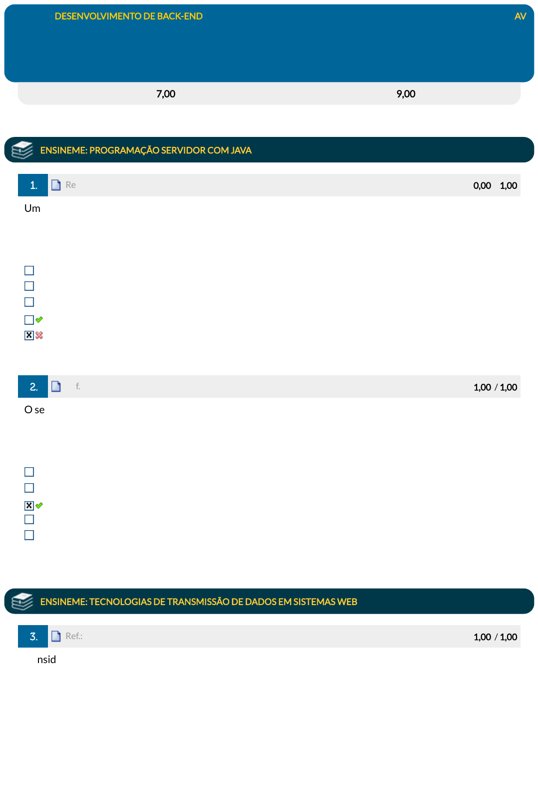 Avaliação: 7,00 pts Nota SIA: 9,00 pts