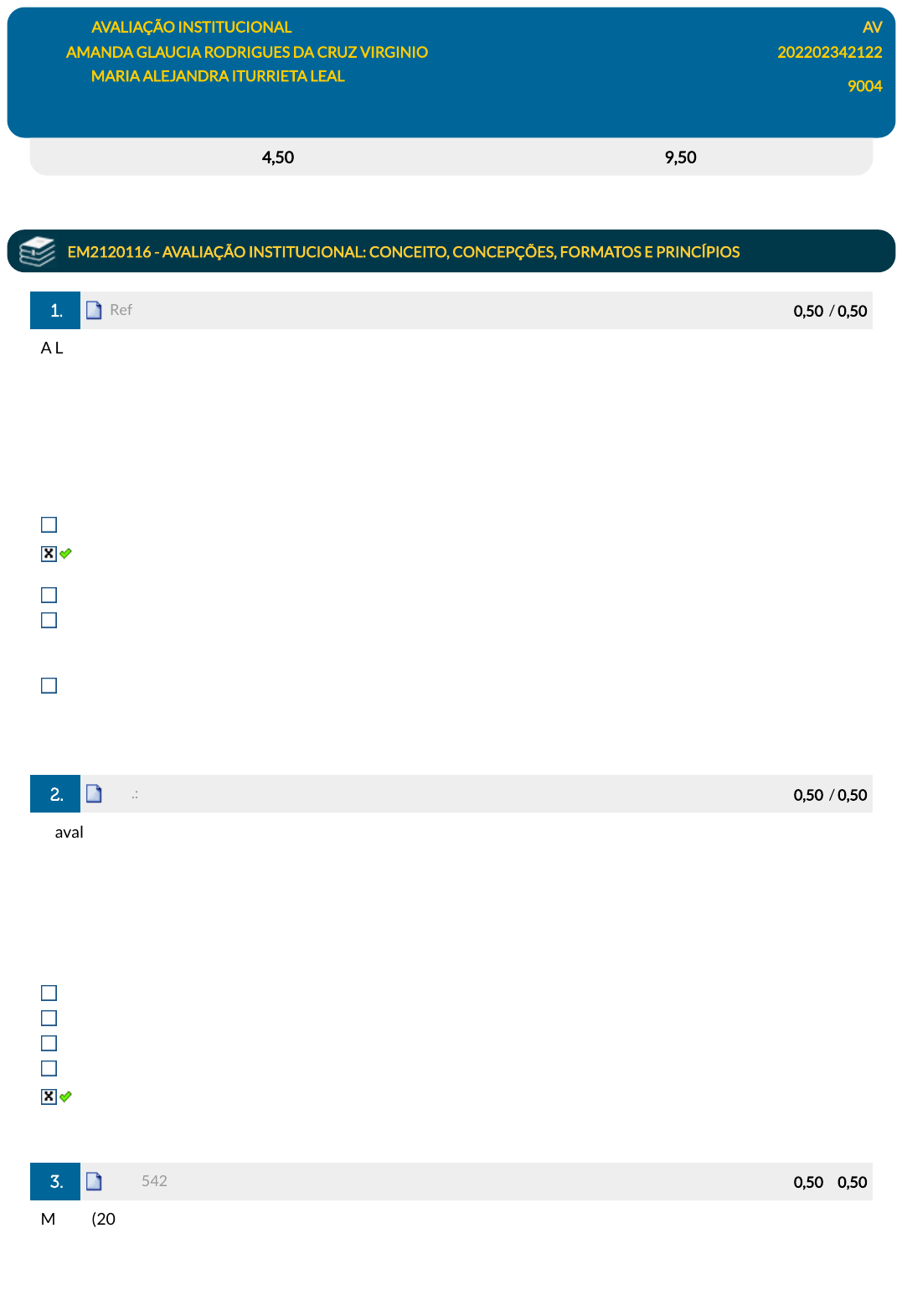 Disciplina: AVALIAÇÃO INSTITUCIONAL AV