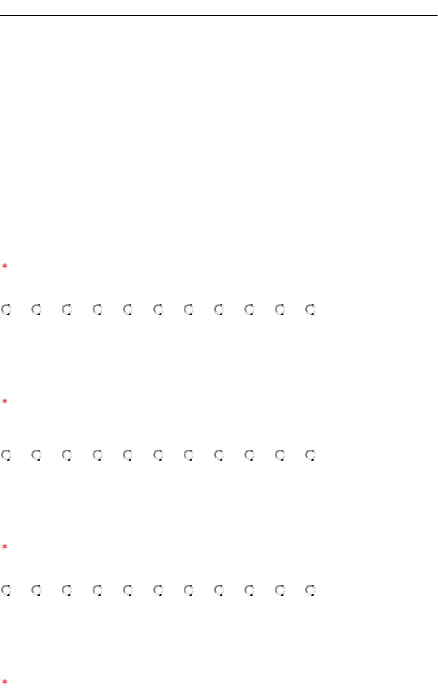 Avaliação de Satisfação com o Curso Parte superior do formulário É importante para a Enap conhecer a sua percepção sobre a formação realizada. A sua opinião contribui para o aprimoramento de nossos cursos. Os resultados da Avaliação de Satisfação com o Curso são processados com o objetivo de subsidiar ajustes e melhorias. É assegurado tratamento confidencial para sua resposta. Agradecemos pela colaboração. ASPECTOS GERAIS Nas primeiras perguntas, solicitamos que você escolha o número de 0 a 10 que melhor representa a sua opinião. Considere 0 como a opção discordo totalmente e 10 como a opção concordo totalmente. Questão #1 1 Resposta obrigatória De 0 a 10, essa experiência contribuiu para o seu desenvolvimento? 0 1 2 3 4 5 6 7 8 9 10 Questão #2 2 Resposta obrigatória De 0 a 10, o quanto as atividades, conhecimentos ou informações foram relevantes para os desafios que você enfrenta? 0 1 2 3 4 5 6 7 8 9 10 Questão #3 3 Resposta obrigatória De 0 a 10, você recomendaria esse curso, oficina ou evento para um amigo, uma amiga ou colega? 0 1 2 3 4 5 6 7 8 9 10 Questão #4 4 Resposta obrigatória De forma global, qual NOTA você daria ao curso, em uma escala de 0 a 10? 0 1 2 3 4 5 6 7 8 9 10 Para as perguntas seguintes, escolha o número de 1 a 5 que melhor represente a sua opinião, sendo 1 discordo totalmente e 5 concordo totalmente. SOBRE O CONTEÚDO E A ESTRUTURA DO CURSO Questão #5 5 Resposta obrigatória O curso estava de acordo com as suas expectativas, considerando as informações apresentadas no momento da inscrição (objetivos, público-alvo, metodologia, conteúdo programático e tempo de dedicação)? 1 2 3 4 5 Questão #6 6 Resposta obrigatória A carga horária foi suficiente para o volume de conteúdos e atividades do curso? 1 2 3 4 5 Questão #7 7 Resposta obrigatória Os conteúdos oferecidos no curso foram relevantes para o seu aprendizado? 1 2 3 4 5 Questão #8 8 Resposta obrigatória A linguagem utilizada nos materiais didáticos foi de fácil compreensão? 1 2 3 4 5 Questão #9 9 Resposta obrigatória Os exemplos utilizados no curso foram pertinentes à sua realidade de trabalho? 1 2 3 4 5 Questão #10 10 Resposta obrigatória As atividades propostas enriqueceram a aprendizagem? 1 2 3 4 5 Questão #11 11 Aspectos negativos quanto ao conteúdo e à estrutura do curso: Questão #12 12 Aspectos positivos quanto ao conteúdo e à estrutura do curso: SOBRE A INTERFACE GRÁFICA DO CURSO Questão #13 13 Resposta obrigatória A apresentação visual do conteúdo estava adequada (tamanho, cores e tipo da fonte; quantidade de conteúdo por tela; uso de imagens e destaques de texto)? 1 2 3 4 5 Questão #14 14 Resposta obrigatória Os desenhos, fotos e imagens apresentados no curso foram adequados e de fácil entendimento? 1 2 3 4 5 Questão #15 15 Resposta obrigatória A navegabilidade no ambiente virtual foi satisfatória (foi fácil encontrar as informações necessárias, isto é, não foi preciso muitos "cliques" para encontrar o que procurava)? 1 2 3 4 5 Questão #16 16 Aspectos negativos quanto à interface gráfica do curso: Questão #17 17 Aspectos positivos quanto à interface gráfica do curso: SOBRE A APLICABILIDADE DO CURSO Questão #18 18 Resposta obrigatória Você adquiriu conhecimentos que irão melhorar seu desempenho individual no trabalho? 1 2 3 4 5 Questão #19 19 Resposta obrigatória Você se sente capaz de compartilhar com outras pessoas os conhecimentos adquiridos? 1 2 3 4 5 Questão #20 20 Resposta obrigatória Você reconhece situações de trabalho em que é adequado aplicar o conteúdo aprendido? 1 2 3 4 5 Questão #21 21 Resposta obrigatória Você se sente capaz de propor mudanças no seu setor de trabalho, com base no que foi aprendido? 1 2 3 4 5 Questão #22 22 Aspectos negativos quanto à aplicabilidade do curso: Questão #23 23 Aspectos positivos quanto à aplicabilidade do curso: SOBRE O APOIO INSTITUCIONAL E LOGÍSTICO Questão #24 24 Resposta obrigatória Foi possível conciliar sua participação no curso com suas demais atividades profissionais e pessoais? 1 2 3 4 5 Questão #25 25 Resposta obrigatória Você teve facilidade de acesso à internet para participar do curso? 1 2 3 4 5 Questão #26 26 Resposta obrigatória O meio de comunicação com a Enap (Fale Conosco) foi eficiente? 1 2 3 4 5 Não utilizei esse serviço Questão #27 27 Aspectos negativos quanto ao apoio logístico: Questão #28 28 Aspectos positivos quanto ao apoio logístico: Parte inferior do formulário S alvar preenchimento parcial Enviar enquete