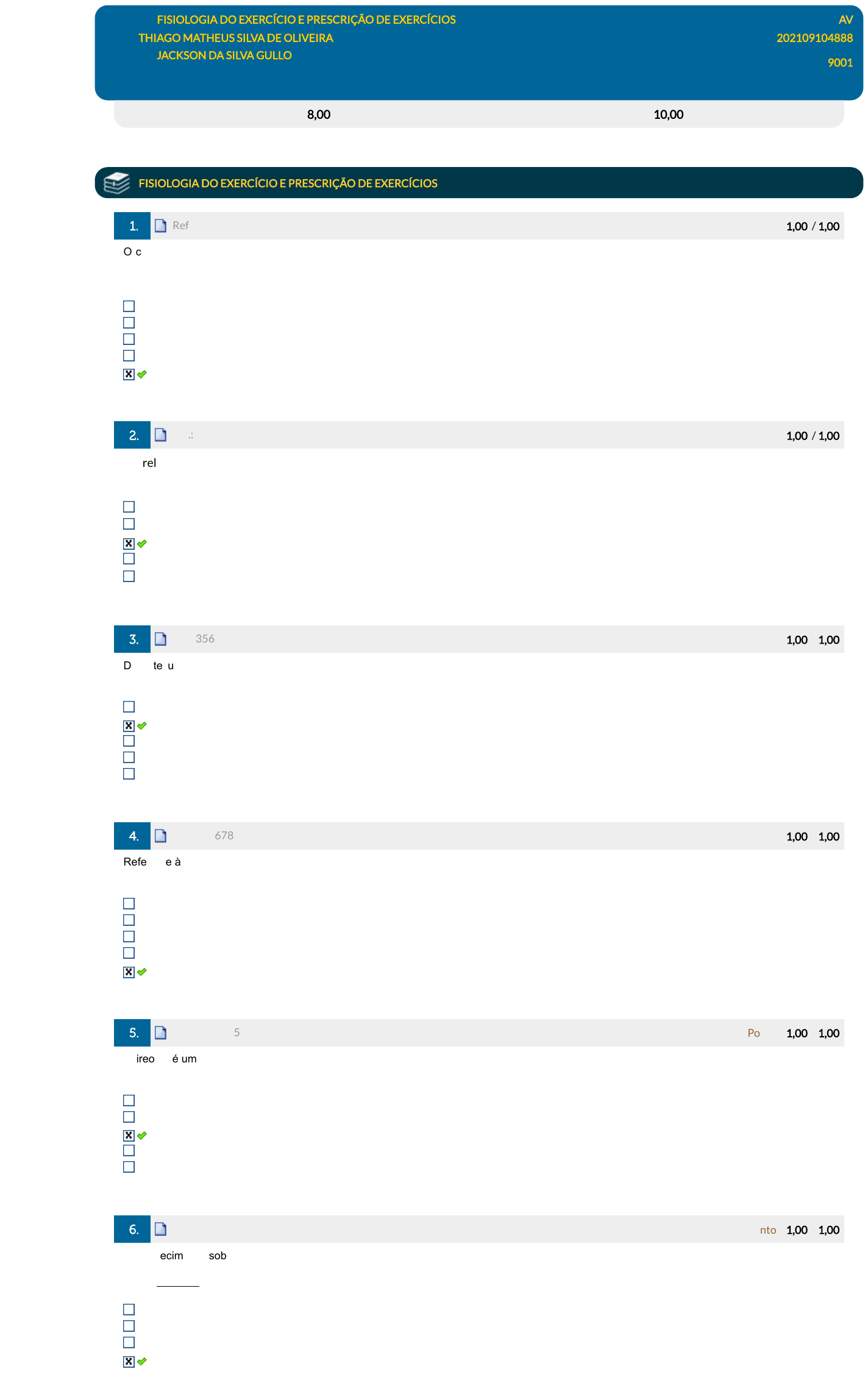 Disciplina: FISIOLOGIA DO EXERCÍCIO E PRESCRIÇÃO DE EXERCÍCIOS AV