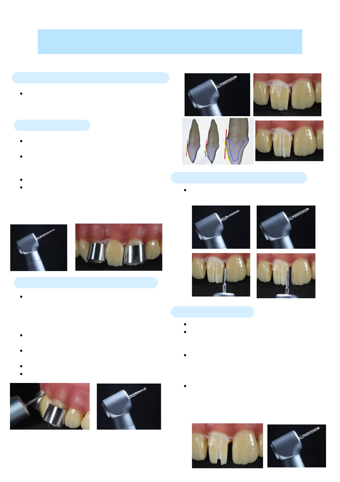 P R E P A R O D E A N T E R I O R E S P A R A C O R O A T O T A L • 1 2 / 0 9 / 2 2 • f i x a I PROTEÇÃO DOS DENTES ADJACENTES1. m a r i a n a a r c a n j o fazemos a proteção colocando matriz metálica ao redor dos dentes adjacentes ao dente que será preparado 2. SLICE PROXIMAL é a eliminação da convexidade natural da área, onde é removida a "barriguinha" do dente a finalidade dessa etapa é criar espaço para a confecção do desgaste definitivo e para a acomodação da papila interproximal 3203 -> diamantada tronco-cônica fina usada como fazer: -- entrar com a broca no dente e não entre o dente e a matriz -- atravessar toda a proximal -- quebrar o remanescente com a espátula 1 3203 3. SULCO DE ORIENTAÇÃO CERVICAL SULCOS DA VESTIBULAR E LINGUAL: 0,7mm -> medida da parte ativa do diâmetro da broca limite subgengival: o sulco marginal deve ser confeccionado no nível da margem gengival limite aquém do nível gengival: sulco marginal localizado supragengivalmente e no nível desejado 1014 de 0,5 a 1mm acima da margem gengival término em chanfro > o sulco é realizado nas faces vestibular e lingual até chegar próximo ao contato do dente vizinho 1014 3217 atenção à inclinação da broca 4. AMPLIAÇÃO DO SLICE PROXIMAL usamos a 2214 para ampliar o espaço para a entrada da 3217 (se necessário) 2214 3217 5. REDUÇÃO INCISAL usamos a 3217 com profundidade de 2mm seguem a mesma direção dos sulcos vestibulares, com inclinação de 45° em relação ao longo eixo do dente esse desgaste possibilita a obtenção de resultados estéticos satisfatórios para a cerâmica, permitindo a translucidez característica do esmalte nessa região deve ser planejado de acordo com a quantidade de incisal do dente vizinho, e avaliado para que não seja feita uma redução muito grande caso o paciente já possua uma incisal desgastada (idosos por ex) 3217 6. DESGASTE AXIAL DA PALATINA se eu inclinar a broca, tiro o cíngulo e dificulto a retenção e estabilidade da prótese 3217 repetir os processos na distal 7. DESGASTE AXIAL DA VESTIBULAR união do sulco de orientação vestibular com a proximal pelo plano cervical e pelo incisal 3217 9. PREPARO INTRASULCULAR 3217F colocação do fio retrator e confecção do término cervical do preparo no interior no sulco gengival com 0,5mm de extensão término em chanfro usando metade da ponta ativa da broca cuidado para não fazer um término em anzol 8. PREPARO DA DISTAL 10. REDUÇÃO PALATINA 3168 de 1,5 a 2mm de espaço interoclusal em relação ao antagonista No terço cervical o desgaste deve ser de 0,6 mm (chanferete) o terço medioincisal deve ser desgastado no mínimo em 0,6 mm 3139F desgaste áxio-cervical com a broca ao redor de todo o dente checagem oclusal checagem interoclusal -> 2mm 3168 11. ACABAMENTO 3139F verificação do espaço interoclusal