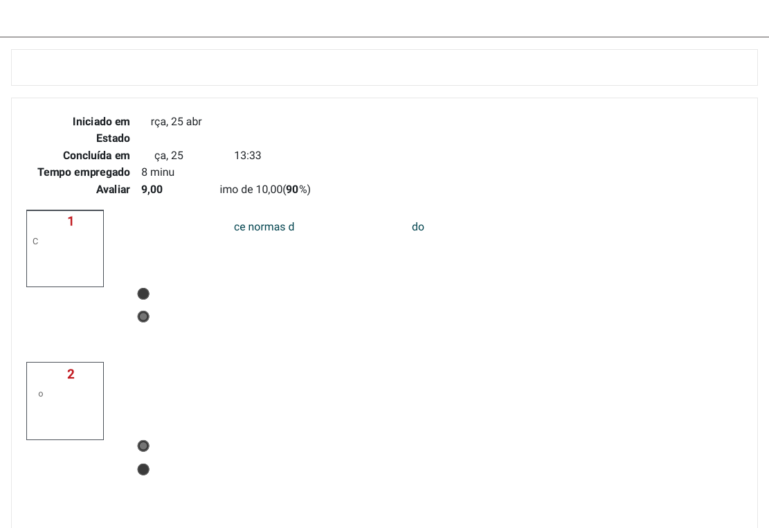 Questão 1 Correto Atingiu 1,00 de 1,00 Questão 2 Correto Atingiu 1,00 de 1,00 Iniciado em terça, 25 abr 2023, 13:24 Estado Finalizada Concluída em terça, 25 abr 2023, 13:33 Tempo empregado 8 minutos 34 segundos Avaliar 9,00 de um máximo de 10,00(90%) O que for ético oferece normas de como agir em direção do bem. Para cada situação ou realidade, novas perguntas devem ser feitas, pois a ética não se questiona, mas a moral, sim. Escolha uma opção: Verdadeiro Falso Ser ético é escolher a melhor premissa, perguntando-se sempre qual é o melhor caminho para fazer bem. O que é bem nessa situação? Ficar aberto ao questionamento é permitir ter uma perspectiva ética. Escolha uma opção: Verdadeiro Falso Questão 3 Correto Atingiu 1,00 de 1,00 Questão 4 Correto Atingiu 1,00 de 1,00 Questão 5 Correto Atingiu 1,00 de 1,00 Na época contemporânea é vista com certo moralismo antiquado. Na época clássica, como conceito central. Com base em vários autores poderíamos traduzir por “excelência”. “O que faz com que um ser humano seja de tal modo pleno ou autêntico é a Virtude ”. Na , como identidade da vontade universal e particular, há uma coincidência entre deveres e direitos. “Por meio do ético, o homem tem , na medida em que tem , e deveres, na medida em que tem direitos”. Só pode ter deveres quem tem, , direitos. Um escravo, portanto não pode ter deveres. eticidade direitos deveres ao mesmo tempo A ética é mais ampla e universal durando mais tempo, enquanto a moral é restrita e funciona em determinados campos da conduta humana em determinados períodos. Escolha uma opção: Verdadeiro Falso Questão 6 Incorreto Atingiu 0,00 de 1,00 Questão 7 Correto Atingiu 1,00 de 1,00 A filosofia contemporânea, no mundo em que vivemos das telecomunicações, da internet, dos programas espaciais, da física quântica, ou da medicina de alta tecnologia, a filosofia contemporânea desde o século XIX se fundamenta nos conceitos da história e da filosofia de Hegel pelas ideias de totalidade e de processo, sendo o homem um ser histórico, assim como a sociedade. Isto traz como uma das consequências a ideia de progresso e consagra a visão crítica diante das bases morais da sociedade ocidental, da religião e os abusos da própria ciência. Escolha uma opção: Verdadeiro Falso A organização política em que os cidadãos vivem – as cidades-estado – favorece a sua participação ativa na vida política da sociedade. As teorias éticas apontam para um dado ideal de cidadão e de sociedade é chamada de: a. Estóicos b. Ética c. Polis d. Cosmos Questão 8 Correto Atingiu 1,00 de 1,00 A educação é vulnerável a um ambiente adverso, especialmente se é ministrada com deficiências ou se ensejar espaços para incompreensões. O meio em que vive a mídia eletrônica, as publicações, enfim, tudo que possa interferir no sentido de corroer a moral educacional, pode acarretar a transformação das referências adquiridas na base educacional. A que tipo de influências esta assertiva se refere? a. Influências determinística. b. Influências pessoais. c. Influências ambientais. d. Bases mentais e condutas. Mudar para o tema padrão Questão 9 Correto Atingiu 1,00 de 1,00 Relacione abaixo alguns dos sistemas conceituais fundamentais da ética: É um código de valores capaz de guiar a conduta do homem e suas respectivas escolhas e decisões, permitindo julgamento do certo ou do errado, do bem ou mal. É uma das tarefas da ética responder sobre as questões do egoísmo, que é a preocupação com os interesses de caráter individual ou corporativo, cujo conceito não inclui a avaliação moral, pois não nos diz se a preocupação com esses interesses é boa ou má. Faz referência mais a determinados campos da conduta humana onde a visão estreita de moralidade deriva para moralismo - equivale a uma espécie de loucura da ética, quando se perde o sentido geral das coisas para se apegar a certos pontos ou normas, que são tomados de forma absoluta, sem levar em conta a amplitude, o conjunto. Moralismo é a doença da ética. A ética responde a esse conceito que deve significar a preocupação com os interesses do outro, porém, não inclui a avaliação moral, pois não significa que uma ação altruística é boa ou má. É o estudo dos aspectos lógicos de um discurso ou tratado moral. É o estudo do significado dos termos usados no discurso ético. É o tipo de reflexão que analisa o discurso moral, constituindo uma metalinguagem de caráter pretendidamente neutro ou não normativo. Moralidade Egoísmo Moralismo Altruísmo Metaética https://moodle.ifrs.edu.br/theme/switchdevice.php?url=https%3A%2F%2Fmoodle.ifrs.edu.br%2Fmod%2Fquiz%2Freview.php%3Fattempt%3D12576300%26amp%3Bcmid%3D303926&device=default&sesskey=M2yFUUIwKC Questão 10 Correto Atingiu 1,00 de 1,00 É um exemplo de falso moralismo: Escolha uma opção: a. Não fazer a reciclagem do lixo corretamente. b. Dar esmola quando para o carro no semáforo. c. Proibir o uso de certas roupas em casa, mas ser inconveniente com pessoas na rua que usam as mesmas roupas. d. Pais que não querem que a filha saia de casa sozinha tarde da noite e. Reclamar da pessoa que fura a fila. ← 3.11 Material Complementar - Ética é questão de opinião? - Mario Sergio Cortella Seguir para... 3.13 Conceitos da ética profissional → https://moodle.ifrs.edu.br/mod/page/view.php?id=303925&forceview=1 https://moodle.ifrs.edu.br/mod/page/view.php?id=303928&forceview=1