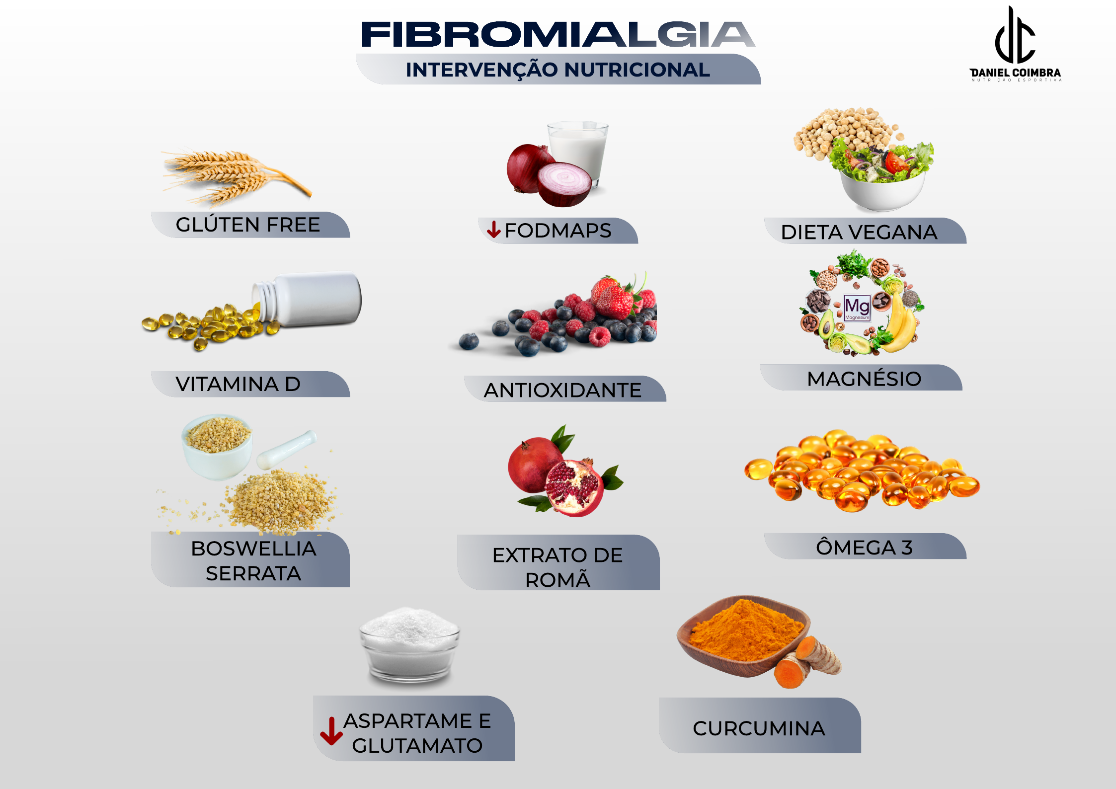 FIBROMIALGIA intervenção nutricional GLÚTEN FREE ANTIOXIDANTE DIETA VEGANA MAGNÉSIO ÔMEGA 3 VITAMINA D BOSWELLIA SERRATA EXTRATO DE ROMÃ ASPARTAME E GLUTAMATO CURCUMINA FODMAPS