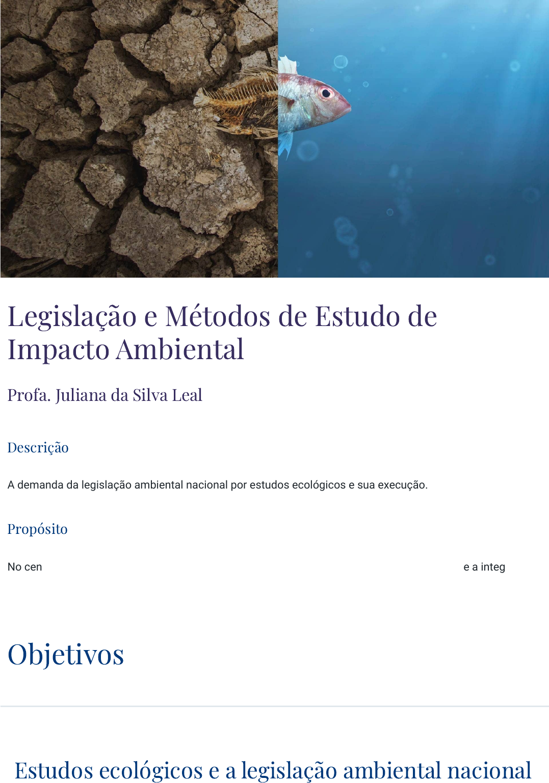 18/06/2023 10:17 Legislação e Métodos de Estudo de Impacto Ambiental https://stecine.azureedge.net/repositorio/00212sa/02561/index.html#imprimir 1/70 Legislação e Métodos de Estudo de Impacto Ambiental Profa. Juliana da Silva Leal Descrição A demanda da legislação ambiental nacional por estudos ecológicos e sua execução. Propósito No cenário atual de mudanças ambientais globais, a competência de promover estudos sobre a integridade ambiental e seus componentes florísticos e faunísticos é essencial aos profissionais da área ambiental. Objetivos Módulo 1 Estudos ecológicos e a legislação ambiental nacional 18/06/2023 10:17 Legislação e Métodos de Estudo de Impacto Ambiental https://stecine.azureedge.net/repositorio/00212sa/02561/index.html#imprimir 2/70 Reconhecer a demanda por estudos ecológicos na legislação ambiental nacional. Módulo 2 Biomonitoramento, levantamento e monitoramento ambiental Identificar as situações que necessitam de biomonitoramento, levantamento e monitoramento ambiental. Módulo 3 Técnicas de amostragem em estudos ecológicos Identificar as técnicas de amostragem empregadas em estudos ecológicos. Módulo 4 Amostragem da �ora e fauna, terrestres e aquáticas Descrever as técnicas de amostragem para a flora e a fauna, terrestres e aquáticas. Os estudos de impacto ambiental têm por objetivo entender as mudanças sofridas no ambiente devido à realização de atividades com potencial econômico. As mudanças ambientais são percebidas pelo pesquisador tanto por alterações nas comunidades biológicas associadas ao local como em determinadas características do próprio ambiente. A questão é: o que se deve fazer para verificar e avaliar essas mudanças ambientais? Introdução 18/06/2023 10:17 Legislação e Métodos de Estudo de Impacto Ambiental https://stecine.azureedge.net/repositorio/00212sa/02561/index.html#imprimir 3/70 Neste conteúdo, você aprenderá ferramentas básicas que possibilitem a realização de estudos ecológicos, visando entender a relação entre as espécies e o ambiente ou ecossistema, bem como o funcionamento dos ecossistemas. Dentre as ferramentas a serem estudadas, estão o biomonitoramento, o levantamento de flora e fauna, e o monitoramento ambiental. Como o biomonitoramento constitui uma ferramenta cuja aplicação é mais complexa, ele será o principal assunto de um dos nossos módulos. Porém, não se preocupe: aqui, estarão disponíveis a base teórica necessária para que você seja capaz de compreender como se faz tanto um levantamento florístico ou faunístico quanto um biomonitoramento. AVISO: orientações sobre unidades de medida. Orientações sobre unidades de medida Em nosso material, unidades de medida e números são escritos juntos (ex.: 25km) por questões de tecnologia e didáticas. No entanto, o Inmetro estabelece que deve existir um espaço entre o número e a unidade (ex.: 25 km). Logo, os relatórios técnicos e demais materiais escritos por você devem seguir o padrão internacional de separação dos números e das unidades. javascript:void(0); 18/06/2023 10:17 Legislação e Métodos de Estudo de Impacto Ambiental https://stecine.azureedge.net/repositorio/00212sa/02561/index.html#imprimir 4/70 1 - Estudos ecológicos e a legislação ambiental nacional Ao �nal deste módulo, você será capaz de reconhecer a demanda por estudos ecológicos na legislação ambiental nacional. Um breve resumo da Política Nacional do Meio Ambiente A Política Nacional do Meio Ambiente (PNMA) foi instituída pela Lei n. 6.938, publicada em 31 de agosto de 1981, e regulamentada, posteriormente, pelo Decreto n. 99.274 e determina objetivos, ações e instrumentos para que seja alcançada uma gestão integrada dos recursos naturais. De maneira geral, o objetivo da PNMA, apresentado no art. 2º é: A preservação, melhoria e recuperação da qualidade ambiental propícia à vida, visando assegurar, no País, condições ao desenvolvimento socioeconômico, aos interesses da segurança nacional e à proteção da dignidade da vida. (LEI N. 6.938/1981) Assim, o objetivo da PNMA pode ser resumido a preservar, melhorar e recuperar o meio ambiente. Na Constituição Federal, há o princípio presente no art. 225, no qual é assegurado o direito de todos ao meio 18/06/2023 10:17 Legislação e Métodos de Estudo de Impacto Ambiental https://stecine.azureedge.net/repositorio/00212sa/02561/index.html#imprimir 5/70 ambiente ecologicamente equilibrado e, nesse sentido, a PNMA surgiu para garanti-lo. Atualmente, a correta interpretação da PNMA deve ser feita à luz da Lei Complementar 140/2011. A criação da PNMA representou um grande avanço para a preservação ambiental porque a legislação é um dos principais meios de proteção e conservação do meio ambiente. Dentre as motivações que estimularam o seu desenvolvimento, podemos citar: Descoberta das limitações do meio ambiente Consequências ecológicas do crescimento econômico Crescente preocupação mundial com o meio ambiente 18/06/2023 10:17 Legislação e Métodos de Estudo de Impacto Ambiental https://stecine.azureedge.net/repositorio/00212sa/02561/index.html#imprimir 6/70 Importância da valorização dos recursos ambientais para o setor produtivo Atenção Frente à ausência de consciência ambiental da sociedade, por exemplo, as leis são uma ferramenta valiosa por exigirem que as pessoas cumpram deveres e obrigações e, caso não o façam, a sua omissão tem como consequência uma punição mais rigorosa — uma importante promotora da conscientização ambiental. É por isso que, dentre esse e outros motivos que vamos conhecer a seguir, a Política Nacional do Meio Ambiente representa um documento estratégico. Na PNMA, são estabelecidos princípios e compromissos fundamentais, que o país deve adotar para tratar o seu território; uma estrutura institucional que garanta as ações de ocupação e uso do território e seus r