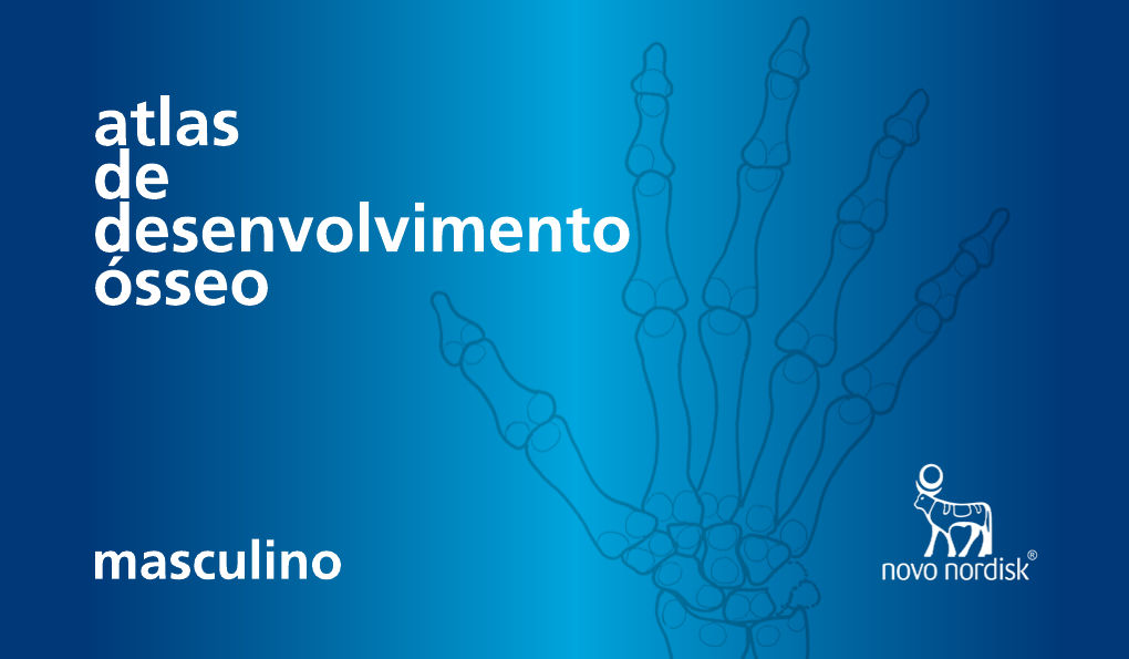 Ossos de punhos e mãos Recém-nascido Sem núcleos do carpo • Sem epífises 3 meses Surgimento de hamato+ e capitato ++ 6 meses Hamato++ e capitato +++ bem maiores 9 meses Hamato+++ • Capitato ++++ • Metáfises dos metacarpos estão mais largas que as diáfises. 1 ano Hamato e capitato maiores e mais próximos 1 ano e 6 meses Epífise distal do rádio bem nítida 2 anos Epífises das falanges proximais do 2o ao 5o dedo nítidas 2 anos 8 meses Aparece o piramidal 3 anos Aparece o semilunar 3 anos 6 meses Aumento do semilunar 4 anos Aparece o trapézio • Todas as epífises das falanges presentes 4 anos 6 meses Aumento do trapézio 5 anos Capitato bem próximo do hamato • Epífise do 1º metacarpo maior que a metade da metáfise adjacente. 6 anos Aparece epífise distal da ulna • Aparece escafoide • Aparece trapezoide 7 anos Começa a sobreposição trapézio/trapezoide • Epífise menor do que a metade da extremidade óssea da ulna 8 anos Epífise maior do que a metade da ulna • Epífises das falanges médias estão mais espessas 9 anos Aparece projeção incial do processo estiloide 10 anos Indentação do trapézio 11 anos Sombra do pisiforme 11 anos 6 meses Pisiforme nítido • Capitato e escafoide com sobreposição inicial 12 anos 6 meses Traço inicial do gancho do hamato 13 anos Ossificação do sesamoide 13 anos 6 meses Gancho do hamato completo • Sombra do encapa- mento do rádio 14 anos Encapamento do rádio 15 anos Início da fusão das epífises distais especialmente dos 1º e 3º dedos 16 anos Fusão epífise-diáfise em todas as falanges proximais 15 anos e 6 meses Fusão completa das epífises distais 18 anos Fusão completa da epífise da ulna 19 anos Está completa a maturação óssea da mão e do punho 17 anos Começa a fusão de rádio e ulna • Todas as epifíses das falanges já estão fundidas Autores • Rodrigo Nunes Lamounier, Endocrinologista, CRM-MG 31293 • Paulo Dias Nascimento, Endocrinologista, CRM-MG 5816 CDBH - Centro de Diabetes de Belo Horizonte - MG Design Gráfico • Nemer Fornaciari Design Referências Bibliográficas • GREULICH & PYLE. Radiographic Atlas of Skeletal Development of the Hand and Wrist, 2nd Edition, 1959. • MONTE, LONGUI & CALLIARI. Endocrinologia para o Pediatra - 3ª edição, 2007. ® Marca registrada Novo Nordisk A/S © 2018 Novo Nordisk Famacêutica do Brasil Ltda. Disk Novo Nordisk: 0800 14 44 88 www.novonordisk.com.br GH-009-06/2018 Junho 2018 Material destinado exclusivamente a profissionais de saúde habilitados a prescrever e/ou dispensar medicamentos. feminino Ossos de punhos e mãos Recém Nascido Sem núcleos do carpo • Sem epífises 3 meses Aparecem hamato e capitato 6 meses Hamato e capitato maiores 9 meses Hamato e capitato nítidos e grandes • Alargamento da base do 2º metacarpo 1 ano Surge a epífise do rádio 1 ano 6 meses Falange média do 2º ao 4º dedos 2 anos Aparece piramidal • Surge epífise do 1º metacarpo • Aparece a epífise da falange proximal do polegar 2 anos 6 meses Piramidal nítido • Todas as epífises dos metacarpos e das falanges estão presentes 3 anos Semilunar 3 anos 6 meses Trapézio 4 anos 2 meses Início de escafoide e trapezoide 5 anos Escafoide e trapezoide nítidos 5 anos 9 meses Sobreposição entre capitato e hamato • Trapézio tocando trapezoide 6 anos 10 meses Aparece a epífise distal da ulna 7 anos 10 meses Nítida sobreposição trapézio/trapezoide • Aumenta a epífise da ulna 8 anos 10 meses Sombra pisiforme • Epífise da ulna mais larga e início do processo estiloide 10 anos Trapezoide com nítida articulação com 2º metacarpo 11 anos Ossificação do sesamoide • Gancho do hamato bem nítido 12 anos Estiloide proeminente 13 anos Início da fusão do 1º metacarpo • Início da fusão da falange distal do polegar 13 anos 6 meses Fusão das epífises das falanges distais 14 anos Início da fusão de rádio e ulna • Início da fusão dos metacarpos e falanges proximais 15 anos Fusão completa das falanges proximais 16 anos Fusão completa da ulna 17 anos Fusão completa de rádio e ulna 18 anos Está completa a maturação óssea da mão e do punho ® Marca registrada Novo Nordisk A/S © 2018 Novo Nordisk Famacêutica do Brasil Ltda. Disk Novo Nordisk: 0800 14 44 88 www.novonordisk.com.br GH-009-06/2018 Junho 2018 Material destinado exclusivamente a profissionais de saúde habilitados a prescrever e/ou dispensar medicamentos. Autores • Rodrigo Nunes Lamounier, Endocrinologista, CRM-MG 31293 • Paulo Dias Nascimento, Endocrinologista, CRM-MG 5816 CDBH - Centro de Diabetes de Belo Horizonte - MG Design Gráfico • Nemer Fornaciari Design Referências Bibliográficas • GREULICH & PYLE. Radiographic Atlas of Skeletal Development of the Hand and Wrist, 2nd Edition, 1959. • MONTE, LONGUI & CALLIARI. Endocrinologia para o Pediatra - 3ª edição, 2007.