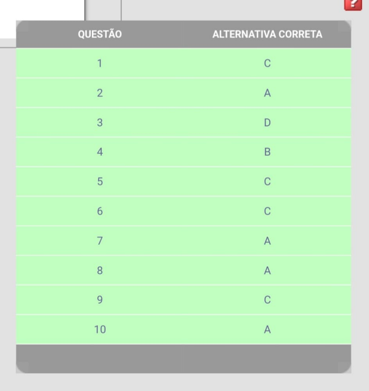 QUESTÃO 1 2 3 4 5 6 7 8 10 ALTERNATIVA CORRETA C A D B C A A A @consultoriatcc10 Instruções para a realização da prova: 1. Leia as questes com atenç§o. 2. Confira seu nome e RA e venifique se o caderno de questão e folha de respostas correspondem à sua disciplina. 3. Faça as mancações primeiro no caderno de questões e depois repasse para a folha de respostas. 4, Ser�o consideradas somente as marcações feitas na folha de respostas. 5. Não se esqueça de assinar a foiha de respostas. 6. Utilize caneta preta para preencher a folha de respostas. 7. Preencha toÏo o espaço da bolha referente à alternativa escolhida, a caneta, conforme instruções: não rasure, não preencha X n-o ultrapasse os limites para preenchimento. S. Preste atenção para nào deixar nenhuma questão sem assinalar. 9. So assinale uma alternativa por questão. 10 Não se esqueça de responder às questões discursivas, quando houver, e de entregar a folha de respostas para o tutor do poio presencial, devidamente assinada. 11. Não é pemitido consuita a nenhum material durante a prova, exceto quando indicado o uso do material de apoio. 12 Lembre-se de confimar Sua presença através da assinatura digital (login e senha). Boa prova! Questões de múltipla escolha Disciplina: 654360 - PSICOLOGIA CONSTRUTIVISTA Questão 1: Paulo Henrique brinca com bolas e já formou um esquema de brincar: ao receber uma nova bola, ele a manipula da mesma forma como fez anteriormente com outros objetos semelhantes (a). -); mas, supondo Que a nova bola seja maior ou menor do que a já conhecida e manuseada, será necessário um processo de (b).. ....). Quais são os conceitos piagetianos que se encaixam nos espaços? A) acomoda,ão e equilibração. B) assimilação e adaptação. assirmilação e acormodaç�o. D) adaptação e equilitbração. E) assimilação e equilibração. Questão 2: Vocé está andando pela praça de sua cidade e observa algumas crianças no parquinho da praça brincando e conversando. Miguel diz: "Amanh� eu vou com o meu pai na casa da minha avó". Gabriela comenta: "Eu ganhei uma boneca de presente!". Felipe espera Gabriela terminar de falare grita: "Minha mãe penteou o meu cabelo". Celinha termina de fazer um castelo na areia e diz: "Esse é o castelo da Cinderela". Considerando a situaç�o, que tipo de comunicação as crianças estão utilizando, de acordo com os pressupostos piagetianos? AX Linguagem ou fala egocèntrica. @consultoriatcc10 B) Linguagem ou fala socializada. C) Discurso social. D) Discurso interior. E) Linguagem coletiva. Questão 3: Tadeu Renato está estudando o método clínico piagetiano e as reações que a criança pode apresentar durante a aplicação das provas operatórias piagetianas. Para isso, convidou uma criança para realizar uma entrevista, e ocorreu o seguinte: Tadeu Renato: Veja bem! Há a mesma guantidade de massinha nas duas bolinhas? Criança: Sim. Tadeu Renato: [Mudando a forma de apresentar a massinha] E agora? Continua o mesmo tanto? Criança: Não sei... Tadeu Renato: Em qual delas há mais? Crianca: Vai demorar muito? Estou com sono.. Tadeu Renato: [Nova alteração na aparência da massinha.]lE agora? Por que você acha que ainda tem mais na minha? Criança [Não responde.] Tadeu Renato insiste em perguntar, de outras maneiras, se há conservaç�o de massa; no entanto, a riança permanece afimando "não sei". Qual a reação ou crença apresentada pela criança nessa situação? A) Crença espontânea. B) Crença desencadeada. o Crença sugerida. B Não importismo. E) Fabulação. Questão 4: As psicólogas Meira e Tanamachi (2003), em um capítulo no qual descrevem a atuação do psicólogo no carmpo da educação, apresentam o relato de uma intervenção com um garoto que apresentava a queixa escolar de dificuldades de aprendizagem. Herbert é uma criança adotada, e seu pai e irmãs adotivas acreditam que ele não é inteligente. Afirmamn que Herbert será catador de lixo como o pai biológico. Nessa afirmação está presente qual concepç�o epistemológica sobre a inteligência? A) Inteligência é construída. K Inteligéncia é inata. 9 inteligência é adquirida. D) Inteligência é elaborada. E) Inteligência é social. Questão 5: Carmenm Silvia, de cinco anos, fez um lindo desenho para sua professora e disse: "Esse é o castelo da príncesa. A princesa é linda: tem cabelo comprido, tem uma coroa e está de vestido. A bruxa foi lá dentro do castelo para jogar um feitiço nela, porque ela é malvada". De acordo com os estudos sobre o grafismo infantil, a que fase do desenvolvimento corresponde esse desenho, segundo Luquet? @consultoriatcc10 Fonte: professora conteudista A) Realismo fortuito. B) Realismo malsucedido. E). Realismo intelectual. D) Realismo visual. E) Realismo. Questão 6: Aninha adora colecionar figurinhas e ganhou de aniversário um baralho colorido, com figuras impressas. Separa as cartas agrupando as figuras de casas, de bichos e de pessoas. Aparentemente insatisfeita, embaralha os cartões e recomeça agrupando-os por cores, gosta de trocar as figuras repetidas comn os colegas na escola e está muito animada com a facilidade com que consegue classificar e seriar os materiais. De acordo com Piaget, em que fase do desenvolvimento Aninha se encontra? A) Sensório-motor. B) Pré-operatório. E) Operatório concreto. D) Operatório formal. E) Operatório abstrato. Questão 7: No estádio pré-operacional, a criança evolui de um funcionamernto basicamente sensório-motor,. expresso por meio de ações, para um modo conceitual e representacional. Assim, o periodo marcado pela passagem da inteligència sensório-motora ou prática para a inteligència representativa, e a criança se torna apta para representar objetos e eventos. Isso ocorre porque, a partir dos dois anos, a criança passa a ter uma função de pensamento que possibilita representar um objeto ausente (significante) por meio de um significado, que pod