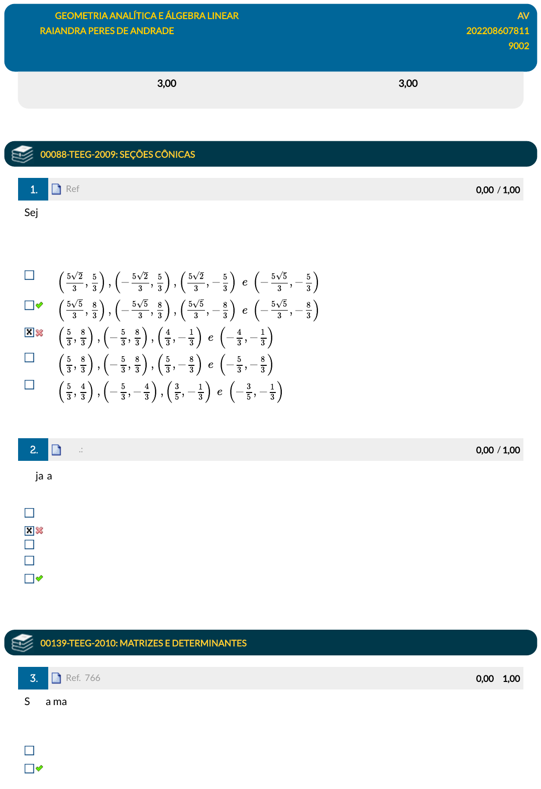 Disciplina: GEOMETRIA ANALÍTICA E ÁLGEBRA LINEAR  AV