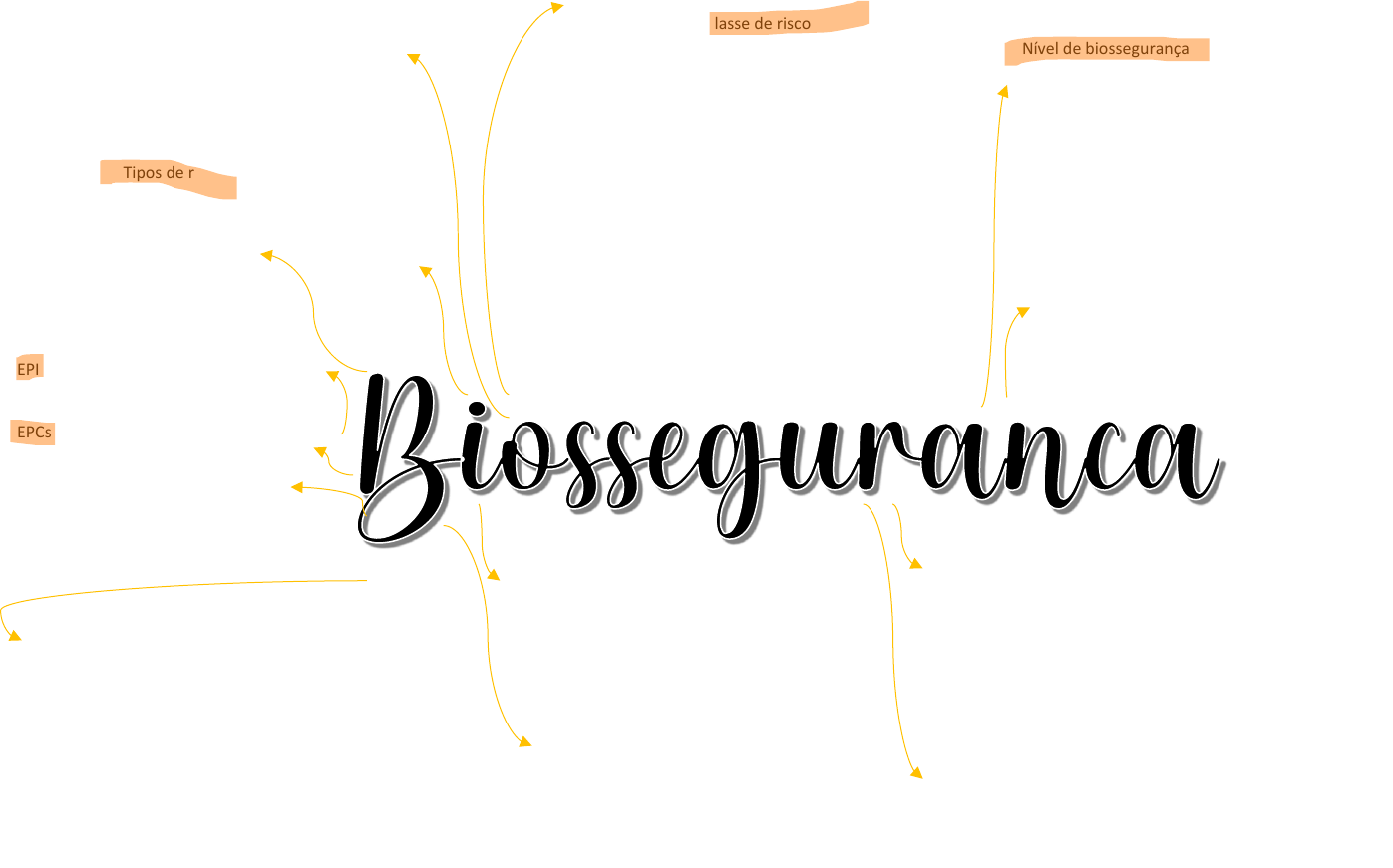 Classe de risco 1- Oferece baixo risco individual e coletivo 2- Oferece risco moderado individual e coletivo 3-Oferece risco alto individual e coletivo, possui capacidade de Transmissão por via aérea 4- Oferece alto risco individual e coletivo, transmissibilidade por via aérea ou Transmissão desconhecida. Inclui principalmente vírus, vírus do ebola Risco especial- oferece alto risco, podem gerar graves perdas econômicas, apresenta grande patogenicidade. O vírus da influenza, aviária, vírus da peste aviária, vírus da peste bovina, o vírus da cólera suína Em 1995 foi criada a comissão técnica nacional de biossegurança (CTNBio)-para estabelecer normas as atividades que envolvem construção, cultivo, manipulação, uso, transporte, armazenamento, comercialização, consumo, liberação e descarte relacionados à OGMs em todo o território brasileiro organização Conjunto de ações voltadas para a prevenção, minimização e a eliminação dos riscos inerentes, que pode comprometer a saúde do homem, animais e meio ambiente. Tipos de risco • Químico • Biológico • Ergonômico • Acidentais • Físicos EPIs-equipamento para uso pessoal-luvas, jalecos e óculos EPCs-equipamentos de proteção coletiva Nível de biossegurança NB1- agente biológico da classe 1 NB2- agentes etiológicos da classe 2 NB3- agentes etiológicos da classe 3, NB4- agentes etiológicos da classe 4, deve ser controlado por um sistema de segurança rigoroso Aerossóis-é um dos principais meios de Transmissão nos laboratórios 1970-Começa a ser debatido o conceito de biossegurança após a engenharia genética 1974-conferência de Asilomar, na Califórnia, debate acerca dos riscos das técnicas de engenharia genética e sobre a segurança dos espaços laboratoriais 1980- Organização mundial de saúde, conceituou saber segurança como práticas de prevenção para o trabalho em laboratório com agente patogénicos, além disso, classificou os riscos como biológicos, químicos, físicos, radioativos e ergonômicos. No Brasil- biossegurança começou em 1970 em 1980, conte recorrência do grande número de relatos de graves infecções ocorridas em laboratório e também consequências que a manipulação experimental de animais, plantas e microrganismos poderiam trazer o homem e ao meio ambiente. 2002-Foi criada a comissão de biossegurança in saúde (CBS) no âmbito do Ministério da saúde. As boas práticas de laboratório (BPLs) tratam organização, do processo e das condições sob as quais estudos de laboratório são planejados, executados, monitorados, registrados e relatados