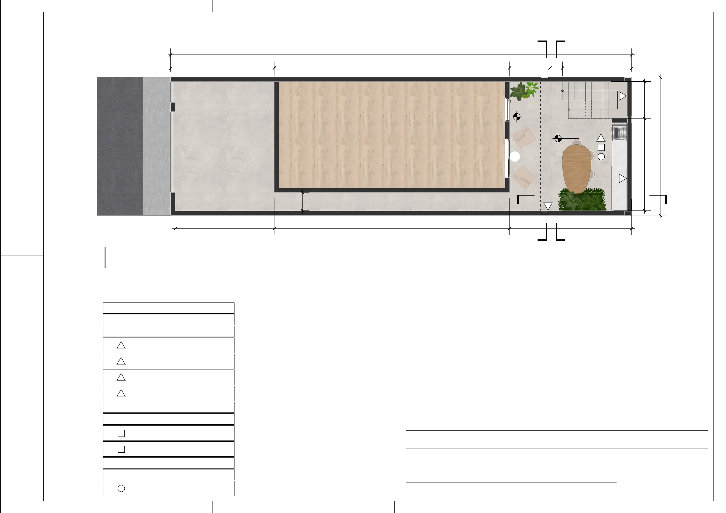 TÍTULO: CLIENTE: OBSERVAÇÃO: ESCALA: REVISÃO: DATA: 14/06/2023 FOLHA: PROJETO EDÍCULA - PLANTA LAYOUT PISO TÉRREO KIM E SOUTA OTAKE 00 / 51MEDIDAS EM METROS PLANTA LAYOUT PISO TÉRREO ESC.: 1/75 4,50 10,20 1,76 3,000,54 20,00 4,30 0, 79 10,20 5,30 1,6 0 4, 00 6, 00 CASA PREEXISTENTE +0.05 LAVANDERIA +0.00 A A B B C C 1 1 1 2 2 LEGENDA ACABAMENTOS PAREDE SÍMBOLO DESCRIÇÃO PISO SÍMBOLO DESCRIÇÃO TETO SÍMBOLO DESCRIÇÃO Textura tipo cimento queimado cinza claro Revestimento em Pedra Moledo Natural Revestimento Creta Ash 60x120cm - Portobello Textura tipo cimento queimado cinza claro 1 1 1 2 Piso vinílico modelo Kamari - Durafloor2 Revestimento Creta Ash 60x120cm - Portobello 3 Revestimento Bianco Covelano 60x120cm - Portobello4 2 1:75 TÍTULO: CLIENTE: OBSERVAÇÃO: ESCALA: REVISÃO: DATA: 14/06/2023 FOLHA: PROJETO EDÍCULA - PLANTA LAYOUT 1º PAVIMENTO KIM E SOUTA OTAKE 00 / 52MEDIDAS EM METROS PLANTA LAYOUT 1º PAVIMENTO ESC.: 1/75 0, 79 +3.20 CORRE +0.00 CASA PREEXISTENTE WC 0,75 2,851,35 1,6 5 2, 67 1,2 0 5, 60 3,571,3510,204,30 4,50 3,9516,05 20,00 JOGOS A A B B C C 1 1 2 2 LEGENDA ACABAMENTOS PAREDE SÍMBOLO DESCRIÇÃO PISO SÍMBOLO DESCRIÇÃO TETO SÍMBOLO DESCRIÇÃO Textura tipo cimento queimado cinza claro Revestimento em Pedra Moledo Natural Revestimento Creta Ash 60x120cm - Portobello Textura tipo cimento queimado cinza claro 1 1 1 1 2 Piso vinílico modelo Kamari - Durafloor2 4 Revestimento Creta Ash 60x120cm - Portobello 3 13 Revestimento Bianco Covelano 60x120cm - Portobello4 3 1:75 TÍTULO: CLIENTE: OBSERVAÇÃO: ESCALA: REVISÃO: DATA: 14/06/2023 FOLHA: PROJETO EDÍCULA - PLANTA COBERTURA KIM E SOUTA OTAKE 00 / 53MEDIDAS EM METROS PLANTA LAYOUT 1º PAVIMENTO ESC.: 1/75 +6.15 CASA PREEXISTENTE +6.00 6, 00 5, 70 4,25 3,950,75 10,50 10,20 +0.00 4,50 4,30 1:75 TÍTULO: CLIENTE: OBSERVAÇÃO: ESCALA: REVISÃO: DATA: 14/06/2023 FOLHA: PROJETO EDÍCULA - CORTE AA KIM E SOUTA OTAKE 00 / 54MEDIDAS EM METROS CORTE AA ESC.: 1/50 1,67 2,65 1,20 0, 90 2, 46 0, 20 2, 66 2, 80 0, 20 3, 00 Revestimento em Pedra Moledo Natural Marcenaria sob medida com portas ripadas e armários inferiores e superiores Textura tipo cimento queimado cinza claro MDF Tauari -Guararapes MDF Terrino - Guararapes Prateleiras em MDF Terrino - Guararapes Base em alvenaria para marcenaria Portas ripadas de correr Espaço para portas de correr Bancada em quartzo Bancada em quartzo corr e Tanque em inox Espaço para lava e seca MARCENARIA LAVANDERIA ESC.: 1/50 1:50 TÍTULO: CLIENTE: OBSERVAÇÃO: ESCALA: REVISÃO: DATA: 14/06/2023 FOLHA: PROJETO EDÍCULA - CORTE BB e CC KIM E SOUTA OTAKE 00 / 55MEDIDAS EM METROS 2, 66 2, 80 0, 20 Casa preexistente Revestimento Creta Ash 60x120cm - Portobello Textura tipo cimento queimado cinza claro CORTE BB ESC.: 1/50 Marcenaria sob medida com armário suspenso e estante alta 0, 90 0, 50 2, 66 3, 00 0, 20 Revestimento em Pedra Moledo Natural Revestimento Bianco Covelano 60x120cm - Portobello Revestimento Creta Ash 60x120cm - Portobell Bancada em quartzo CORTE CC ESC.: 1/50 ,3 0 0, 60 0,15 Estante alta MDF Tauari e Terrino - Guararapes MARCENARIA JOGOS ESC.: 1/50 Armário suspenso com gavetas em MDF Terrino - Guararapes 0,63 1,7 6 2,57 1:50