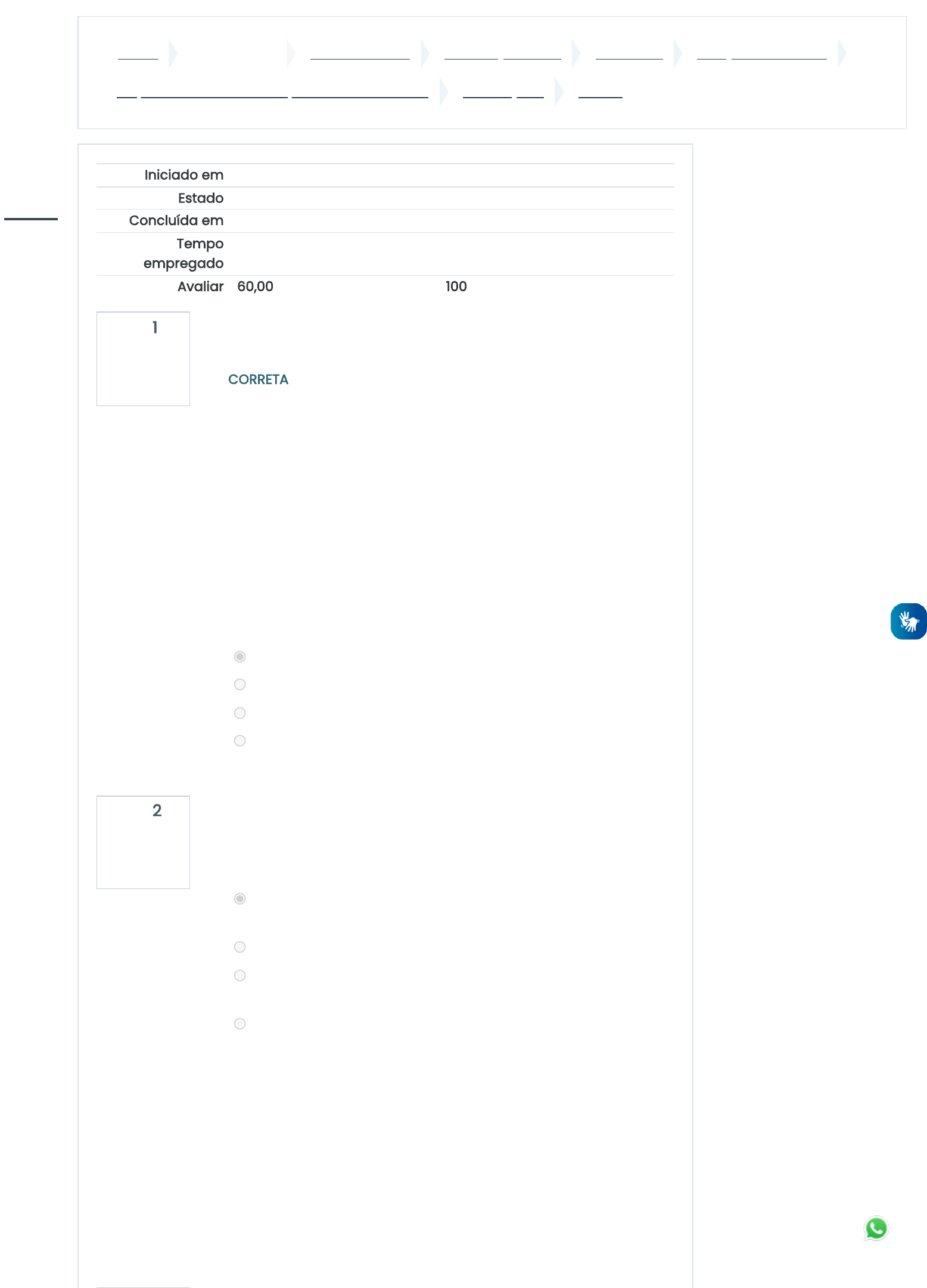08/06/2023 12:56 PROVA https://ava.funec.br/mod/quiz/review.php?attempt=450415&cmid=16972 1/6 Painel Meus cursos CURSOS FUNEC Graduação - EAD Aluno EAD JUNÇÕES DE TURMA Empreendedorismo e Responsabilidade Social AVALIAÇÕES PROVA Questão 1 Completo Atingiu 3,00 de 3,00 Questão 2 Completo Atingiu 3,00 de 3,00 Iniciado em Thursday, 8 Jun 2023, 12:37 Estado Finalizada Concluída em Thursday, 8 Jun 2023, 12:55 Tempo empregado 17 minutos 42 segundos Avaliar 60,00 de um máximo de 60,00(100%) Analise as afirmativas abaixo assinale V para verdadeiro, F para falso e, em seguida, marque a opção cuja sequência está CORRETA: 1. ( ) Organizações ligadas ao governo pertencem ao Terceiro Setor. 2. ( ) Organizações sem fins lucrativos pertencem ao Primeiro Setor. 3. ( ) Empresas que visam ao lucro, como empresas automobilísticas ou produtoras de soja, bem como os bancos, pertencem ao Segundo Setor. 4. ( ) Fundações e associações pertencem ao Terceiro Setor. Escolha uma opção: a. F, F, V, V. b. F, V, F, V. c. V, F, V, F. d. V, V, F, F. Para Bom Ângelo (2003), a diferença entre o louco e o empreendedor de sucesso é: Escolha uma opção: a. Que o empreendedor de sucesso pode convencer os outros a seguir sua visão. b. Todas as alternativas. c. Que o louco pode convencer os outros a segui-lo, mais facilmente, que o empreendedor de sucesso. d. Que os dois são totalmente opostos. https://ava.funec.br/my/ https://ava.funec.br/course/index.php?categoryid=10 https://ava.funec.br/course/index.php?categoryid=17 https://ava.funec.br/course/index.php?categoryid=19 https://ava.funec.br/course/index.php?categoryid=77 https://ava.funec.br/course/view.php?id=865 https://ava.funec.br/course/view.php?id=865#section-6 https://ava.funec.br/mod/quiz/view.php?id=16972 javascript:void(0); https://ava.funec.br/user/index.php?id=865 https://ava.funec.br/badges/view.php?type=2&id=865 https://ava.funec.br/admin/tool/lp/coursecompetencies.php?courseid=865 https://ava.funec.br/grade/report/index.php?id=865 https://ava.funec.br/my/ https://ava.funec.br/?redirect=0 https://ava.funec.br/calendar/view.php?view=month&course=865 javascript:void(0); https://ava.funec.br/user/files.php https://ava.funec.br/course/view.php?id=870 https://ava.funec.br/course/view.php?id=757 https://ava.funec.br/course/view.php?id=865 https://ava.funec.br/course/view.php?id=1181 https://ava.funec.br/course/view.php?id=928 https://ava.funec.br/course/view.php?id=871 https://ava.funec.br/course/view.php?id=1338 https://ava.funec.br/course/view.php?id=1323 08/06/2023 12:56 PROVA https://ava.funec.br/mod/quiz/review.php?attempt=450415&cmid=16972 2/6 Questão 3 Completo Atingiu 3,00 de 3,00 Questão 4 Completo Atingiu 3,00 de 3,00 Questão 5 Completo Atingiu 3,00 de 3,00 Questão 6 Completo Atingiu 3,00 de 3,00 Ter espírito empreendedor significa fazer várias coisas dentro da organização; dentre elas pode-se citar, EXCETO: Escolha uma opção: a. Planejamento dos recursos necessários para o aproveitamento da oportunidade. b. Análise dos resultados. c. Execução do planejamento. d. Desatenção ao novo ambiente de negócios. Sua organização foi procurada por uma empresa querendo apoiar a sua causa e essa possível doadora é incompatível com a missão de sua organização. Qual a melhor conduta? Escolha uma opção: a. Fazer uma “ponte” através de outra organização e camuflar a origem do dinheiro. b. Agradecer e recusar o aporte, pois não será bom para a imagem de sua organização. c. Agradecer e aceitar o aporte, pois o que importa é a sua organização captar o recurso para melhorar as ações. d. Receber o recurso e não declarar no balanço da organização, evitando, assim, exposição negativa de sua marca. Para tornar-se um empreendedor de sucesso, o indivíduo precisa reunir algumas características, entre elas pode-se citar, EXCETO: Escolha uma opção: a. Determinação. b. Habilidade de organização. c. Ter dinheiro. d. Imaginação. Assinale a alternativa CORRETA em relação à captação de recursos para o Terceiro Setor: Escolha uma opção: a. A prática de tornar os processos mais eficientes e reduzir custos também é uma forma de captação de recursos. b. Além de recursos financeiros, as doações de pessoal para trabalhos voluntários ou até mesmo de suprimentos como alimentos e medicamentos podem ser considerados captação de recursos. c. Por se tratar de trabalho voluntário, a captação de recursos não é uma atividade profissional. d. Em países ricos, por não conhecerem a pobreza de perto, as pessoas têm menor potencial doador. javascript:void(0); https://ava.funec.br/user/index.php?id=865 https://ava.funec.br/badges/view.php?type=2&id=865 https://ava.funec.br/admin/tool/lp/coursecompetencies.php?courseid=865 https://ava.funec.br/grade/report/index.php?id=865 https://ava.funec.br/my/ https://ava.funec.br/?redirect=0 https://ava.funec.br/calendar/view.php?view=month&course=865 javascript:void(0); https://ava.funec.br/user/files.php https://ava.funec.br/course/view.php?id=870 https://ava.funec.br/course/view.php?id=757 https://ava.funec.br/course/view.php?id=865 https://ava.funec.br/course/view.php?id=1181 https://ava.funec.br/course/view.php?id=928 https://ava.funec.br/course/view.php?id=871 https://ava.funec.br/course/view.php?id=1338 https://ava.funec.br/course/view.php?id=1323 08/06/2023 12:56 PROVA https://ava.funec.br/mod/quiz/review.php?attempt=450415&cmid=16972 3/6 Questão 7 Completo Atingiu 3,00 de 3,00 Questão 8 Completo Atingiu 3,00 de 3,00 Questão 9 Completo Atingiu 3,00 de 3,00 Questão 10 Completo Atingiu 3,00 de 3,00 A inovação é: Escolha uma opção: a. Ela não pode ser apresentada como disciplina, e tão pouco ser apreendida e ser praticada. b. Todas as respostas estão corretas. c. Um processo que todas as pessoas têm. d. O instrumento específico dos empreendedores, o meio pelo qual eles exploram a mudança como uma oportunidade para um negócio diferente ou um