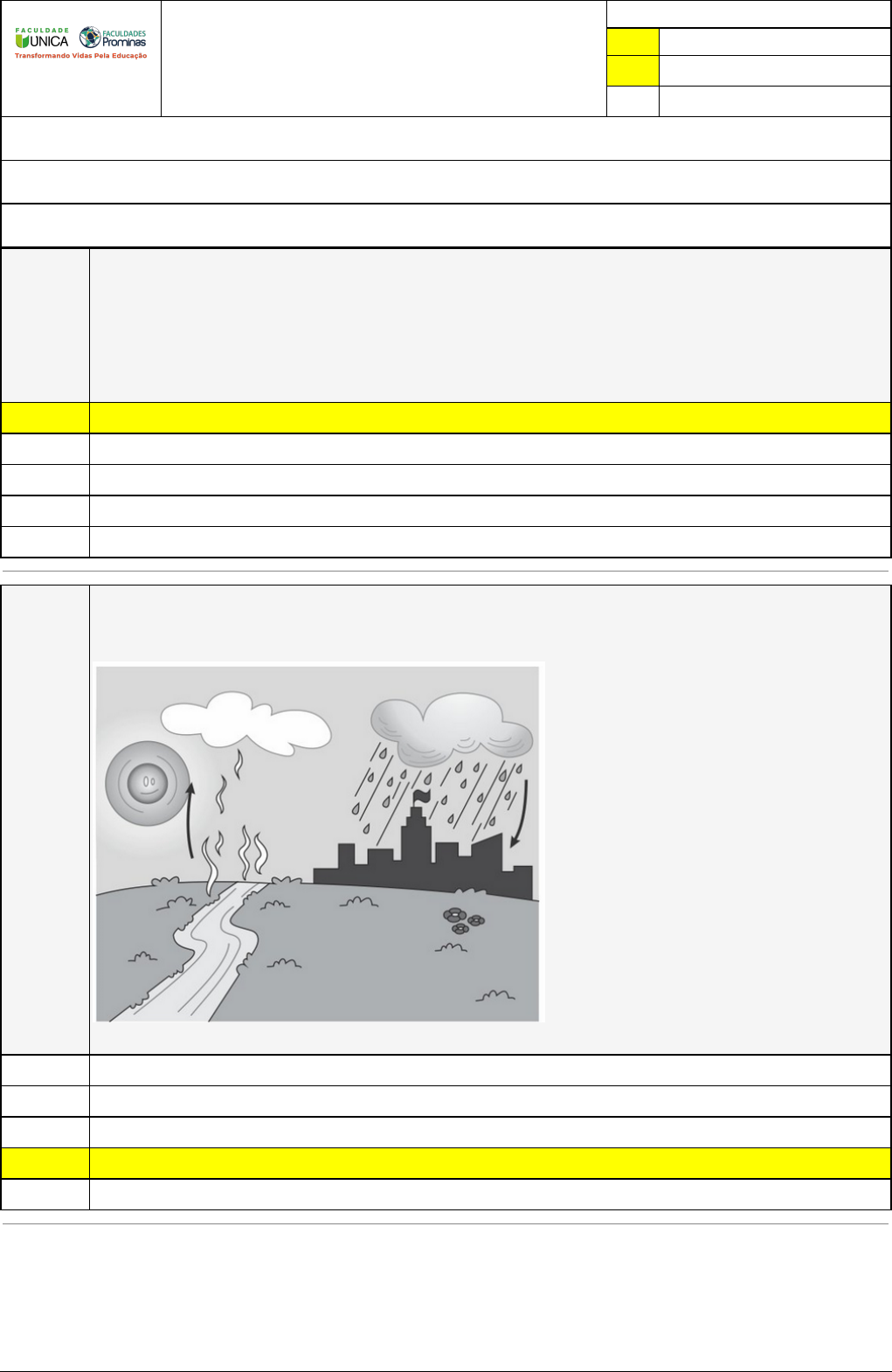 Pincel Atômico - 20/06/2023 15:51:34 1/4 RAPHAEL DE OLIVEIRA ROZARIO Recuperação Online (SALA EAD) Atividade finalizada em 19/06/2023 17:36:53 (994760 / 1) LEGENDA Resposta correta na questão # Resposta correta - Questão Anulada X Resposta selecionada pelo Aluno Disciplina: QUÍMICA GERAL E EXPERIMENTAL [224592] - Avaliação com 10 questões, com o peso total de 50,00 pontos [capítulos - Todos] Turma: Graduação: Engenharia Civil - Grupo: JUNHO/2021 - ENGCIV/JUN21 [22688] Aluno(a): 91367146 - RAPHAEL DE OLIVEIRA ROZARIO - Respondeu 8 questões corretas, obtendo um total de 40,00 pontos como nota [359315_1323 09] Questão 001 Considere amostras de: I. Petróleo. II. água potável. III. III. ar liquefeito. IV. IV. Latão. Destilação fracionada é o processo apropriado para separar os componentes de: X I e III. II e III. III e IV. II e IV. I e II. [359315_1323 01] Questão 002 A água é encontrada na natureza em vários estados físicos e a sequência de transformações sofridas pela mesma é denominada ciclo da água. A figura seguinte representa duas etapas desse ciclo. As etapas do ciclo da água, representadas na figura pelas setas, são chamadas de: ebulição e ressublimação. vaporização e sublimação. calefação e liquefação. X evaporação e condensação. Ressublimação e ebulição. Pincel Atômico - 20/06/2023 15:51:34 2/4 [359315_1584 15] Questão 003 Leia o texto abaixo: É fabricado com uma espessura de vidro maior para ganhar resistência e próximo a sua boca (como no gargalo), possui uma evaginação com um tubo de saída lateral, nesse tubo possui umas deformidades como travas de vidro com o objetivo de segurar melhor mangueiras de silicone ou rolha em montagens de sistema. O texto se refere à vidraria Vidro de relógio. Tubo de ensaio. Funil de buchner. Picnômetro. X Kitassato. [359315_1323 51] Questão 004 A sacarose (açúcar comum), cuja estrutura é mostrada na figura, é um dissacarídeo constituído por uma unidade de glicose ligada à frutose. A solubilidade da sacarose em água deve-se: às forças de van der Waals, resultantes da interação da água com a unidade de glicose desmembrada. ao rompimento da ligação entre as unidades de glicose e frutose. às forças de natureza íon-dipolo, resultantes da interação do dipolo da água com a sacarose. às forças de dipolo-dipolo, resultantes da interação da água com a unidade de frutose desmembrada. X às ligações de hidrogênio resultantes da interação da água com a sacarose. [359315_1323 22] Questão 005 Apesar da posição contrária de alguns ortodontistas, está sendo lançada no mercado internacional a "chupeta anticárie". Ela contém flúor, um já consagrado agente anticárie, e xylitol, um açúcar que não provoca cárie e estimula a sucção pelo bebê. Considerando que o flúor utilizado para esse fim aparece na forma de fluoreto de sódio, a ligação química existente entre o sódio e o flúor é denominada: dipolo-dipolo. Covalente polar. covalente apolar. metálica. X iônica. [359316_1323 23] Questão 006 Um material sólido tem as seguintes características: - não apresenta brilho metálico; - é solúvel em água; - não se funde quando aquecido a 500 ºC; - não conduz corrente elétrica no estado sólido; - conduz corrente elétrica em solução aquosa. Com base nos modelos de ligação química, pode-se concluir que, provavelmente, trata-se de um sólido Pincel Atômico - 20/06/2023 15:51:34 3/4 metálico. Miscelar molecular. covalente. X iônico. [359316_1323 55] Questão 007 Considere as substâncias: benzeno (C6H6), NH3, I2, CCl4 e H2O, levando em conta suas ligações químicas, polaridade de suas moléculas e os tipos de forças intermoleculares envolvidas. Dentre essas substâncias, é correto afirmar que o solvente mais apropriado para dissolver a amônia, o solvente mais apropriado para dissolver o iodo e uma substância cujas moléculas não formam ligações de hidrogênio são, respectivamente: CCl4, H2O e C6H6. X H2O, CCl4 e C6H6. H2O, CCl4 e NH3 CCl4, C6H6 e NH3. C6H6, CCl4 e I2. [359316_1584 41] Questão 008 Uma moda atual entre as crianças é colecionar figurinhas que brilham no escuro. Essas figuras apresentam em sua constituição a substância sulfeto de zinco. O fenômeno ocorre porque alguns elétrons que compõem os átomos dessa substância absorvem energia luminosa e saltam para níveis de energia mais externos. No escuro, esses elétrons retornam aos seus níveis de origem, liberando energia luminosa e fazendo a figurinha brilhar. Essa característica pode ser explicada considerando atômico proposto por: Dalton. X Thomson. Bohr. Rutherford. Lavoisier. [359317_1323 69] Questão 009 É comum observar pessoas com azia, dissolvendo o bicarbonato de sódio em água e bebendo a solução como forma de diminuição da queimação estomacal. A equação BALANCEADA que demonstra a ação do bicarbonato de sódio e os produtos formados é NaHCO3 + HCl → NaCO2 + H2O + ½ NaCl2 NaHCO3 + HCl → Na2CO2 + HClO X Na2CO3 + 2 HCl → NaCO2 + H2O + NaClO NaHCO3 + HCl → H2O + CO2 + NaC NaHCO3 + HCl → NaCO2 + HClO [359317_1323 47] Questão 010 Quando íons de cargas opostas, formados por elementos do grupo 1 (IA) e do grupo 17 (VII A) são aproximados, ocorre uma forte atração entre eles, e grande quantidade de energia é liberada. Essa força de atração é chamada: ligação hidrogênio. ligação dativa. ligação covalente. Pincel Atômico - 20/06/2023 15:51:34 4/4 X ligação iônica. forças de Van der Waals.