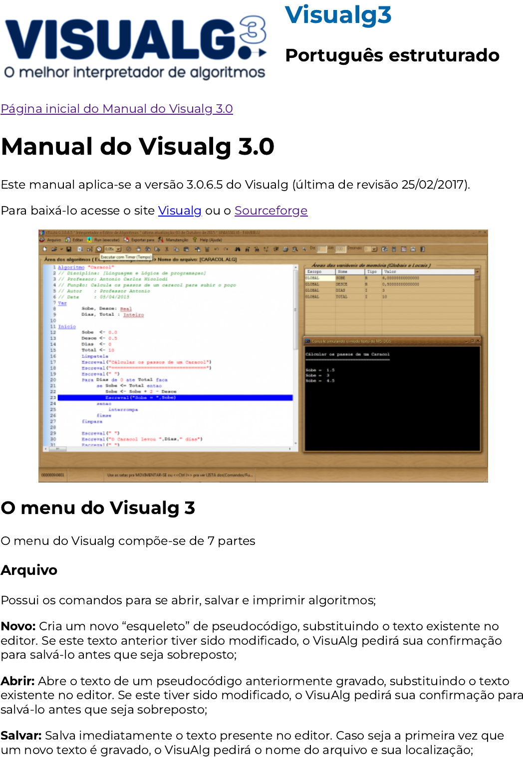 Este manual aplica-se a versão 3.0.6.5 do Visualg (última de revisão 25/02/2017).