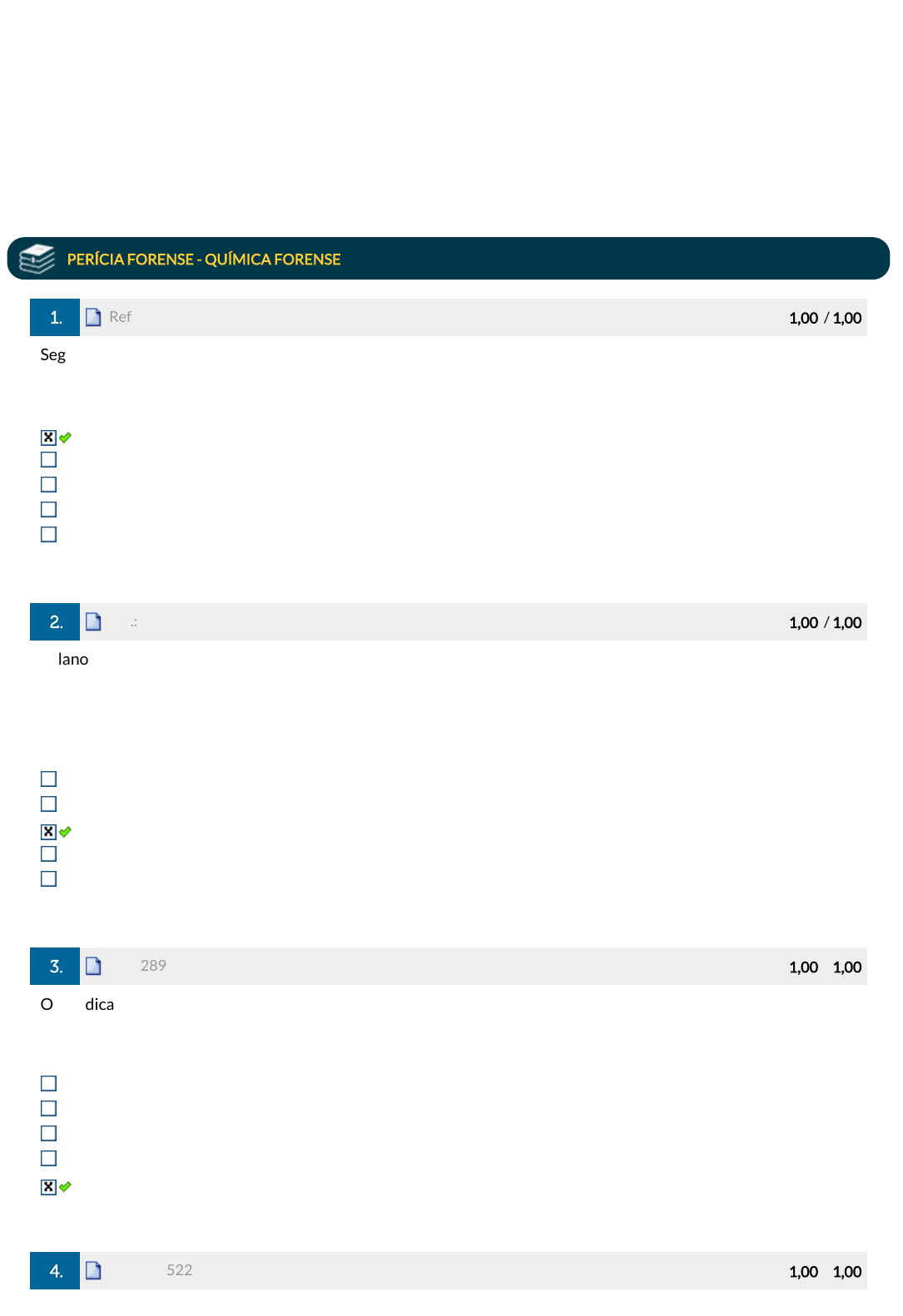 Disciplina: PERÍCIA FORENSE - QUÍMICA FORENSE AV