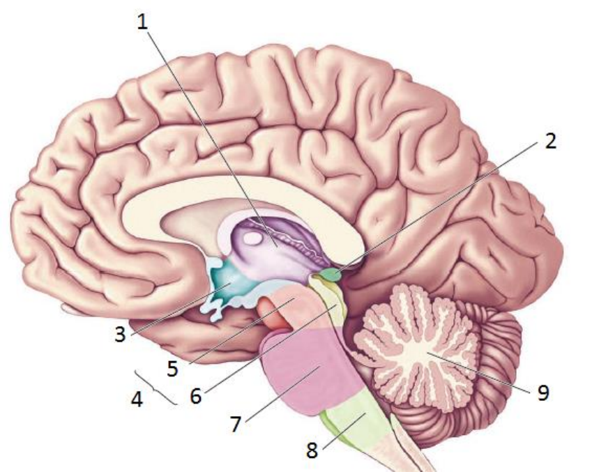 Estudo Dirigido Laboratório de Anatomia Sistema Nervoso Prof. Flávio Theodoro 1- Identifique as seguintes estruturas do cérebro enumeradas nas figuras abaixo: a) 1-____________________________; 2- ___________________________; 3-____________________________; 4- ___________________________; 5-____________________________; 6- ___________________________; 7-____________________________; 8- ___________________________; 9-____________________________; Tálamo Hipotálamo Pineal Cerebelo Mesencéfaki Medula Oblonga Ponte Mesencéfalo Tecno b) 1 - ________________; 2 - ________________; 3 - _______________; 4 - _____________ Vermis H.C. Esquerdo H.C. Direito Medula Espinal H.C.=hemisfério cerebral