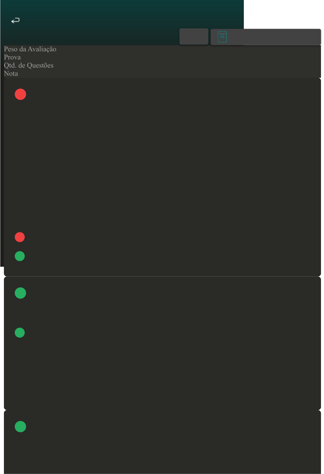 Prova Impressa GABARITO | Avaliação da Disciplina (Cod.:645389) Peso da Avaliação 10,00 Prova 67348204 Qtd. de Questões 20 Nota 9,50 Quando a família resolve viajar é necessário criar um roteiro para saber por onde começar, pois será muito mais fácil encontrar os locais turísticos na viagem. Em uma negociação também deverá ser criado um roteiro para que o negociador não se perca na condução do negócio e isso deixa o outro lado mais confiante em relação à empresa. Em relação ao roteiro de uma negociação, assinale V para sentenças verdadeiras e F para sentenças falsas: ( ) Persuadir com entusiasmo no objetivo.( ) Identificar quem serão os negociadores. ( ) Ter conhecimento do que será negociado. ( ) Estar ciente e preparado para encontrar o ponto de equilíbrio na negociação. Assinale a alternativa que apresenta a sequência correta de respostas: A V – V – F – V. B V – V – F – F. C V – F – V – V. D F – V – V – V. Balanced Scorecard (do inglês, Quadro de Pontos) é uma metodologia utilizada para avaliação do desempenho de empresas com base em quatro aspectos. Assinale a alternativa que apresenta tais aspectos: A Cliente, processos internos, financeiro e aprendizado. B Compra, venda, lucro e prejuízo. C Funcionário, cliente, gerente e proprietário. D Sustentabilidade, legislação, operação e processos. Um dos maiores problemas para interpretação do hand-off, e o correto funcionamento dos processos de levantamento de Indicadores de desempenho, reside no setor humano. O colaborador tem a capacidade de influenciar de diversas formas o sucesso do empreendimento e comprometer a qualidade do produto em todas as etapas de processos. Assim, quando ocorrem processos de resistência à etapas de levantamentos sugere-se... VOLTAR A+ Alterar modo de visualização 1 2 3 Assinale a alternativa que completa corretamente a frase: A Demissão do colaborador, visto que não se deve admitir qualquer conduta de resistência no empreendimento. B Medidas jurídicas, deixando claro a relevância do comprometimento do colaborador com o serviço. C Promoção do sucesso de cada indicador medido e reforço da importância da correta medição e colaboração de todos. D Rebaixamento de cargo, como forma de conscientizar o indivíduo e o grupo da importância do levantamento. Com o passar dos tempos, as organizações passaram a verificar qual o verdadeiro papel do setor de recursos humanos para alavancar o crescimento, sempre buscando a eficácia e o desenvolvimento humano dentro da organização. Dessa forma a alta gerência está dando um apoio maior para a área de recursos humanos. Dito isso, analise a seguinte asserção-razão: Além de alcançar os objetivos estratégicos da organização, o setor de recursos humanos deverá atingir seus próprios objetivos. Porque A necessidade de novas políticas, promoções e avaliação deverão estar ajustadas a estratégia da organização. Agora, assinale a alternativa correta: A A primeira afirmação é verdadeira, e a segunda afirmação é falsa. B As duas afirmações são verdadeiras e estabelecem relação entre si. C As duas afirmações são verdadeiras, porém não estabelecem relação entre si. D A primeira afirmação é falsa, e a segunda afirmação é verdadeira. Durante os preparativos para uma viagem, Marcelo organiza uma lista com itens que serão necessários em todas as etapas planejadas de sua viagem. Entre os itens temos: remédios, óculos, casacos, sapatos, etc. este tipo de Levantamento é conhecido como: Assinale a alternativa correta: A Questionário fechado. B Questionário aberto. C Just in time. D Check-list. 4 5 É importante que o gestor de recursos humanos busque garantir a competitividade e a sobrevivência através do capital humano, que pode fazer a diferença na organização. Dito isso, analise a seguinte asserção-razão. O capital humano é composto pelos indivíduos que possuem uma qualidade muito grande, como o conhecimento, habilidades e competência denominados talentos. Porque Através das condições ambientais da organização, o capital humano poderá identificar e florescer funcionários talentosos. Assinale a alternativa que apresenta a resposta correta: A A primeira afirmação é verdadeira, e a segunda afirmação é falsa. B A primeira afirmação é falsa, e a segunda afirmação é verdadeira. C As duas afirmações são verdadeiras, porém não estabelecem relação entre si. D As duas afirmações são verdadeiras e estabelecem relação entre si. Na nova nomenclatura dos recursos humanos, apenas o salário não é suficiente para que os talentos permaneçam na organização. Em alguns casos, é muito mais caro perder um funcionário do que mantê-lo através de condições que o motivam a estarem na organização. Baseado nesse momento da necessidade de transformação nas funções dos recursos humanos, podemos afirmar que: I – Manter e buscar novos talentos dentro ou fora da organização. II – Promover melhorias para que o indivíduo possa crescer profissionalmente, mantendo um ambiente saudável, higiênico, segurança e uma remuneração adequada. III – Desenvolver os indivíduos através de treinamentos para os que possuem potencial para a organização. IV – A relação intrapessoal deverá ser desenvolvida com a maior hierarquia da organização. Assinale a alternativa correta: A Apenas as sentenças I, II e III estão corretas. B Apenas as sentenças I, II e IV estão corretas. C Apenas as sentenças I, III e IV estão corretas. D Apenas as sentenças II, III e IV estão corretas. Durante etapa de admissão hospitalar somos usualmente orientados a preencher um questionário clínico fechado, que abrange nossos dados pessoais e alguns dos sintomas e enfermidades mais comumente vistas. Este procedimento busca reduzir o tempo do processo de admissão permitindo agilizar o atendimento. Sobre os questionários, assinale a alterna
